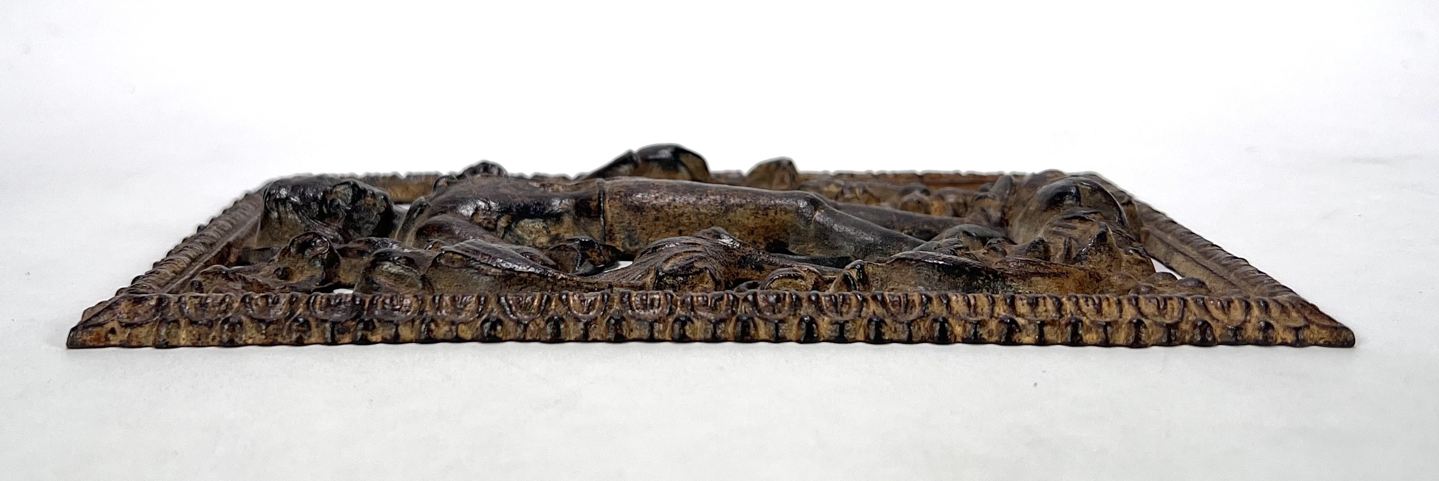 Lot curiosa, vervaardigd uit messing en brons met giettechniek; een rijk gedecoreerde bel zonder klepel met figuratieve reliëfscènes, een messing kandelaar met geprofileerde stam en een opengewerkt rechthoekig ornament. De voorwerpen tonen gedetailleerde ornamentiek. Datering eerste helft van de 20e eeuw en een Europese herkomst. Deze curiosa zelf beoordelen? Je bent welkom op onze kijkdagen op 10, 11 en 12 april! |
