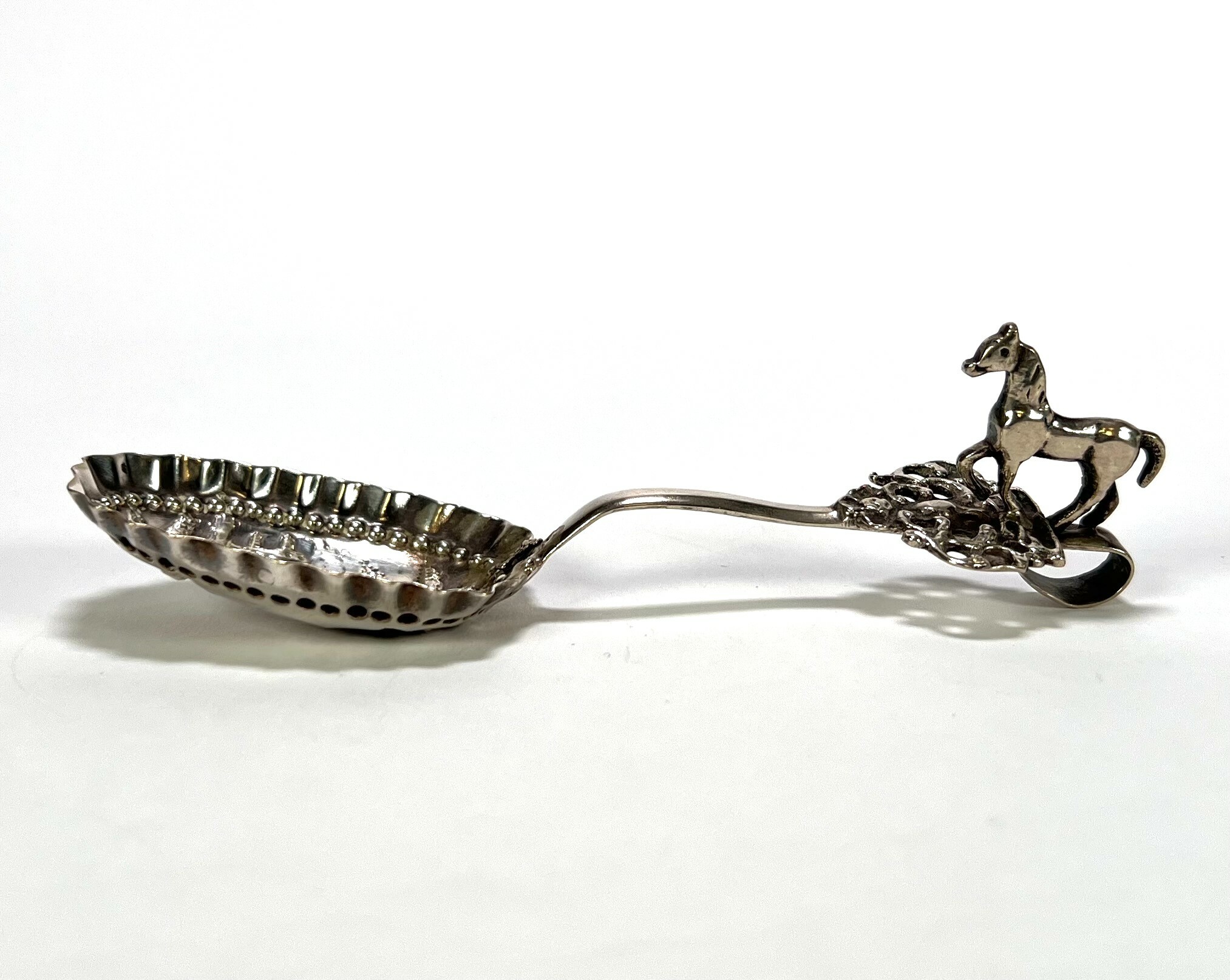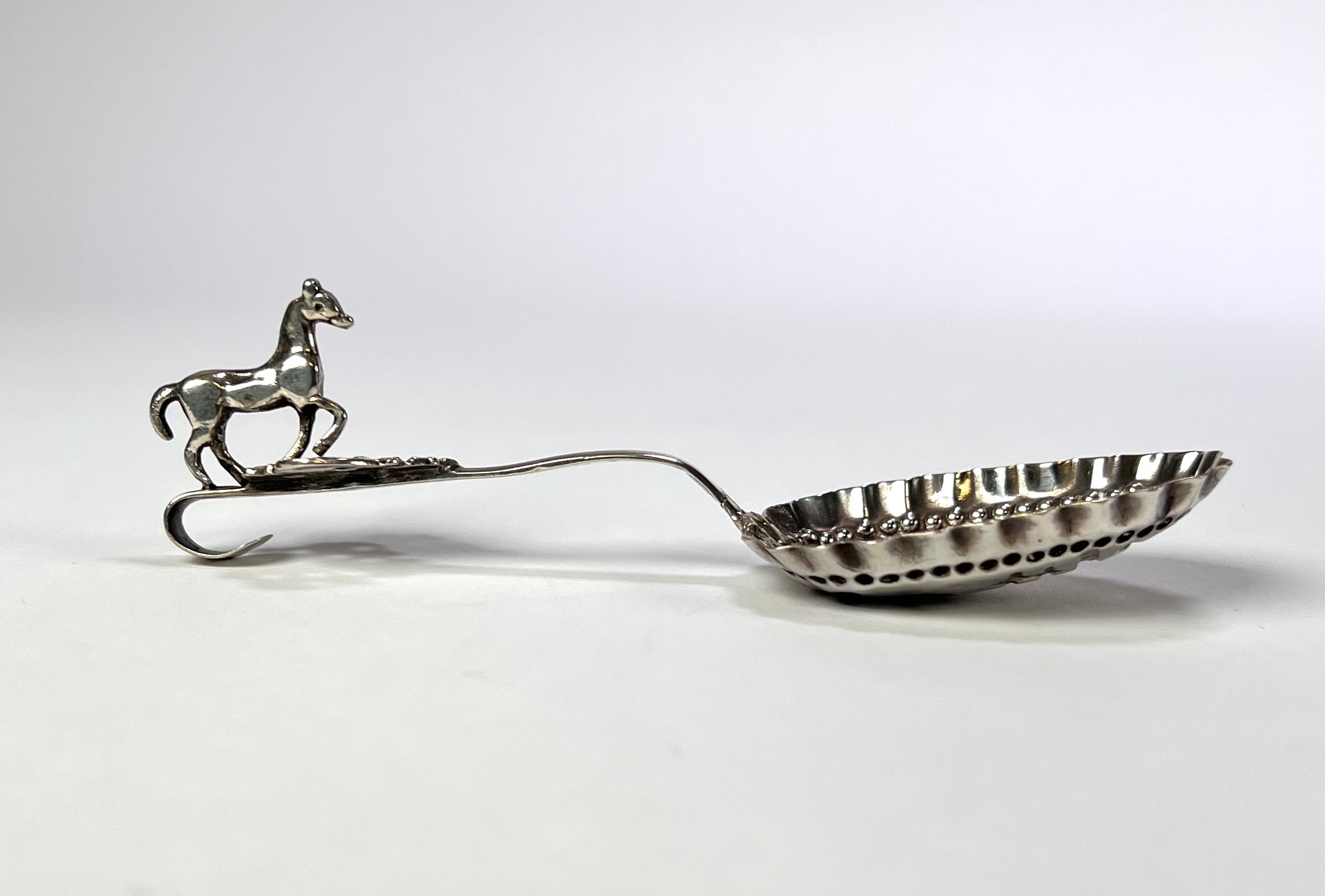 Zilveren Biedermeier roomlepel – paard bekroning, 19e eeuw