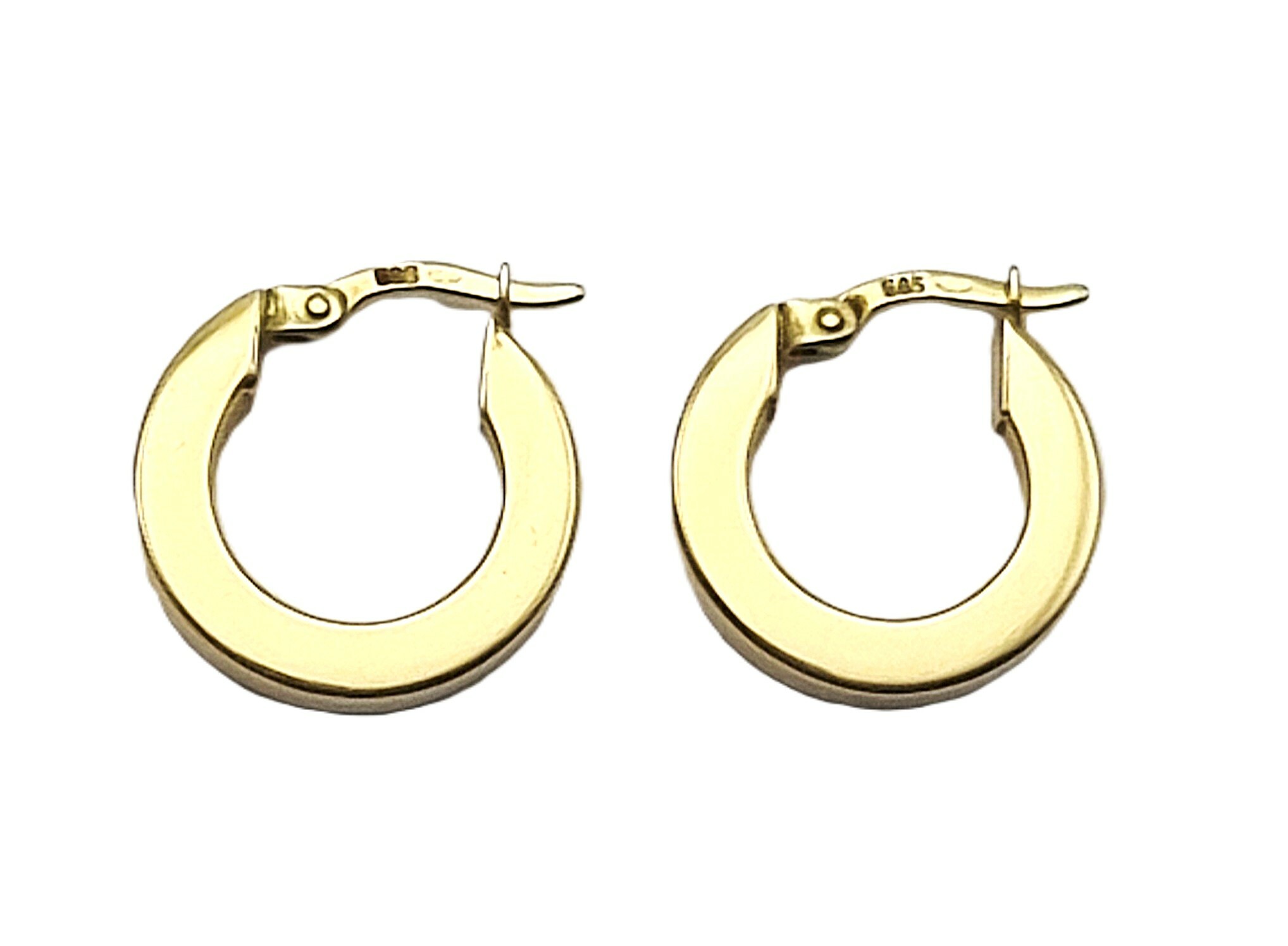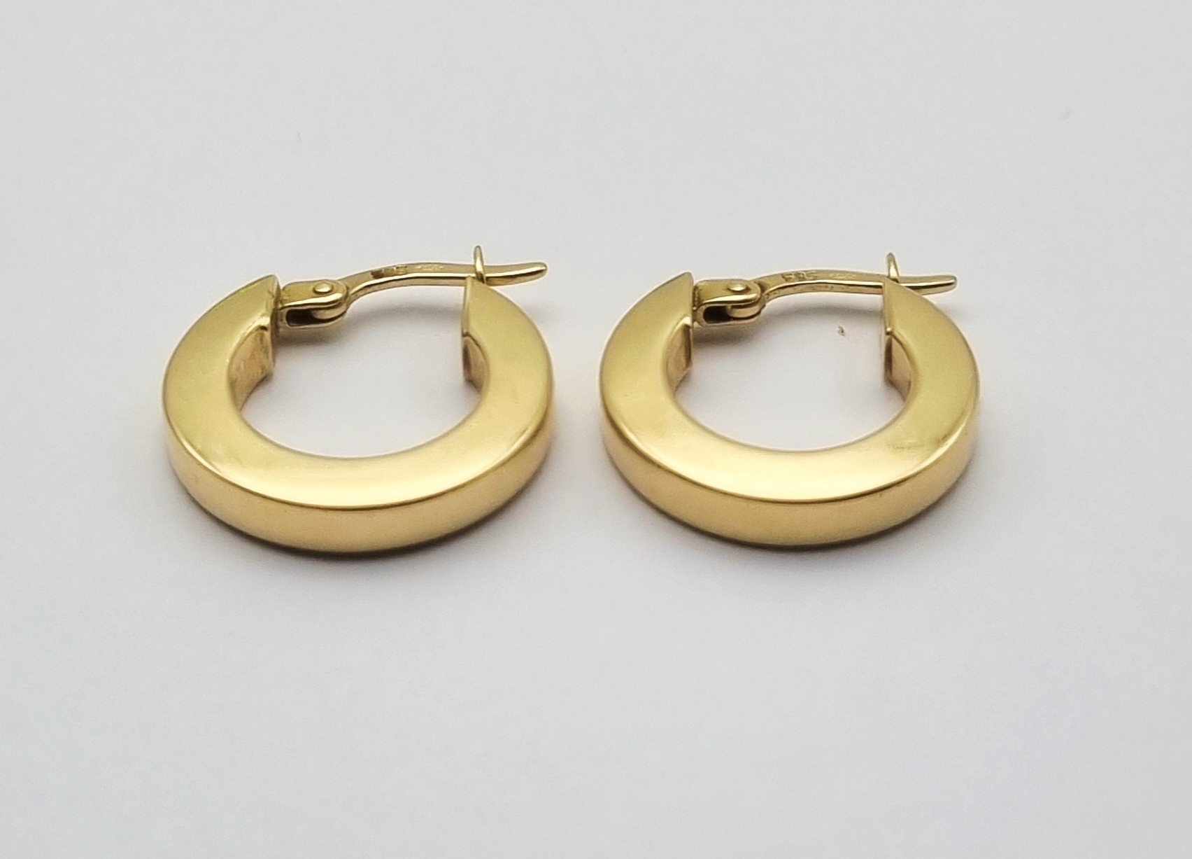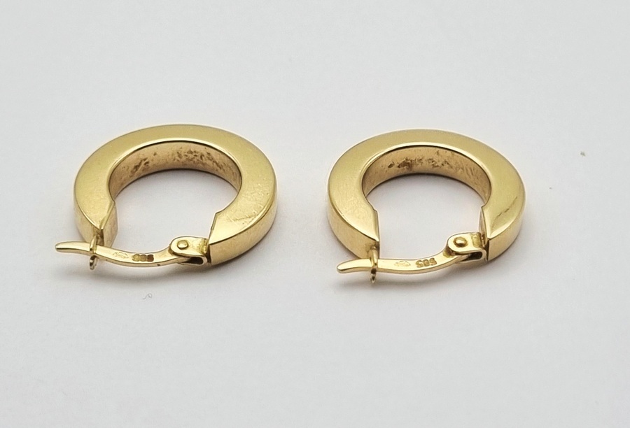 Gouden 14-karaats oorbellen in creoolmodel met gladde, afgeronde buisvorm en scharniersluiting, gemerkt 585. Datering eind 20e eeuw. Klaar om te bieden? Registreer je nu en doe mee aan de veiling! |