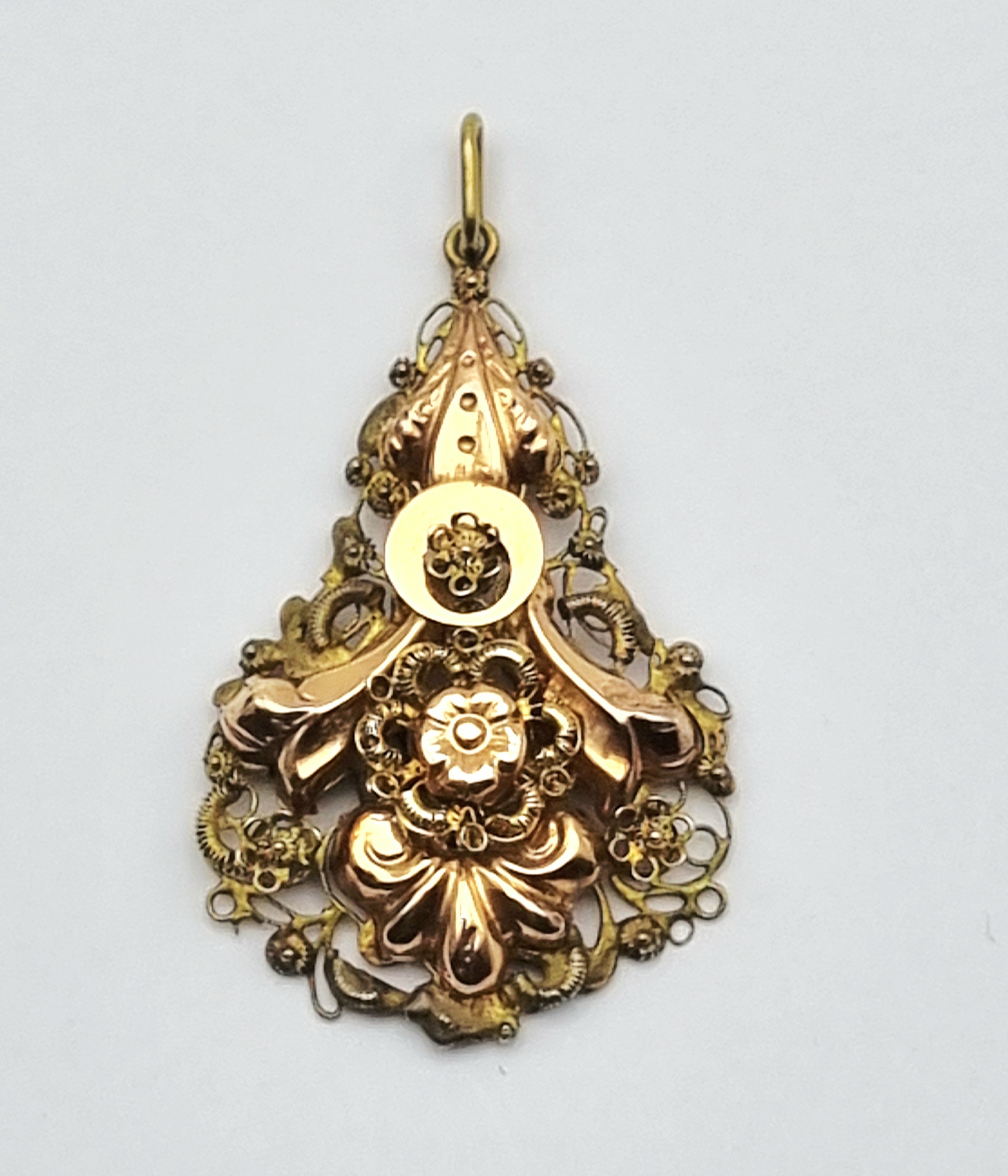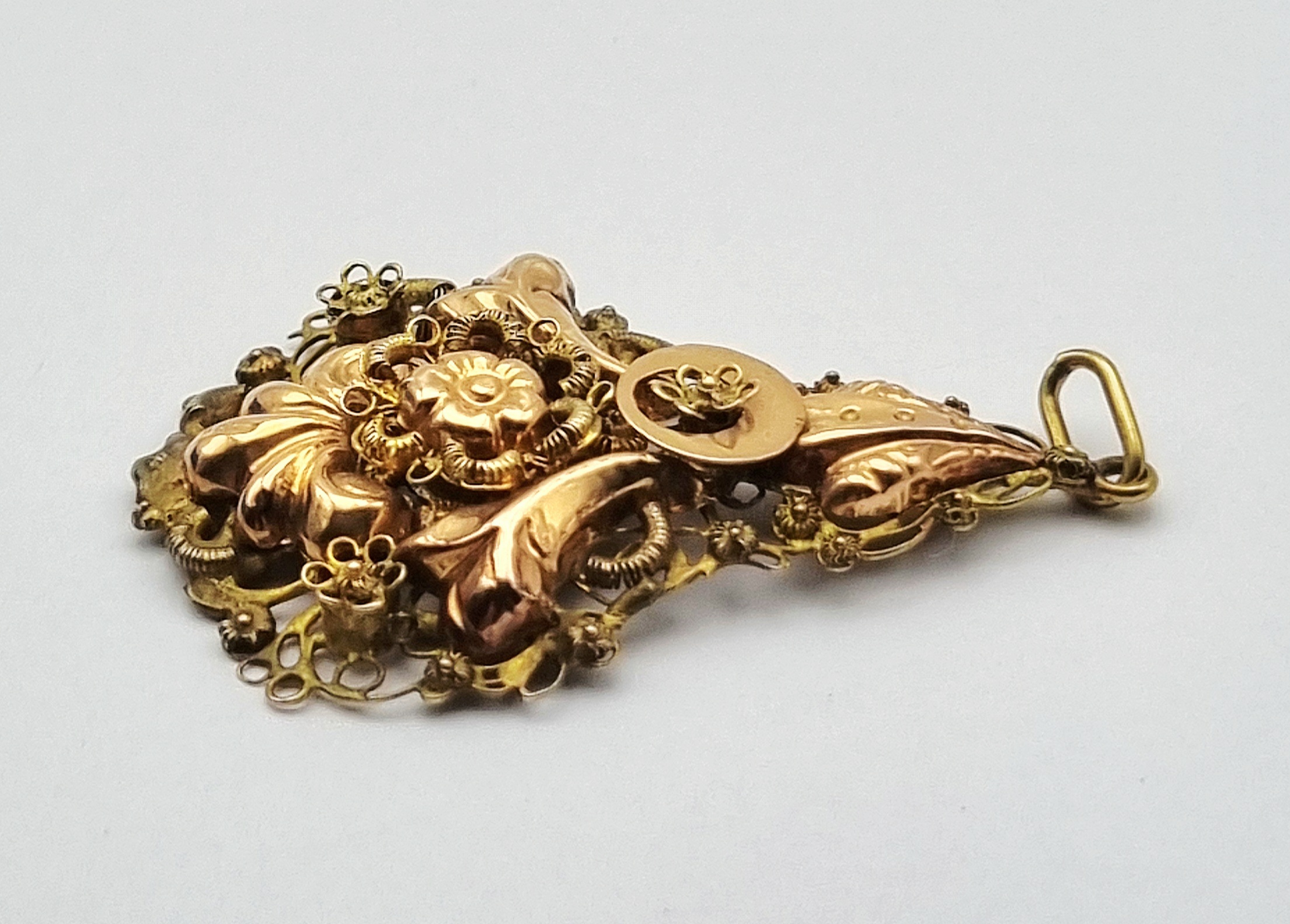 Gouden hanger met bloemreliëf, midden 20e eeuw
