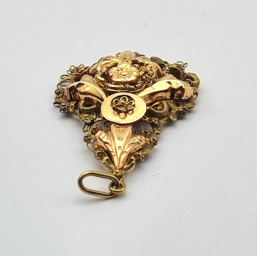 | Kavelnummer en naam | 534. Gouden hanger met bloemreliëf, midden 20e eeuw | |