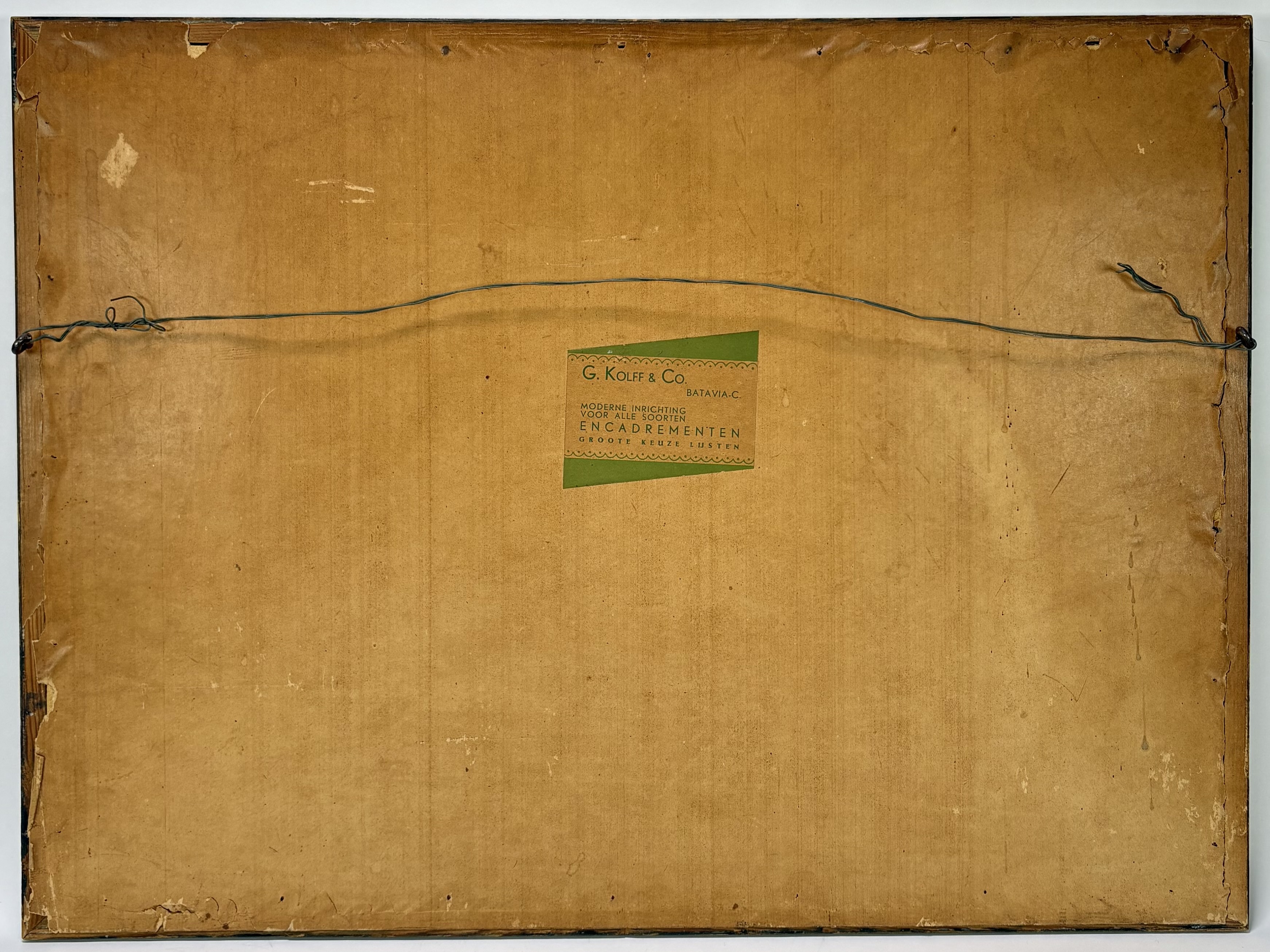 Ets door Dirk Homberg (1885–1952) op papier toont een gezicht op Oud-Batavia met vlotten op de Kali Besar. De ets dateert van omstreeks 1925 en weerspiegelt de karakteristieke koloniale architectuur. De gedetailleerde lijnvoering en lichtval op de gevels zijn kenmerkend. Hand gesigneerd met potlood en voorzien van topografische annotatie en aangeduid als “druk van de etser”. In een houten lijst met passe-partout. Wil je deze ets in het echt bekijken? Kom naar de kijkdagen! |