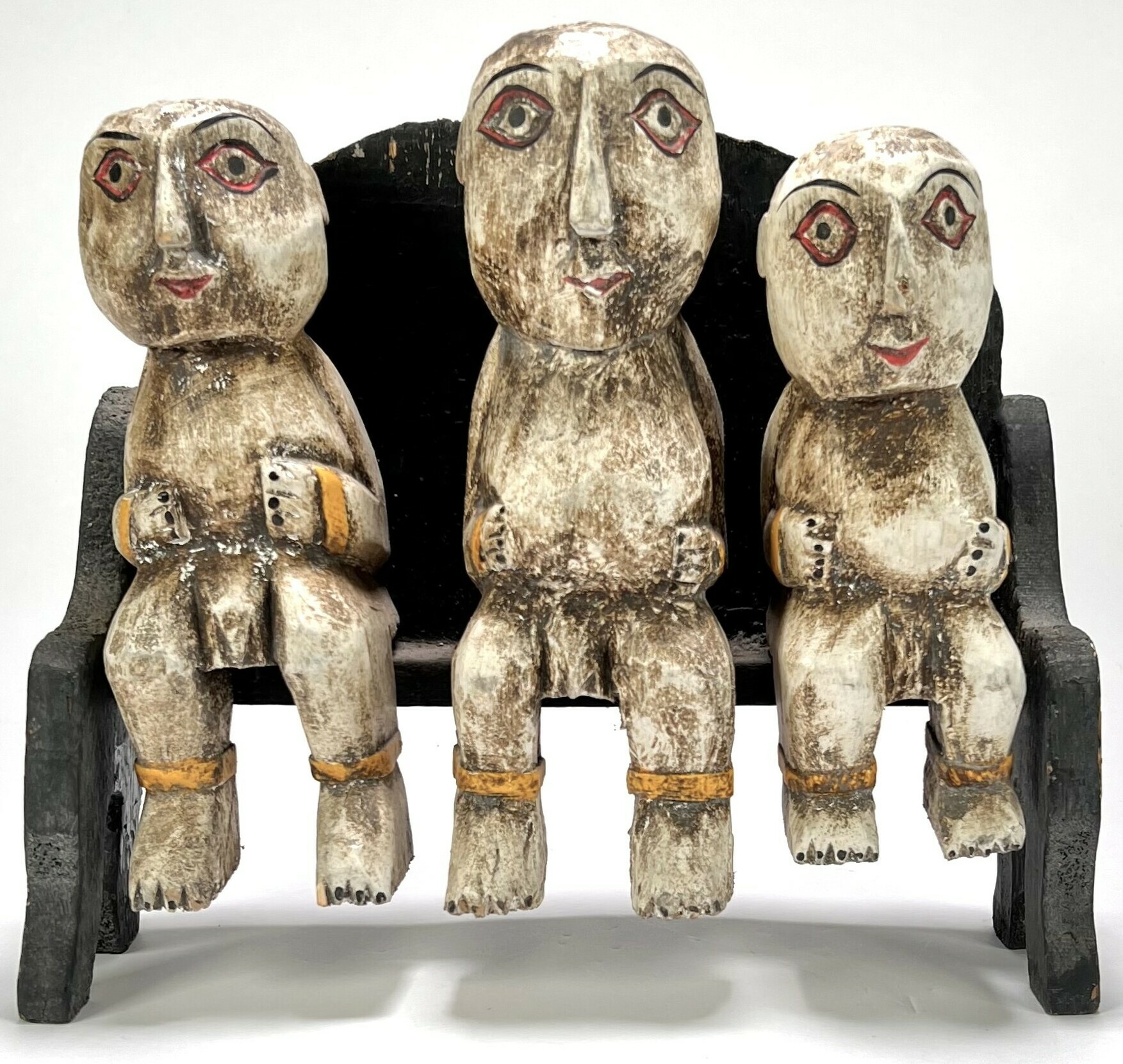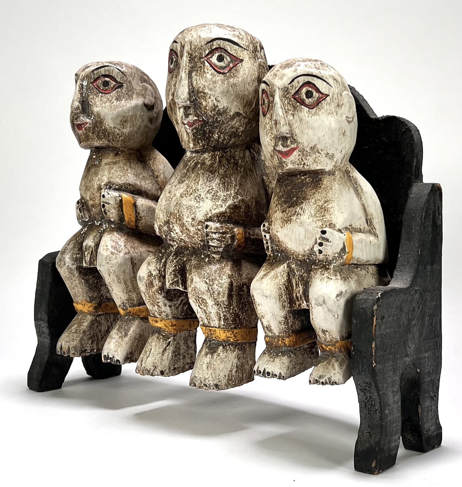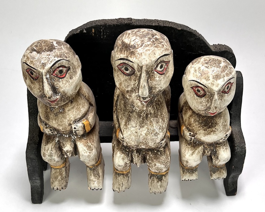 Houten beeld, figuren op bank - West-Afrika, tweede helft 20e eeuw