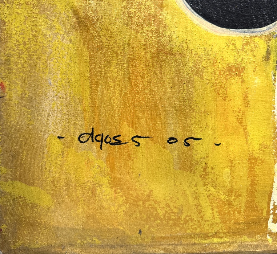 Schilderij toont een modernistische compositie met maskers en symbolische elementen, uitgevoerd in gemengde techniek op doek. De gelaagde textuur in oker, rood en wit benadrukt de figuratieve vormen tegenover een grafisch zwart-wit blokpatroon. Linksonder onduidelijk gesigneerd en gedateerd '05. Klaar om te bieden? Registreer je nu en doe mee aan de veiling! |