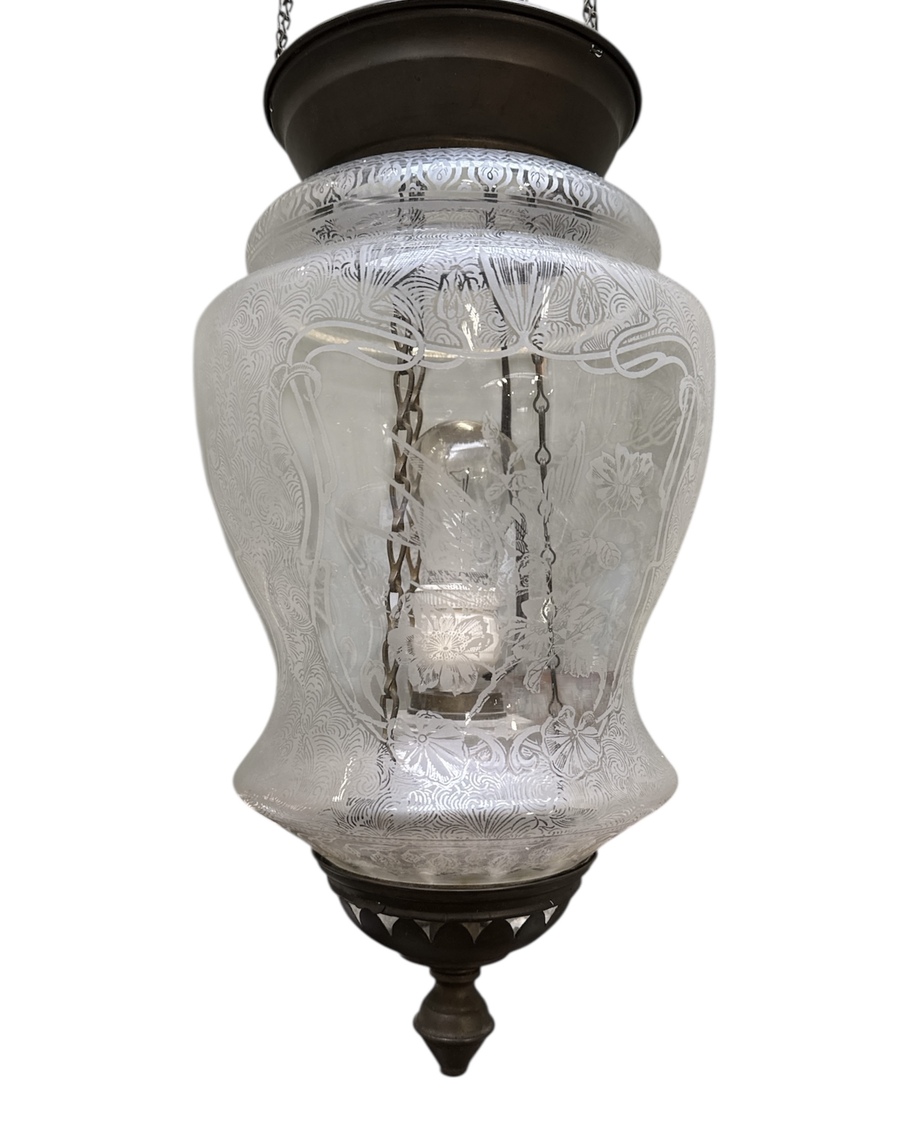 Art Nouveau hanglamp met mousselineglas, begin 20e eeuw