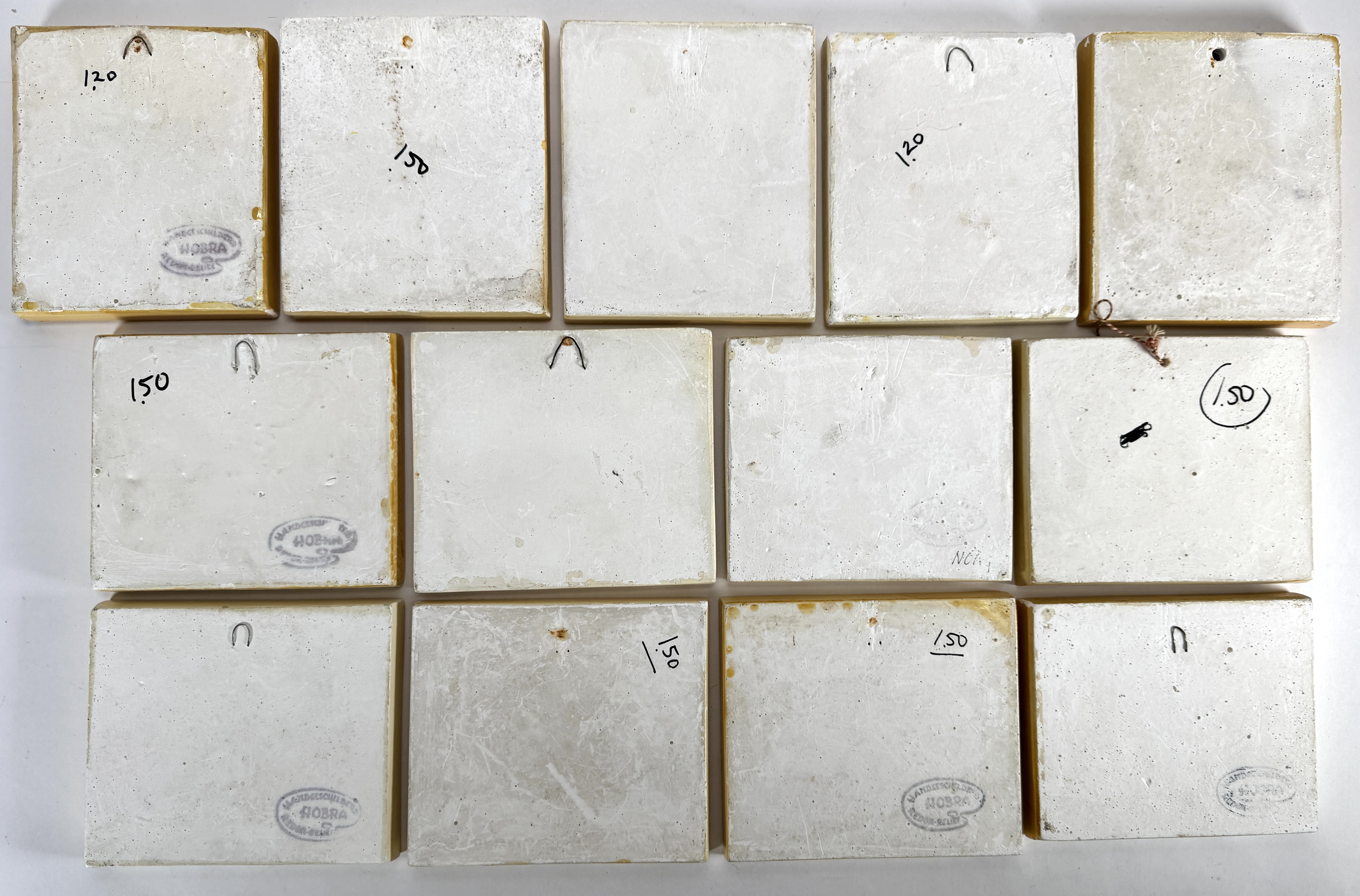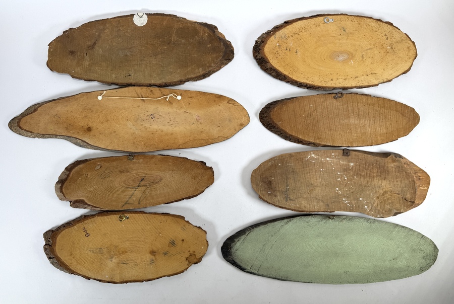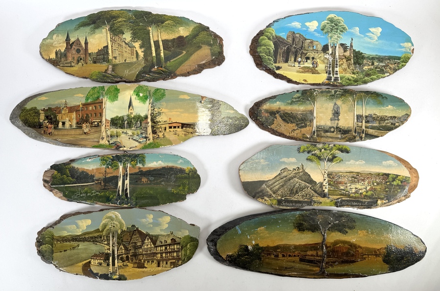 Stel houtschijven en tegels van Hobra in traditionele stijl, vervaardigd uit hout en gips met handbeschilderde decors. De kavel omvat topografische aanzichten op boomschijven en dertien reliëf wandtegels met typisch Nederlandse taferelen zoals klederdracht, molens en dorpsgezichten. Enkele objecten zijn aan de achterzijde voorzien van fabrieksstempels. De verzameling dateert uit de tweede helft van de 20e eeuw en heeft een Noord-Europese herkomst. Kom langs tijdens de kijkdagen (10 t/m 12 april) en ontdek dit object zelf! |