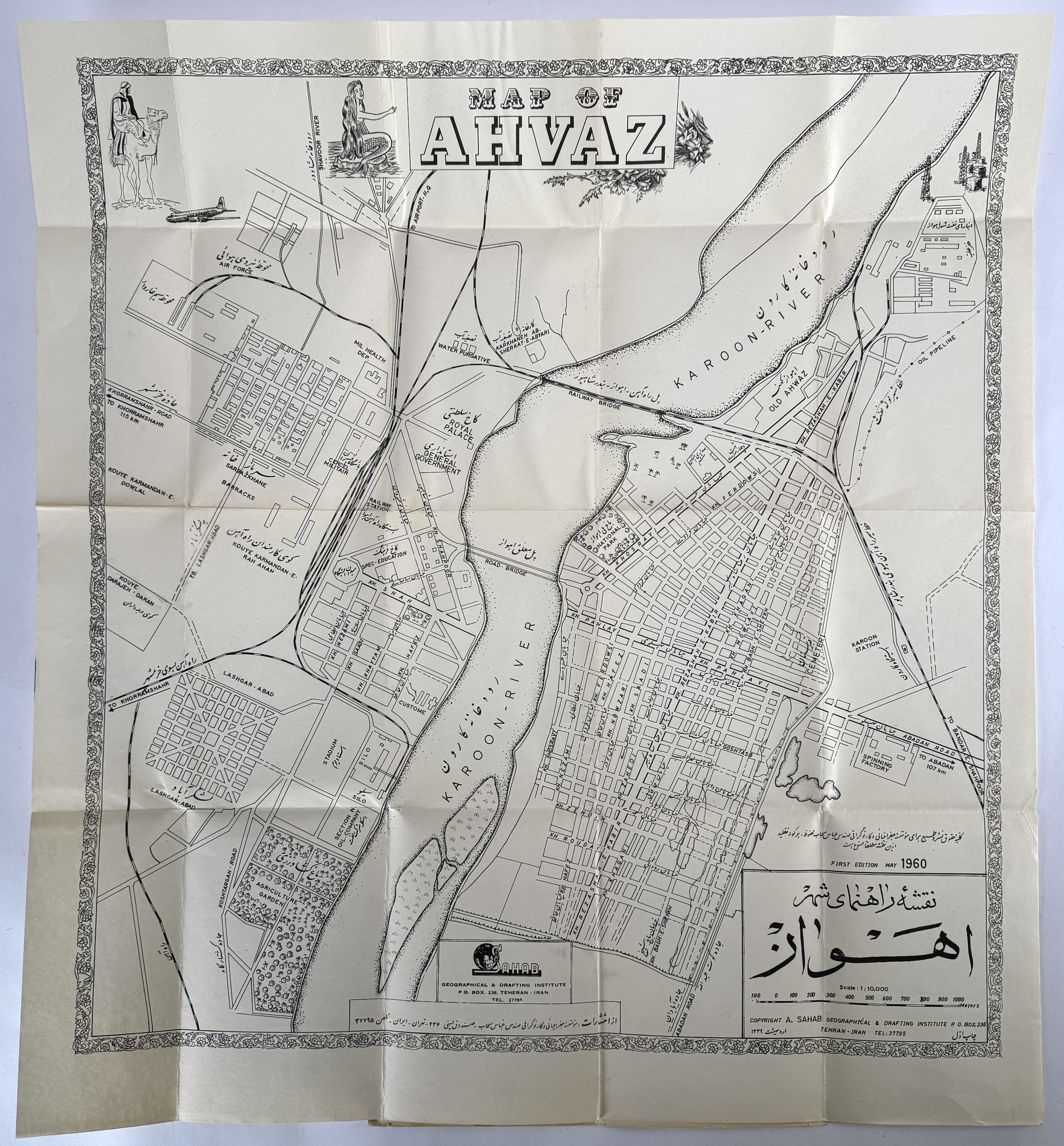 Stadskaart, Ahvaz - Sahab Geographical & Drafting Institute, Iran, 1960