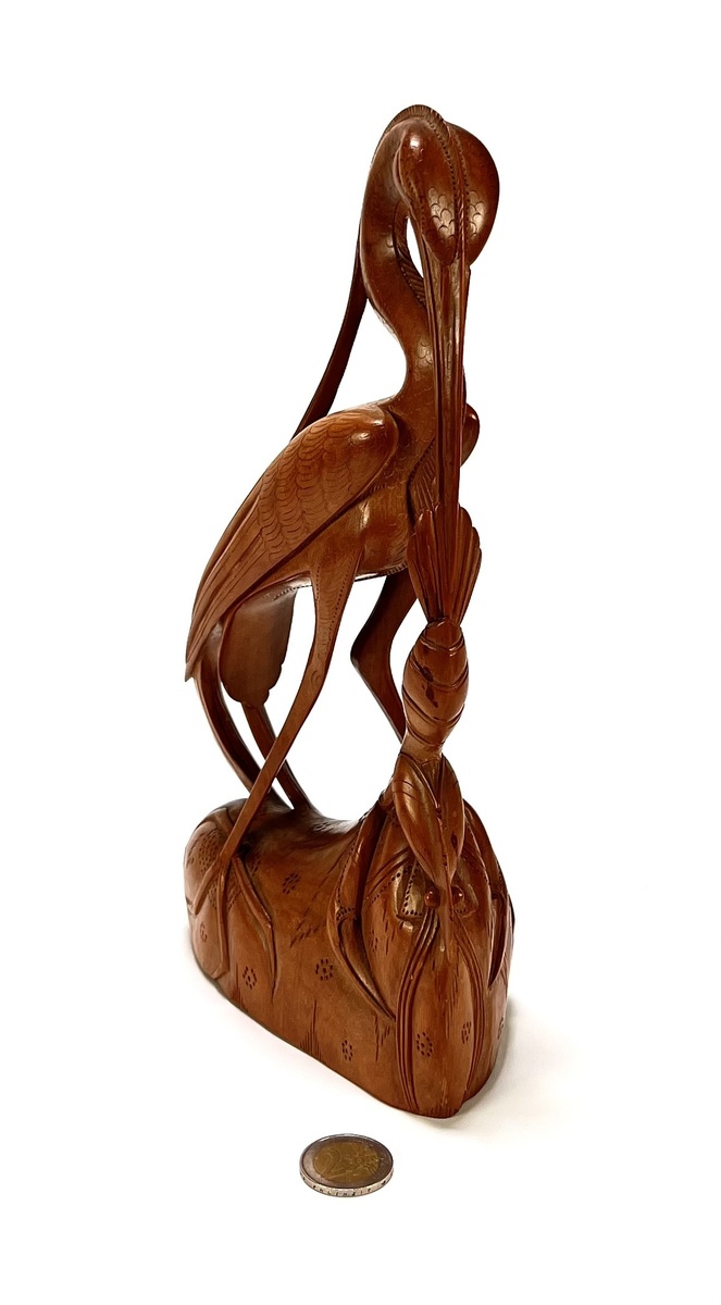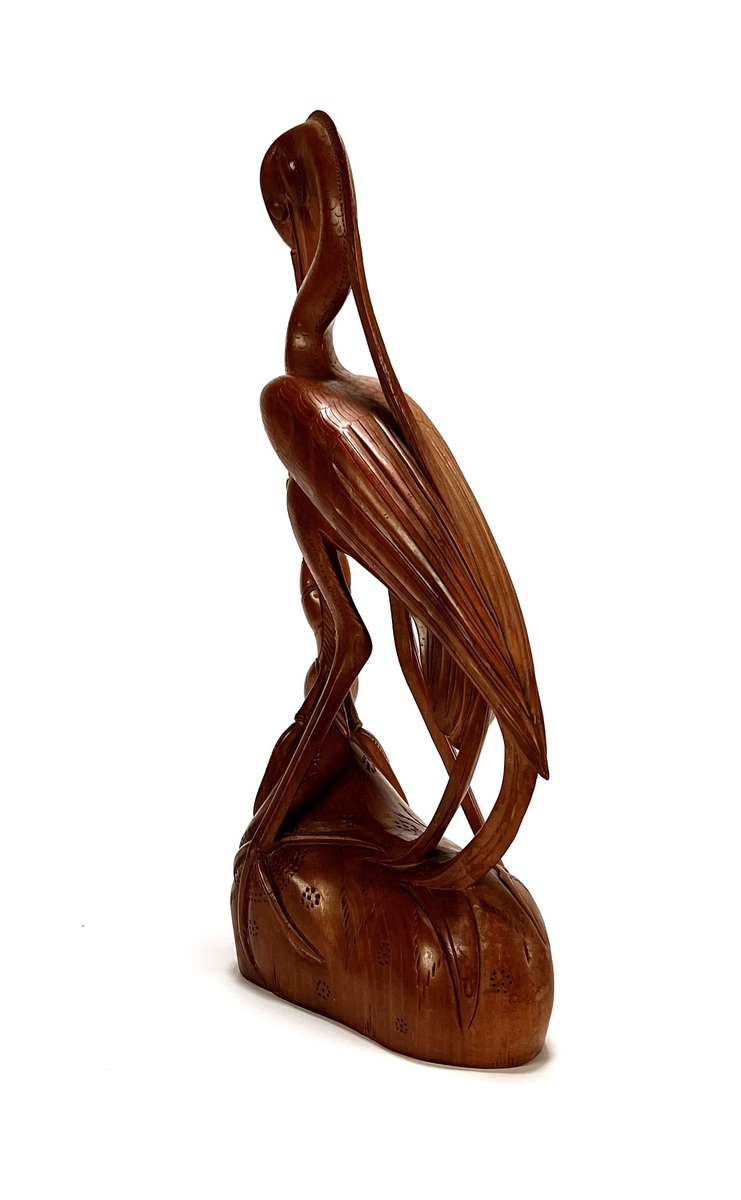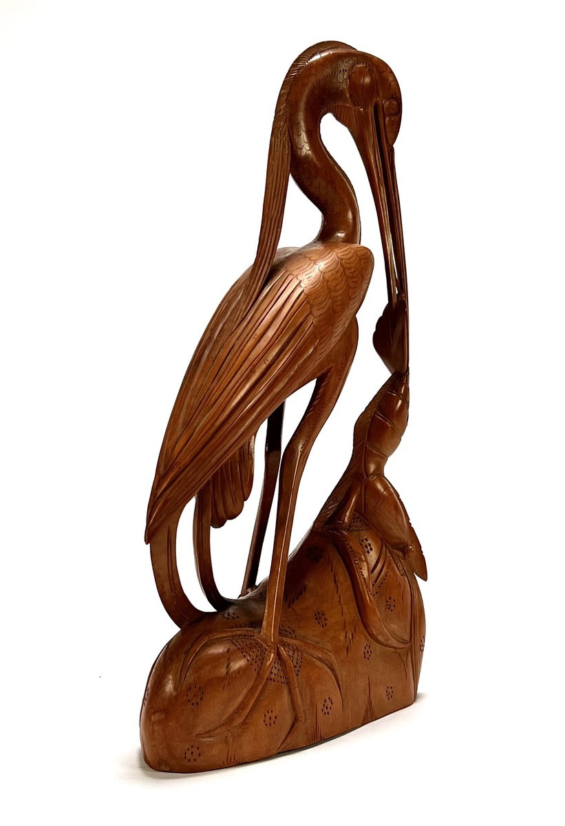 Houten beeld - reiger met vis, Indonesië, ca. 1950