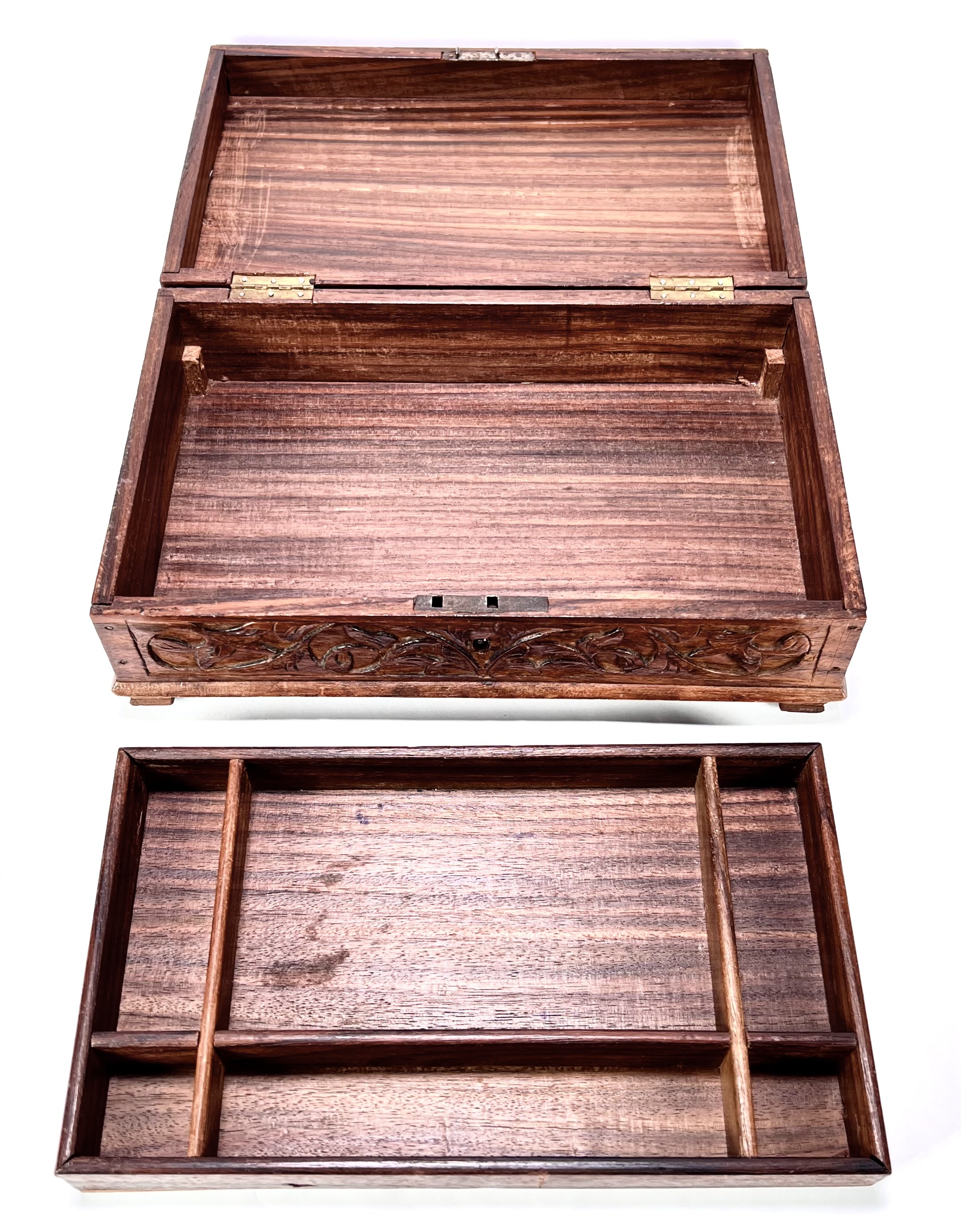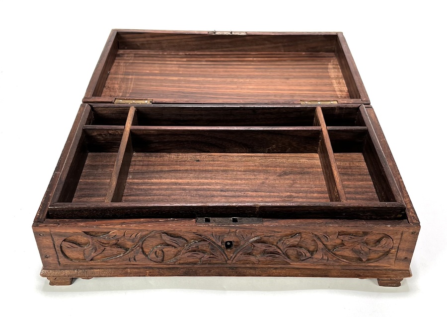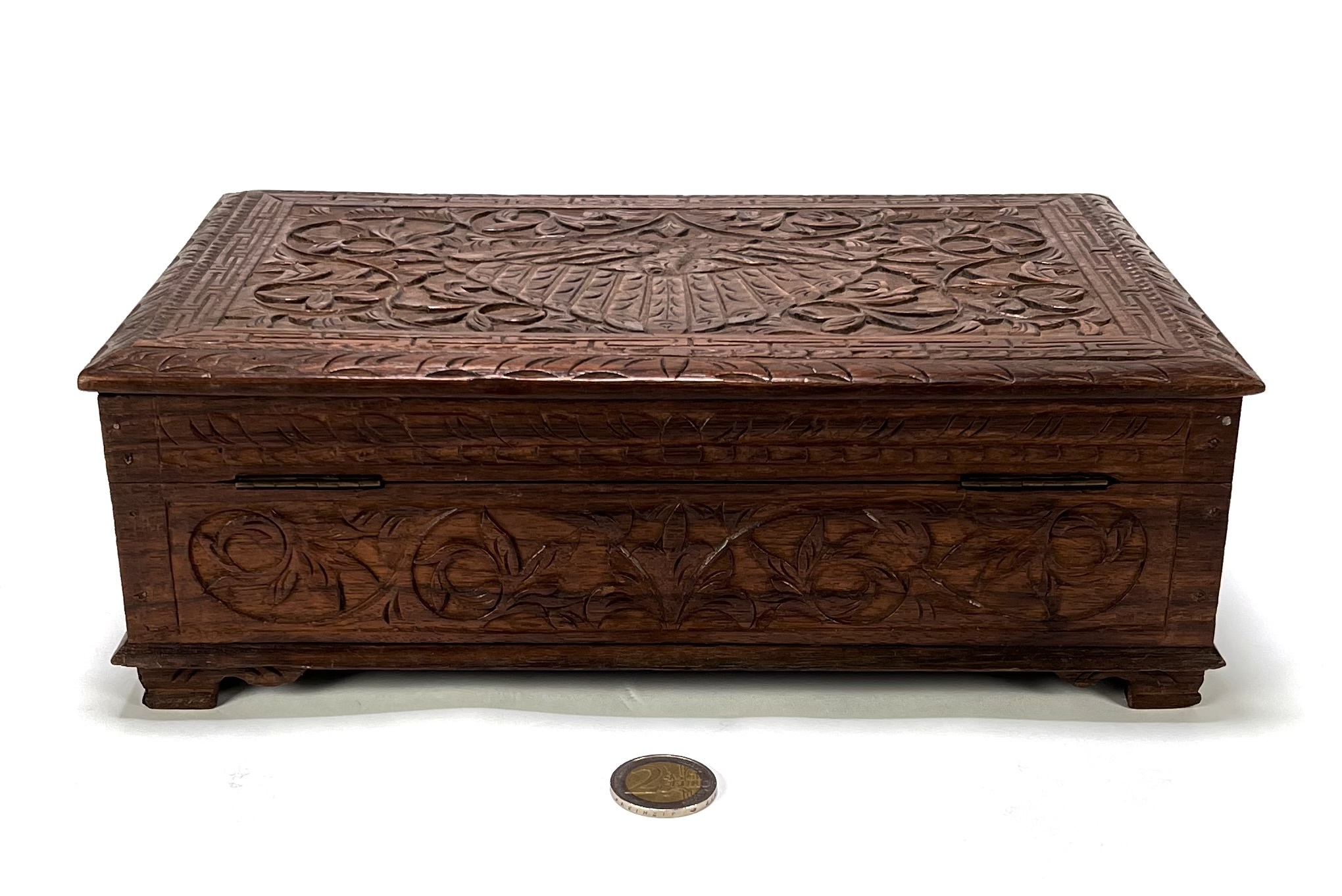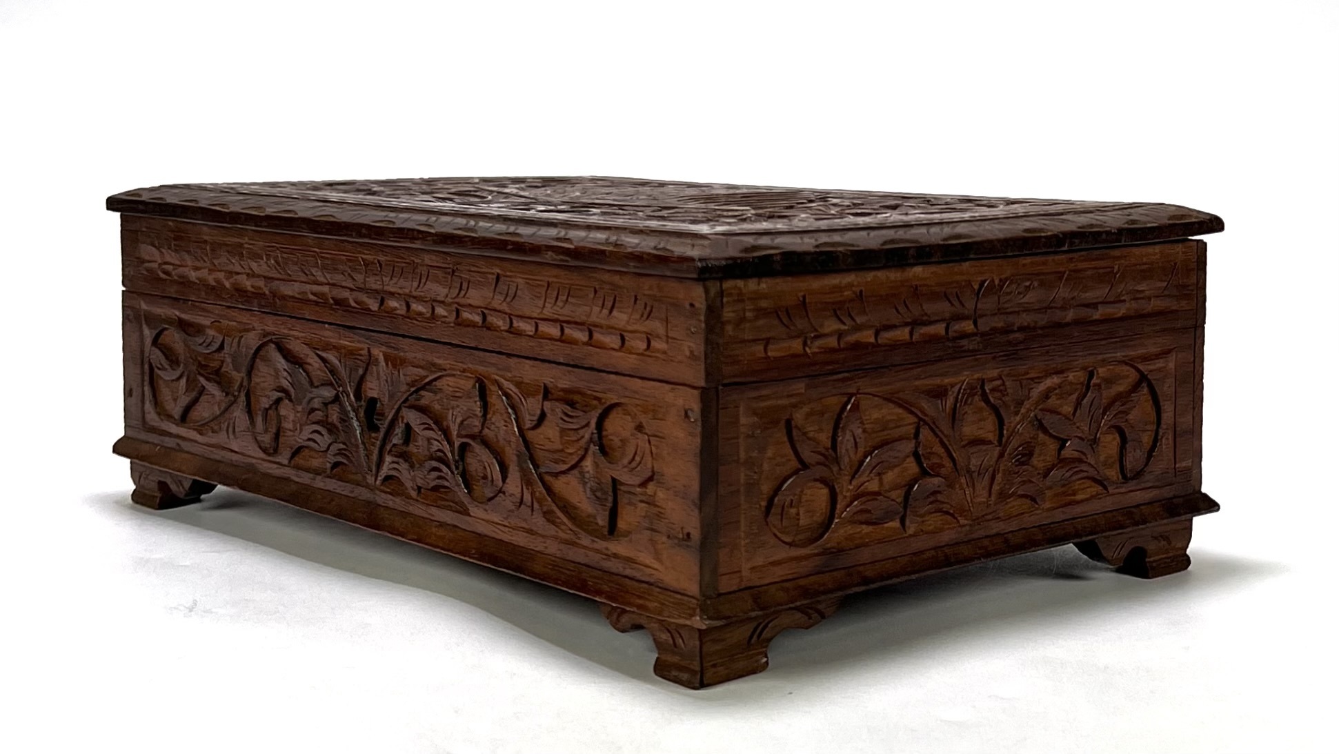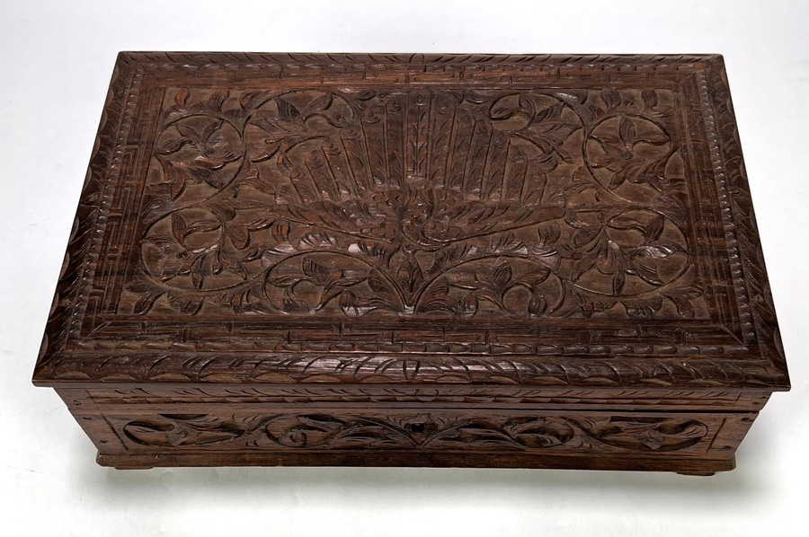 Houten doos met floraal houtsnijwerk, eind 19e eeuw