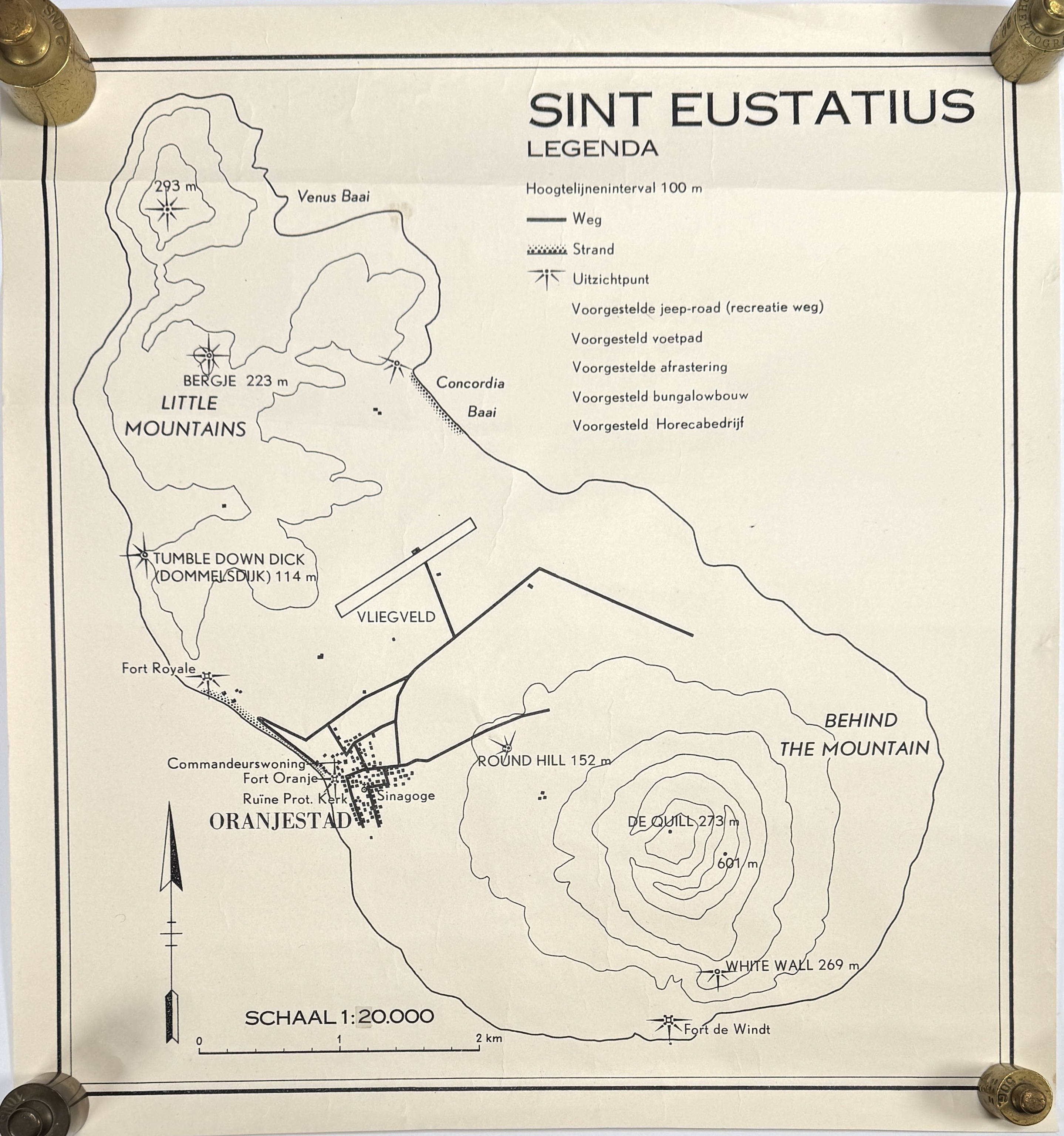 Vier kaarten van de Nederlandse Antillen vervaardigd uit papier met lithografische druktechniek. De verzameling omvat gedetailleerde topografische overzichten van Bonaire, Sint Eustatius, Aruba, Saba en Sint Maarten. De kaarten dateren uit circa 1960. Wil je direct deelnemen? Plaats vanaf 3 april alvast een schriftelijk bod via onze website! |