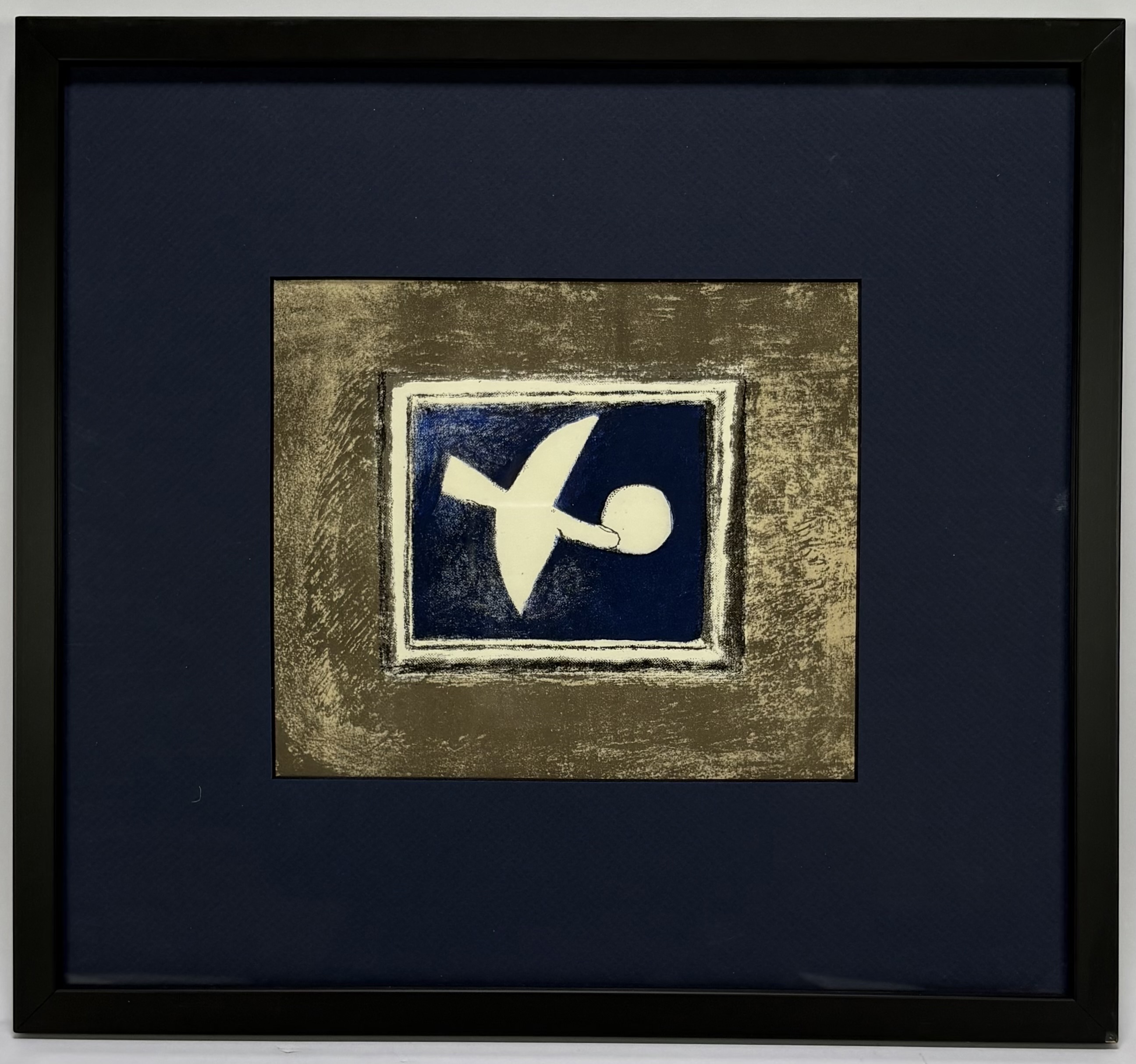 Kleurenlitho door Georges Braque (1881–1963) toont een witte vogel en een hemellichaam uit de modernistische periode, uitgevoerd in lithografie op papier. De compositie "Astre et Oiseau" kenmerkt zich door het diepblauwe kleurvlak en de getextureerde okerkleurige omlijsting. Gedrukt door Mourlot Frères en Sauret in 1963 onder toezicht van Henri Deschamps. Het werk heeft een Franse herkomst en een diepblauwe passe-partout. Kom langs tijdens de kijkdagen (10 t/m 12 april) en ontdek deze kleurenlitho zelf! |