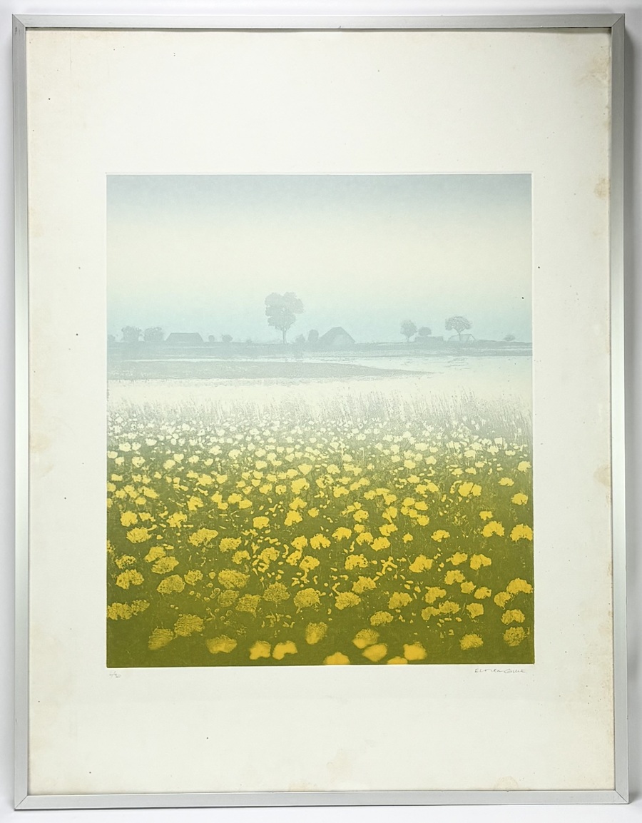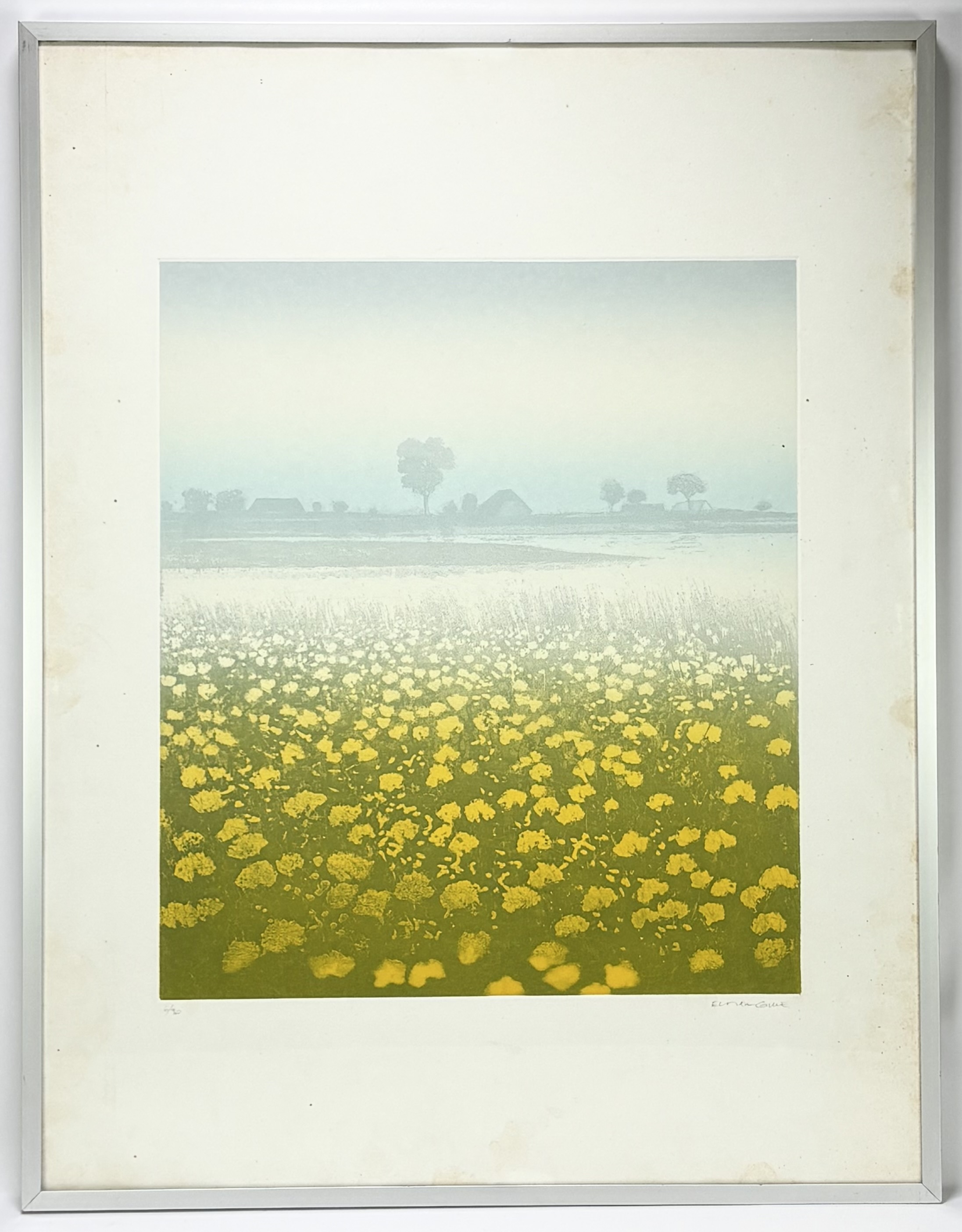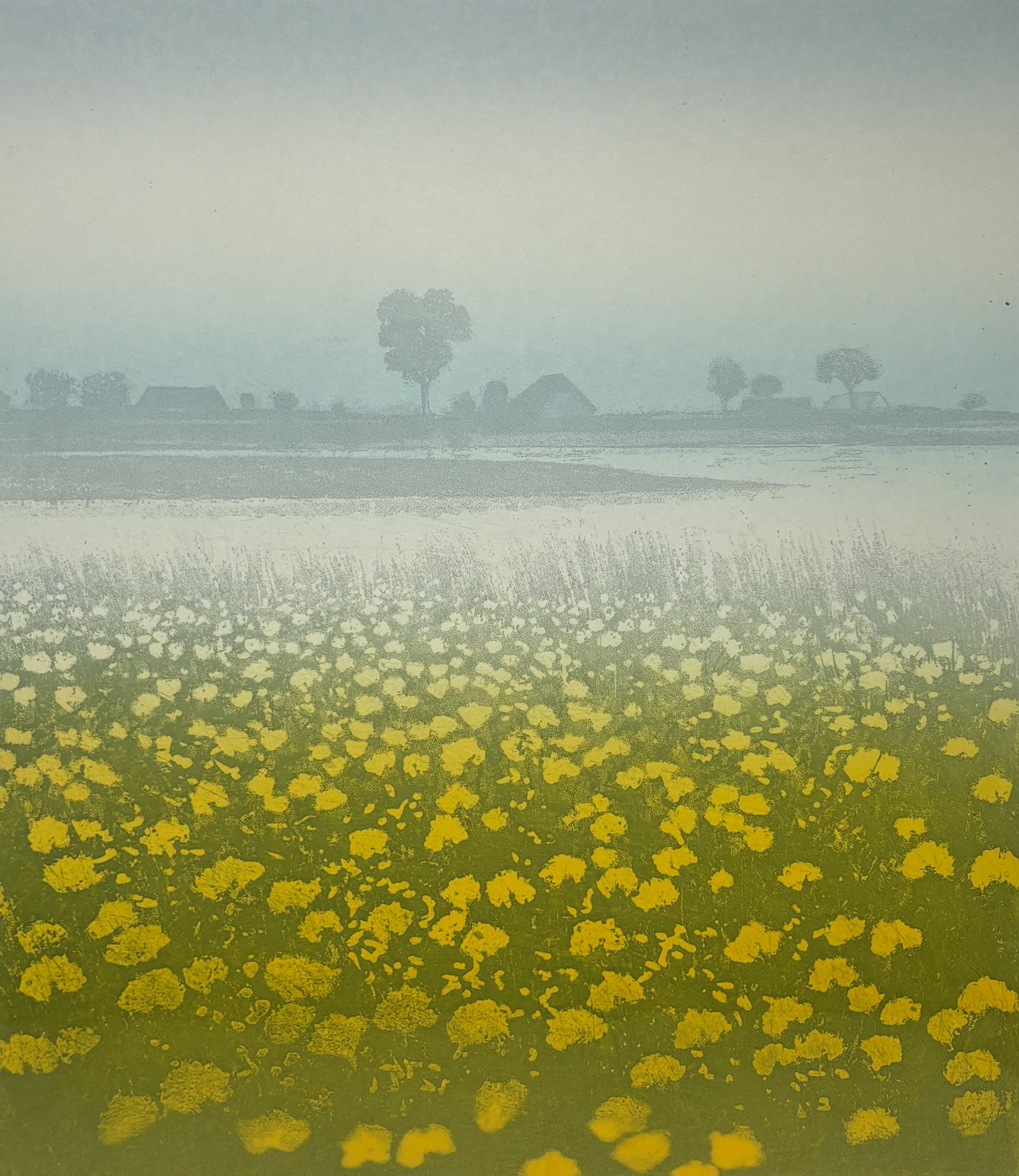 Zeefdruk, Elmar Gille – mistig polderlandschap, 1989
