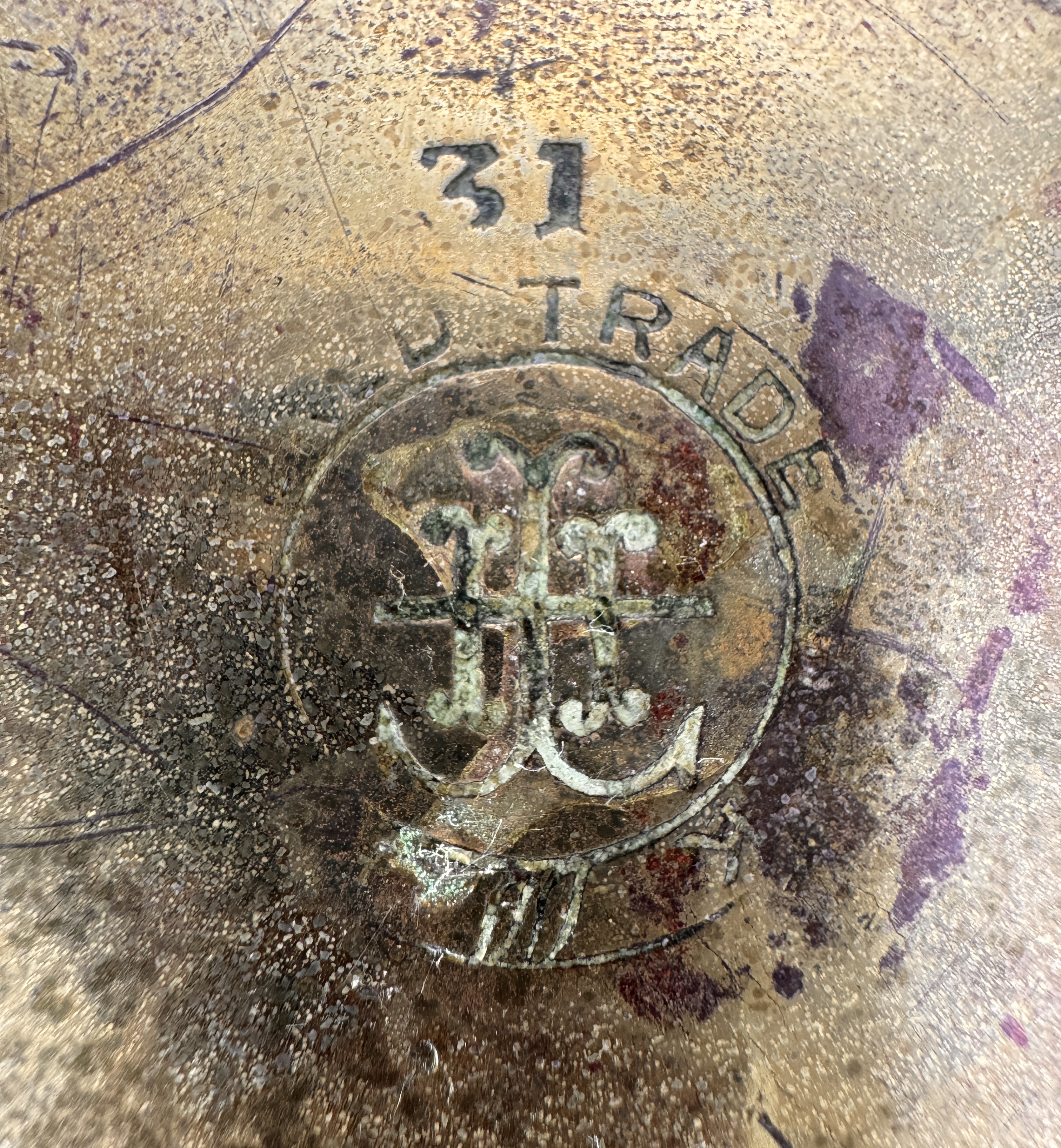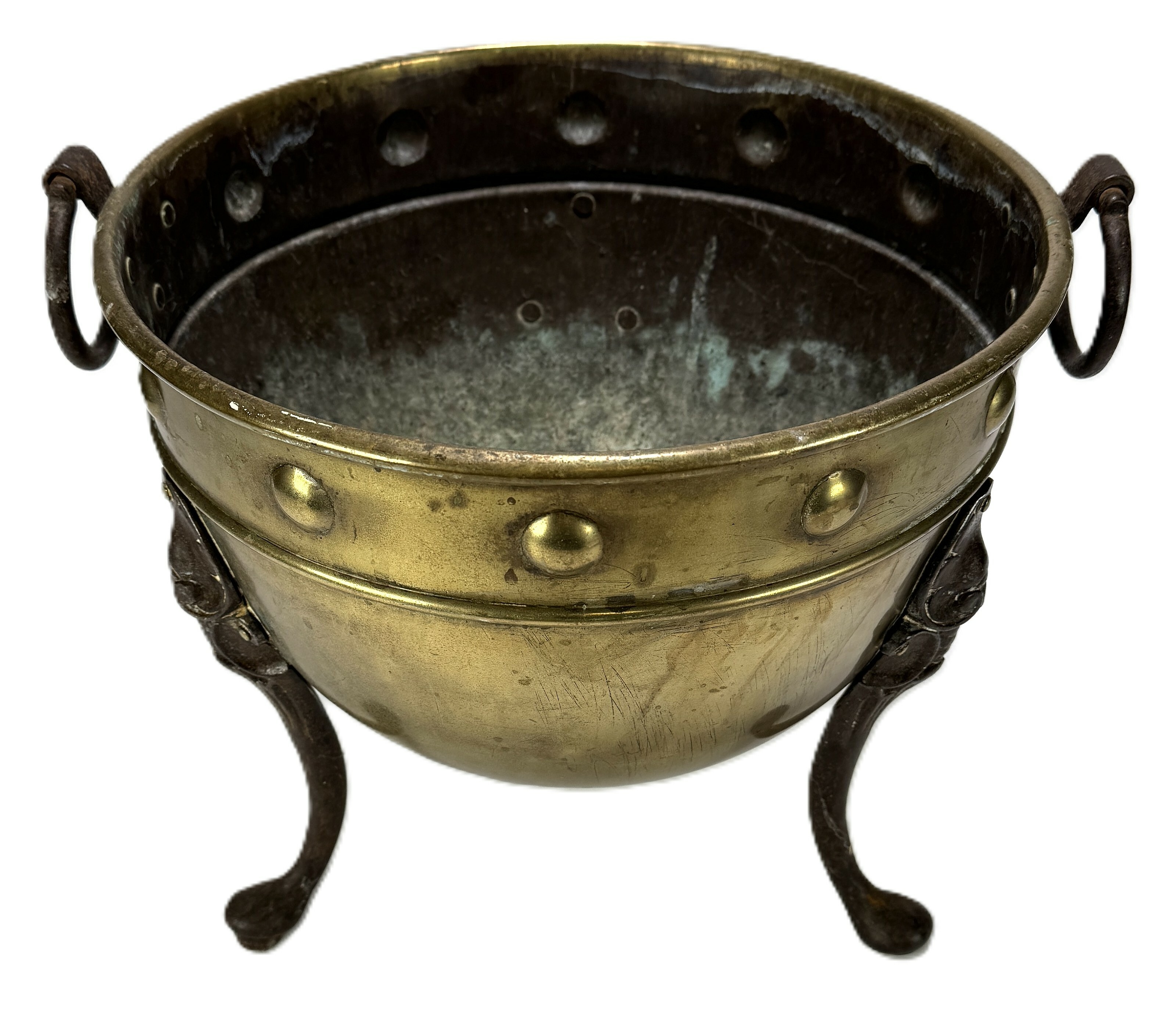 Jardinière van Henry Loveridge uit de late 19e eeuw, vervaardigd uit gedreven messing. De jardinière rust op drie gedetailleerde klauwpootjes en toont een decoratieve band van halfronde bolornamenten. Gemerkt op de bodem met het anker embleem van de Engelse fabrikant, daterend uit circa 1880 en een Britse herkomst. Eerst deze jardinière zien voordat je biedt? Bezoek onze kijkdagen op 10, 11 en 12 april! |
