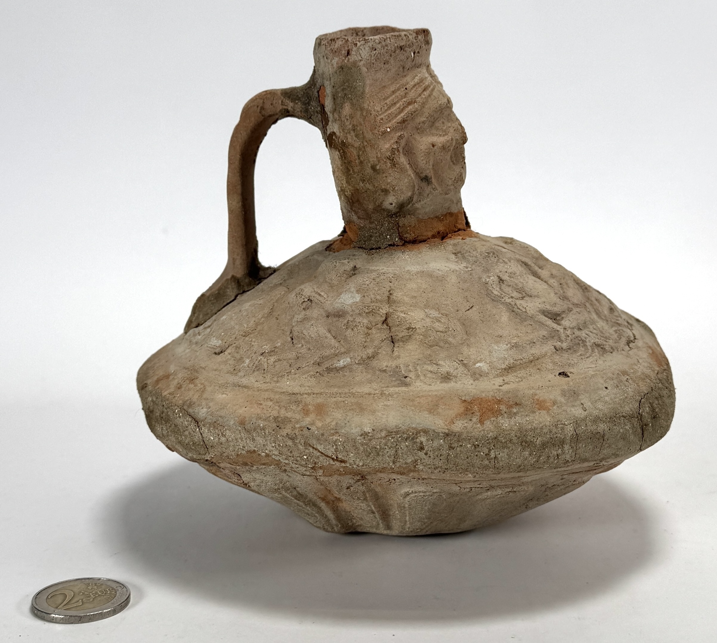 Romeinse terracotta lagynos - vrouwenhoofd, Noord-Afrika, 2e-3e eeuw n. Chr.