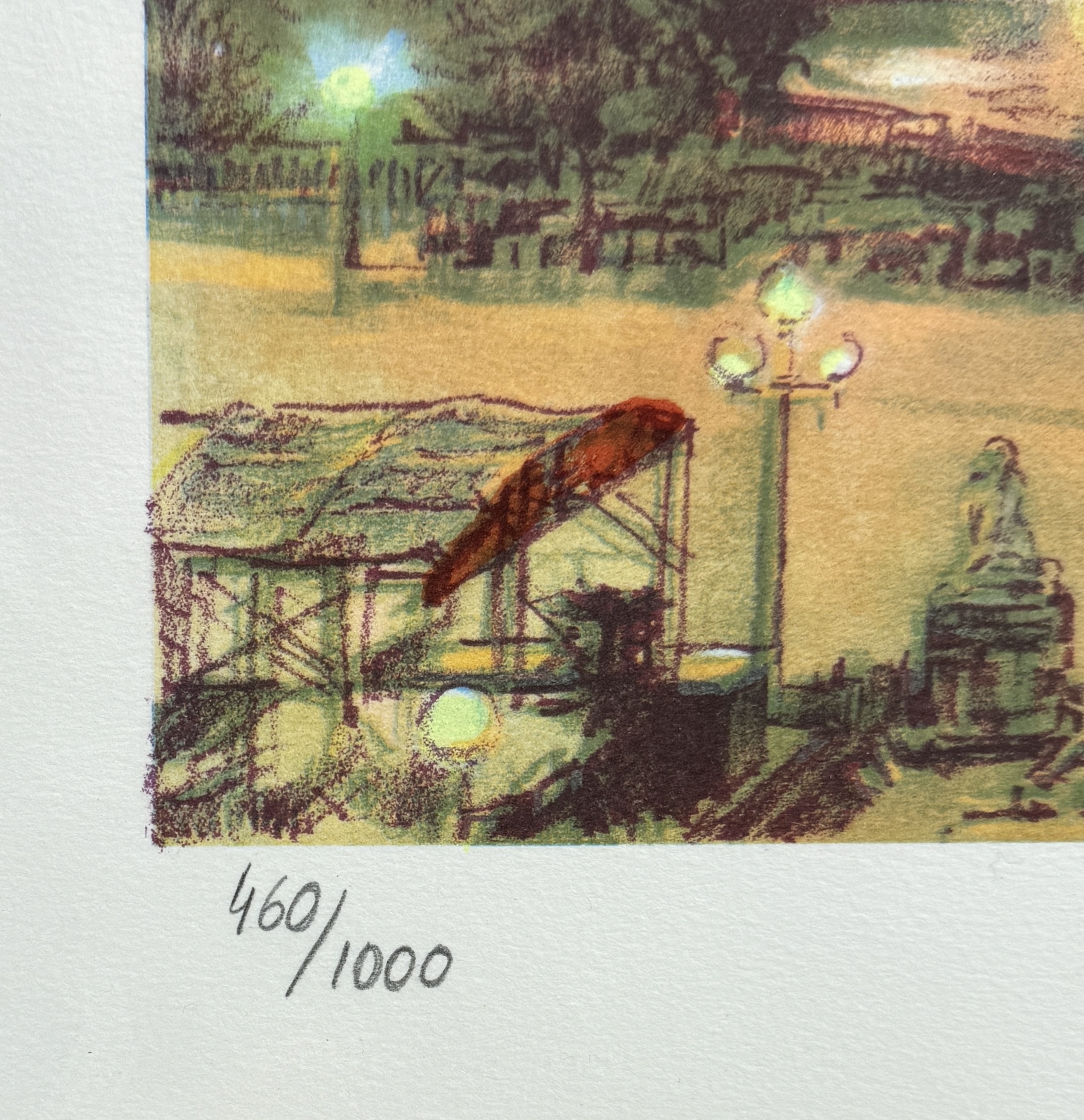 Litho door José Luis Fuentetaja (1951) toont de Magische Fontein van Montjuïc in Barcelona in impressionistische stijl, op papier. De compositie legt de nadruk op de lichtspelingen tegen de nachtelijke skyline van Barcelona. Linksonder bevindt zich het oplagenummer 460/1000, rechtsonder gesigneerd. Deze prent dateert uit circa 1990, heeft een Spaanse herkomst. Klaar om te bieden? Registreer je nu en doe mee aan de veiling! |