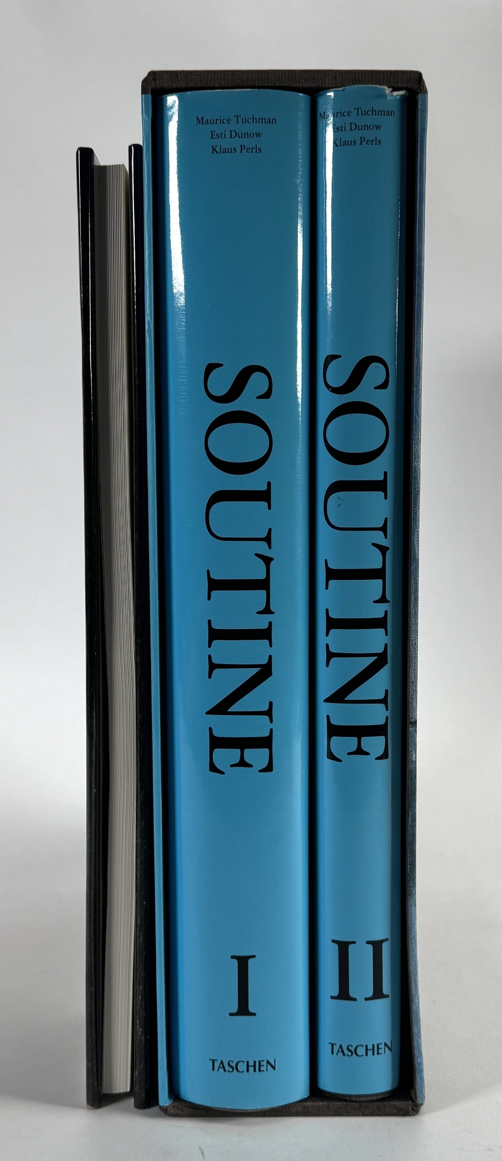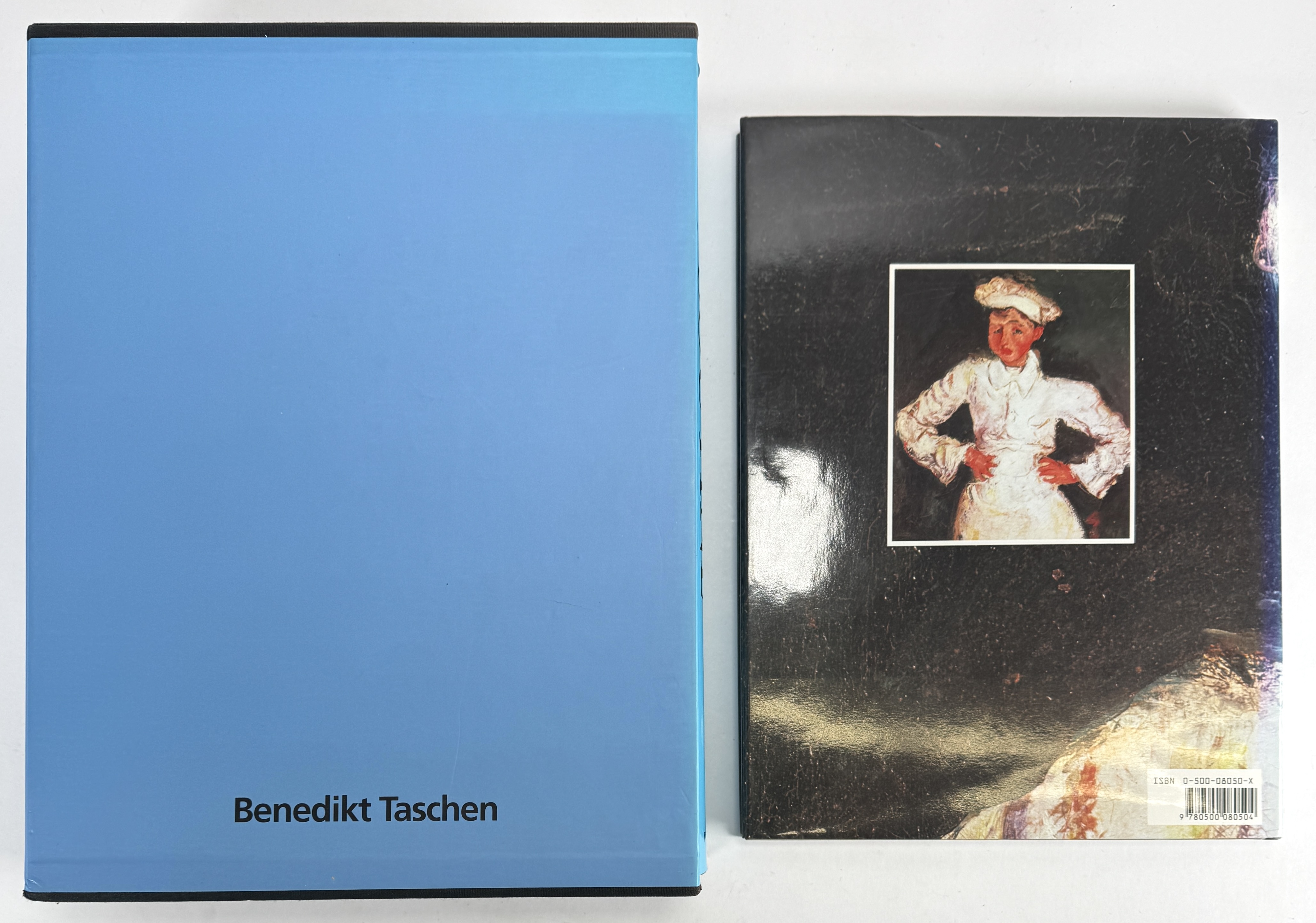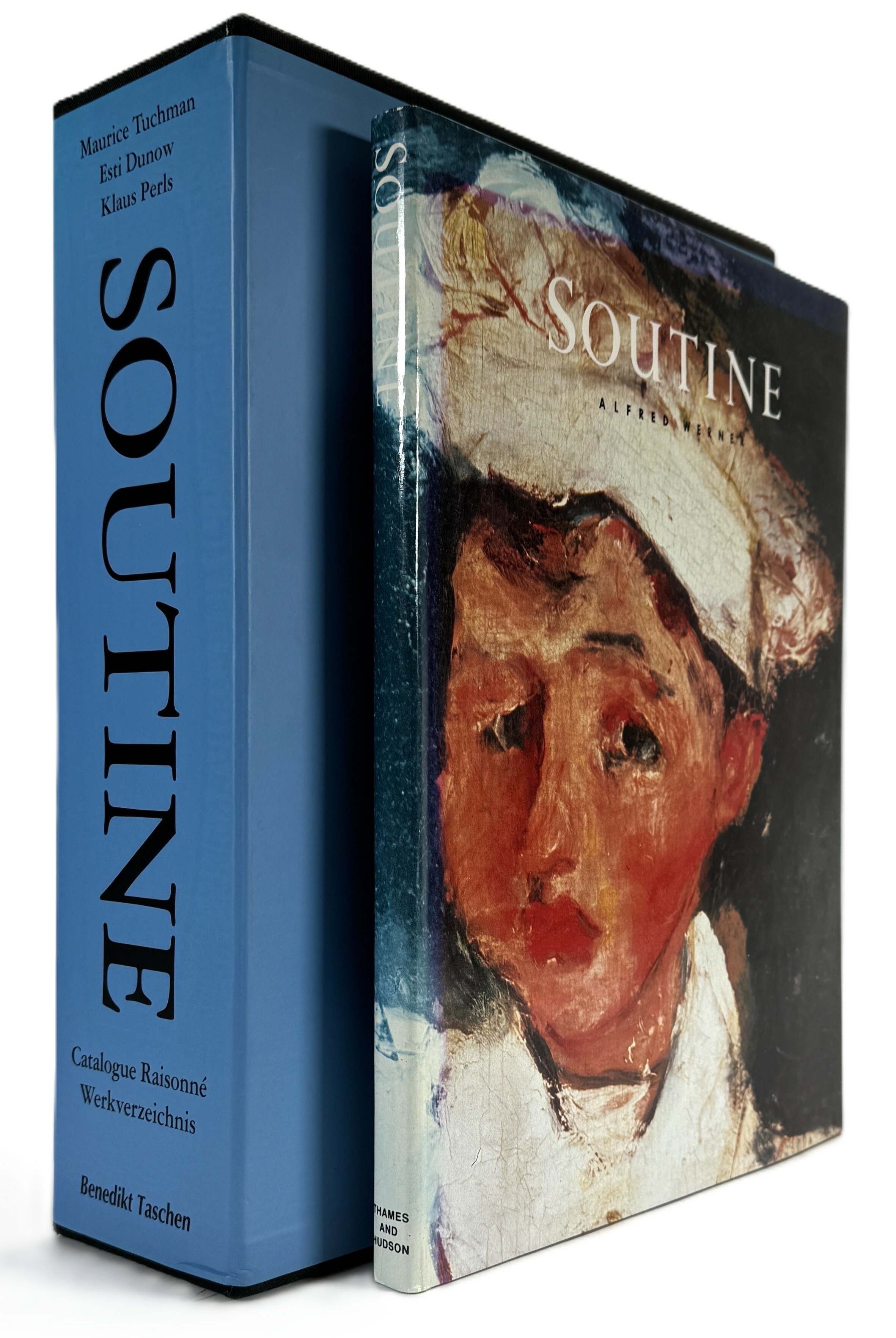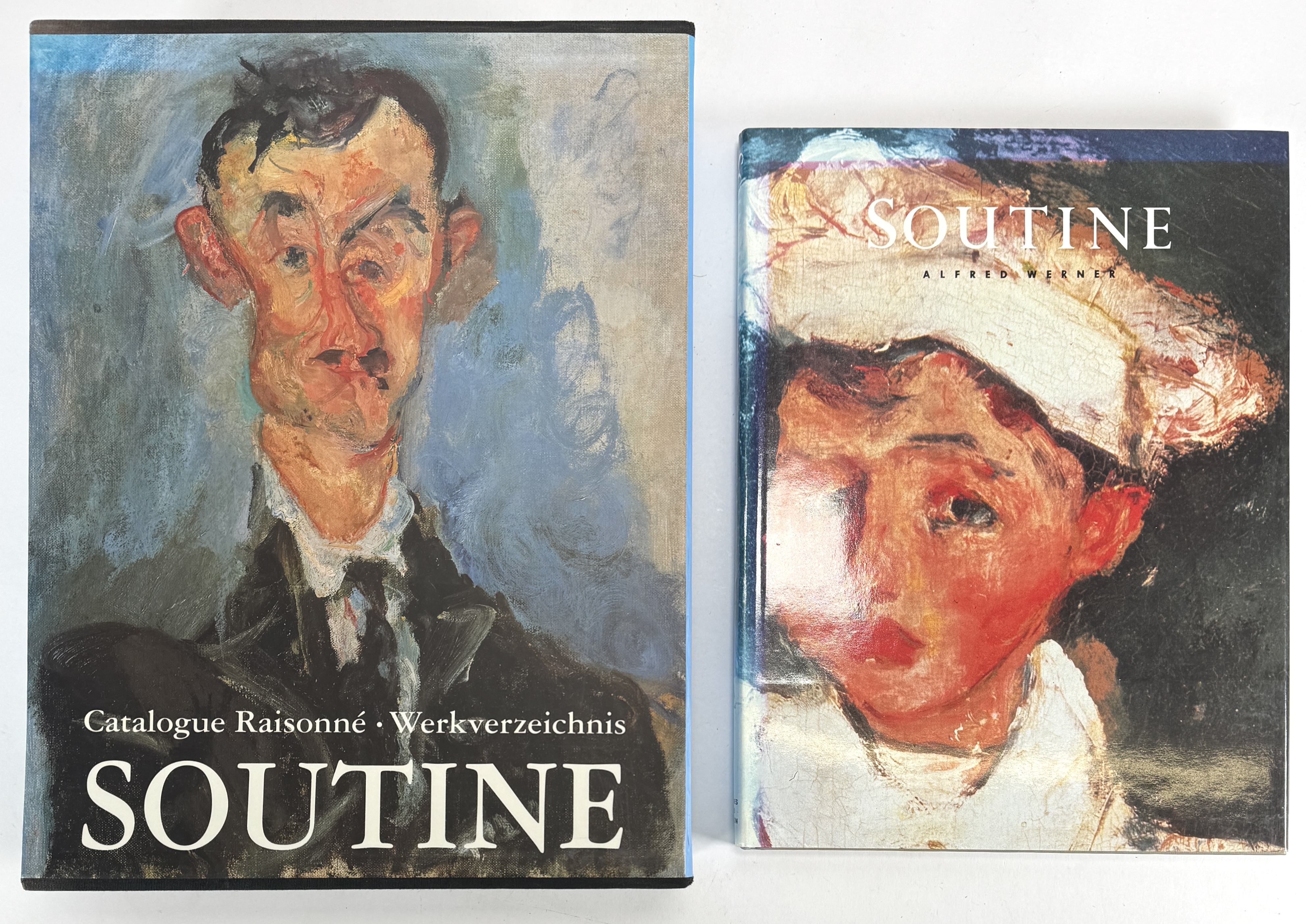 Boeken over Chaim Soutine (1893–1943), bestaande uit de tweedelige Catalogue Raisonné van Taschen in blauwe halflinnen cassette en een monografie door Alfred Werner van Thames & Hudson. De set bevat een uitgebreid overzicht van het oeuvre met technische analyses en kwaliteitsreproducties. De boeken dateren uit de jaren negentig. Wil je deze boeken in het echt bekijken? Kom naar de kijkdagen! |