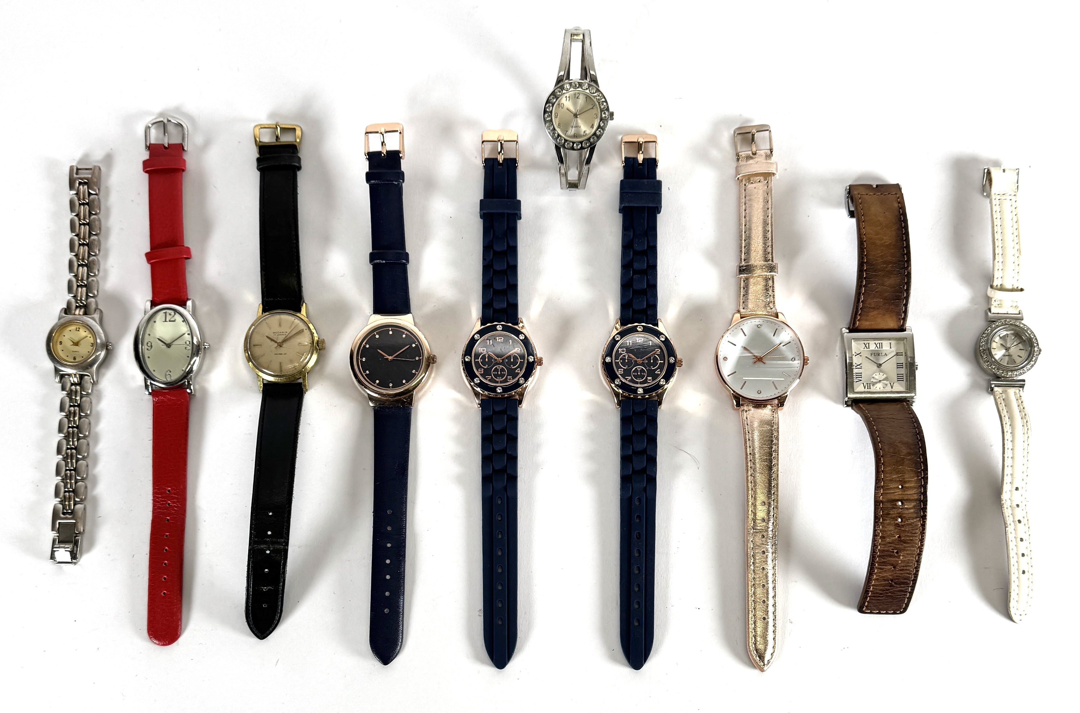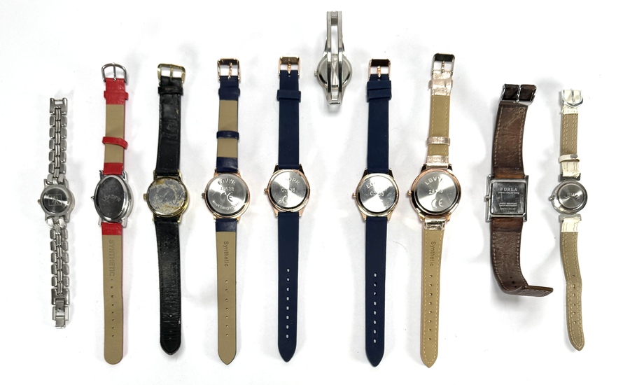 Tien horloges van diverse merken zoals Furla en Rodania, vervaardigd uit edelstaal met quartz-uurwerken en diverse lederen en synthetische banden. Met een variatie aan wijzerplaten, van minimalistische ontwerpen tot chronograaf-stijl decors. Datering laatste kwart 20e eeuw tot heden en een internationale herkomst. Wil je direct deelnemen? Plaats vanaf 3 april alvast een schriftelijk bod via onze website! |