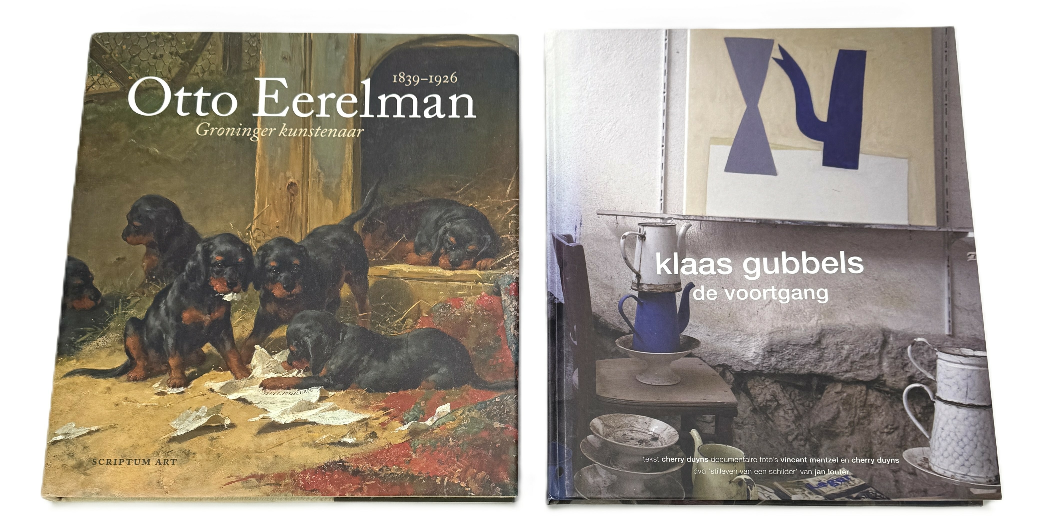 Kunstboeken van Harry J. Kraaij en Cherry Duyns, vervaardigd als gebonden kunstenaarsmonografieën op papier en karton. Het lot omvat Otto Eerelman, Groninger kunstenaar 1839–1926 met linnen band en stofomslag, en Klaas Gubbels "De voortgang" in gekartonneerde band, inclusief CD. Beide uitgaven dateren uit de vroege 21e eeuw. Eerst deze boeken zien voordat je biedt? Bezoek onze kijkdagen op 10, 11 en 12 april! |