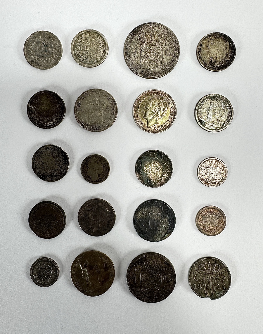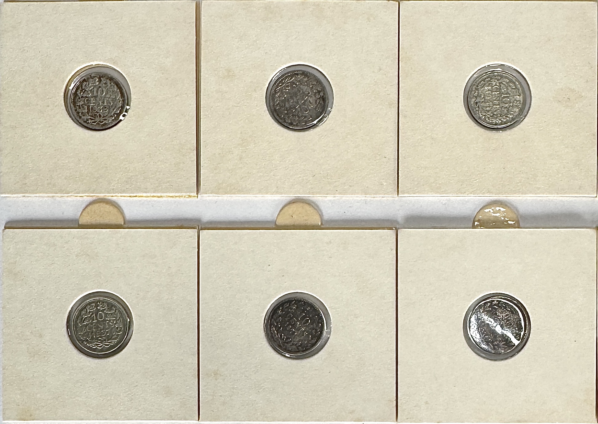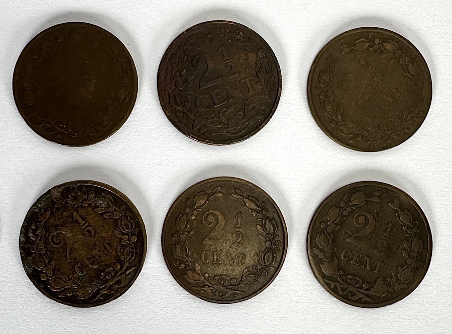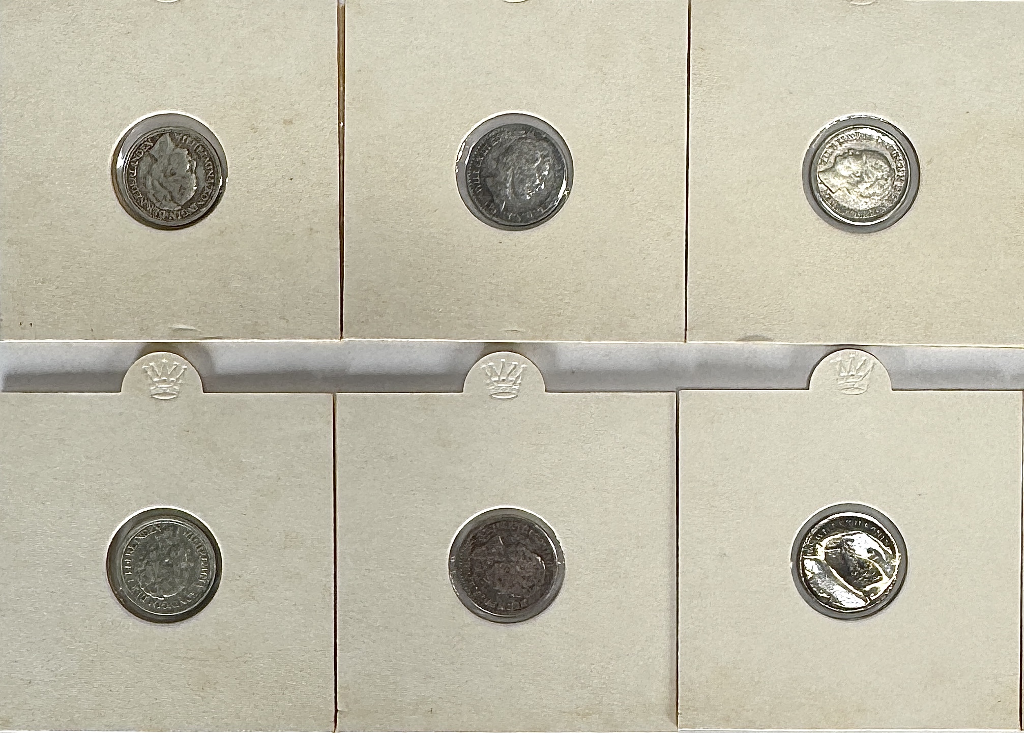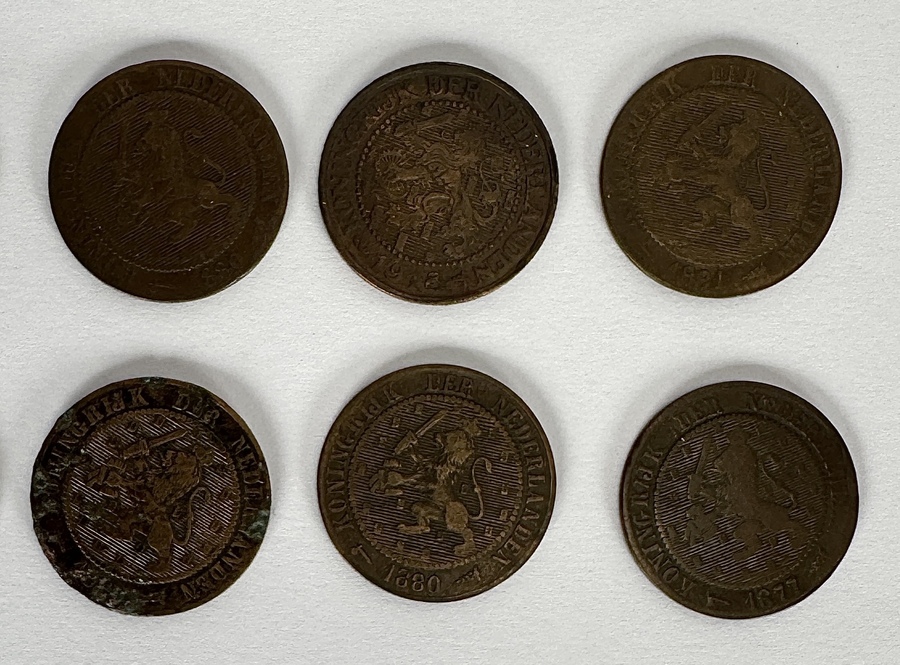 Munten uit de 19e en 20e eeuw, vervaardigd uit zilver en koper binnen het Koninkrijk der Nederlanden. De collectie bevat diverse denominaties, variërend van koperen halve centen tot zilveren kwartjes met portretten van opeenvolgende vorsten. De numismatische reeks is overzichtelijk ondergebracht in een muntenalbum. De foto’s van zes munten zijn exemplarisch voor een pagina (waar twintig munten van dezelfde valuta in zitten). De munten dateren uit de periode 1815–1940 en hebben een Nederlandse herkomst. Wil je direct deelnemen? Plaats vanaf 3 april alvast een schriftelijk bod via onze website! |