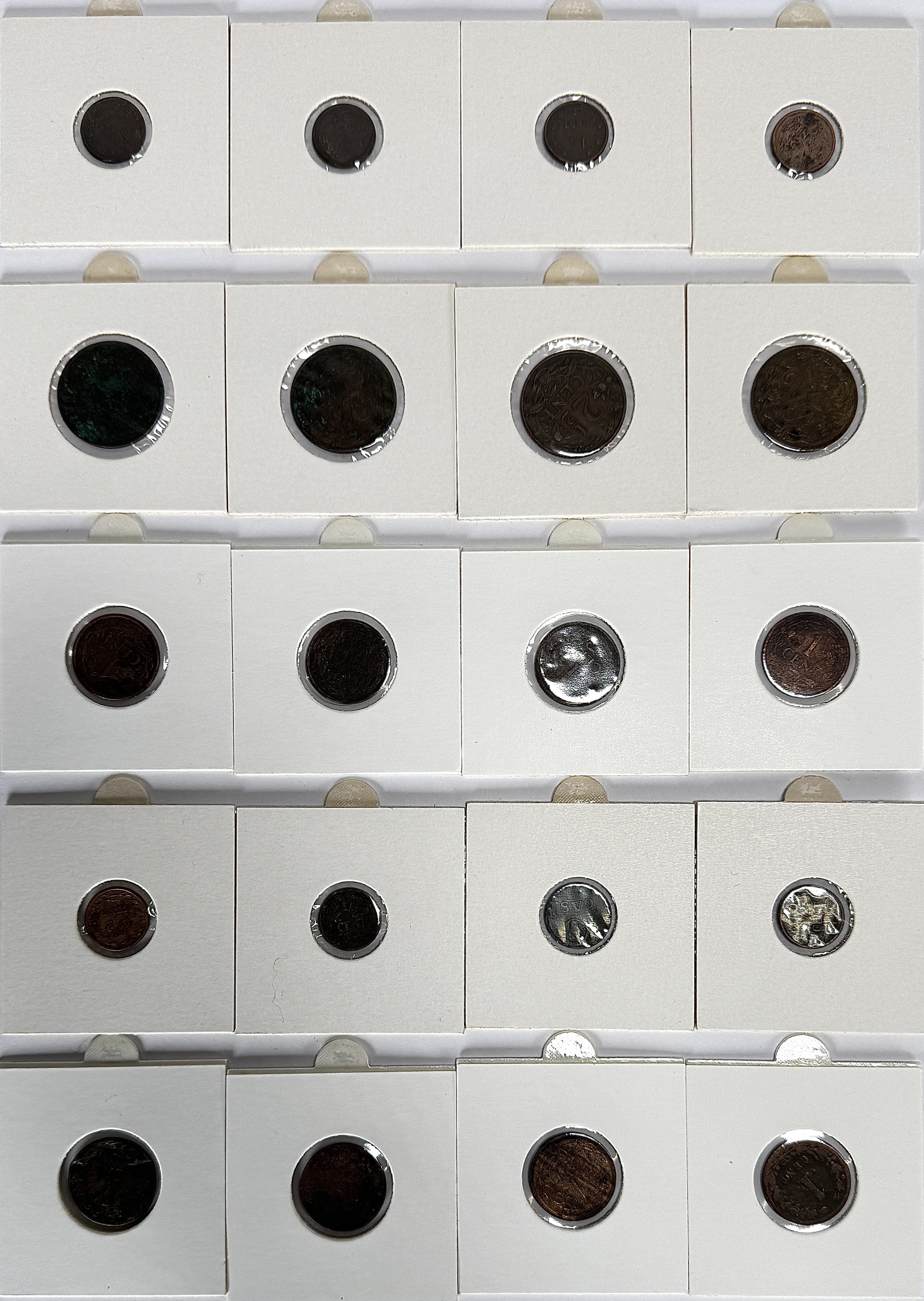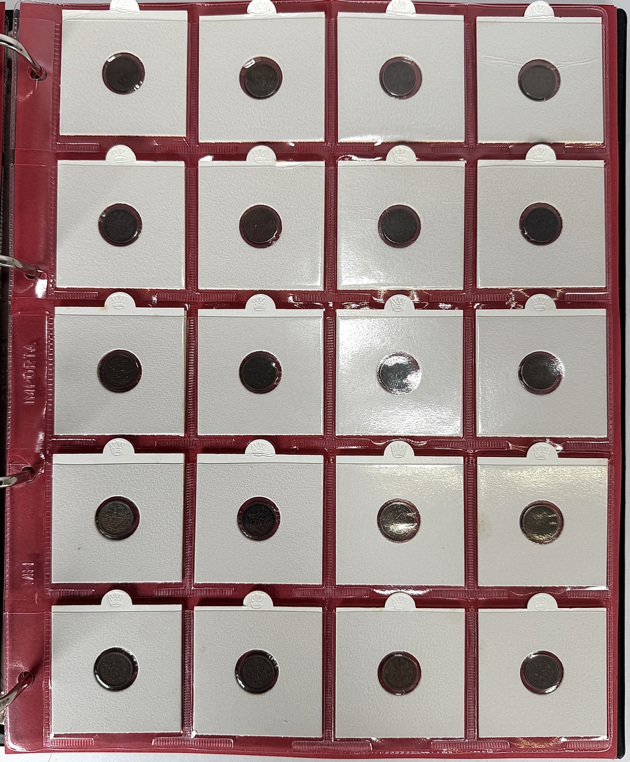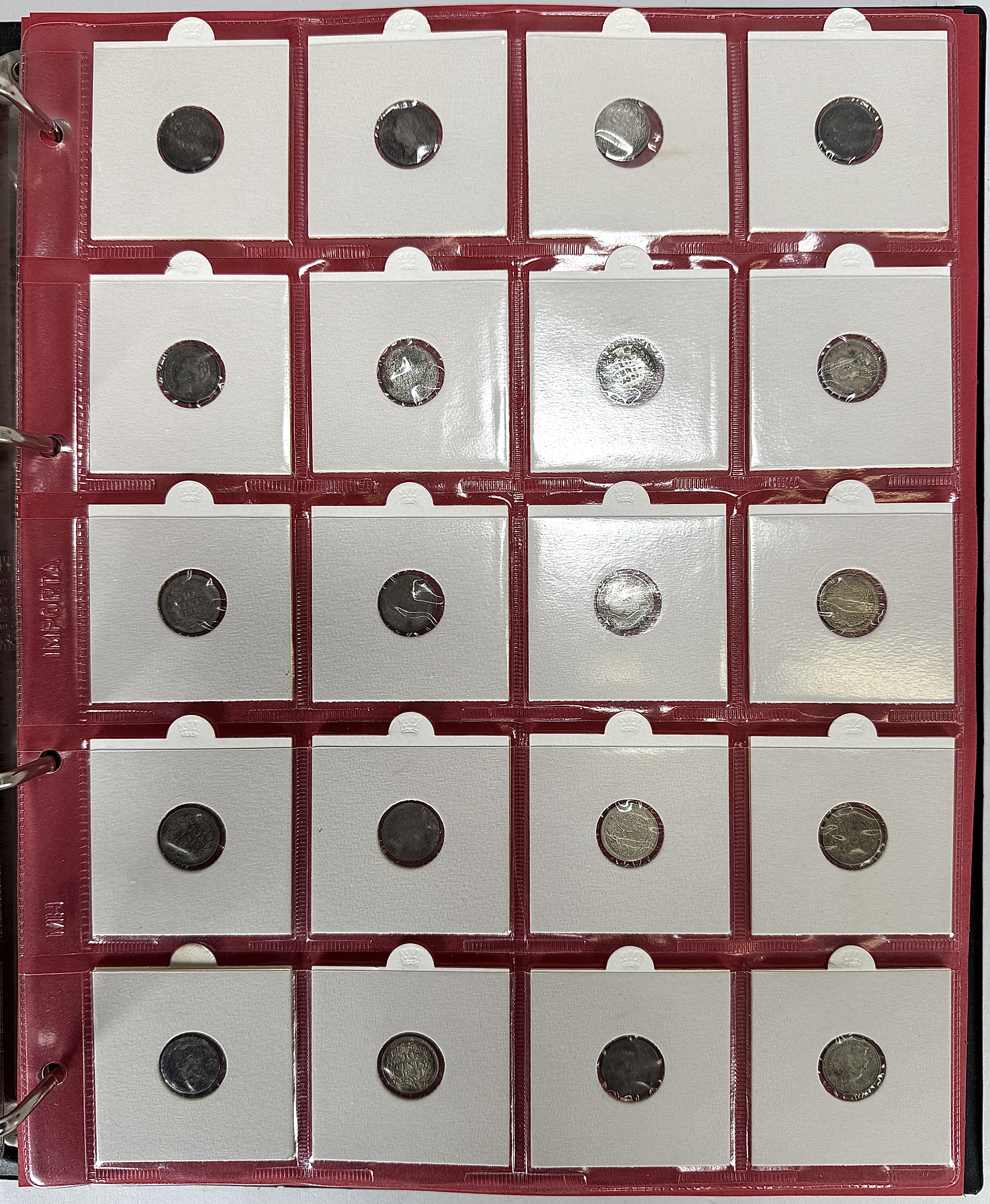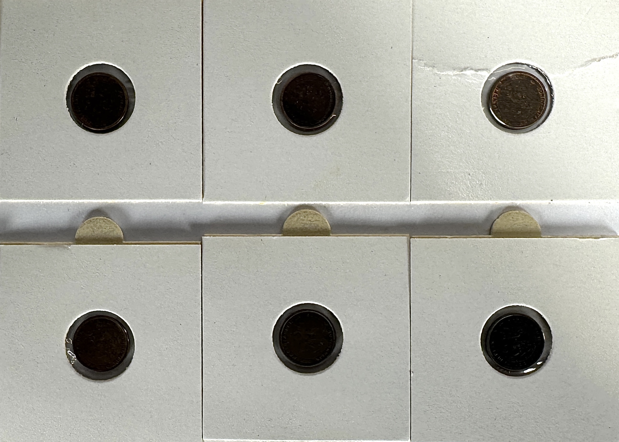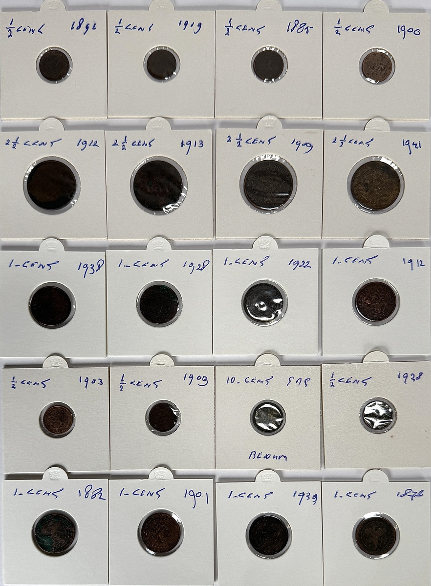Munten uit de 19e en 20e eeuw, vervaardigd uit zilver en koper binnen het Koninkrijk der Nederlanden. De collectie bevat diverse denominaties, variërend van koperen halve centen tot zilveren kwartjes met portretten van opeenvolgende vorsten. De numismatische reeks is overzichtelijk ondergebracht in een muntenalbum. De foto’s van zes munten zijn exemplarisch voor een pagina (waar twintig munten van dezelfde valuta in zitten). De munten dateren uit de periode 1815–1940 en hebben een Nederlandse herkomst. Wil je direct deelnemen? Plaats vanaf 3 april alvast een schriftelijk bod via onze website! |