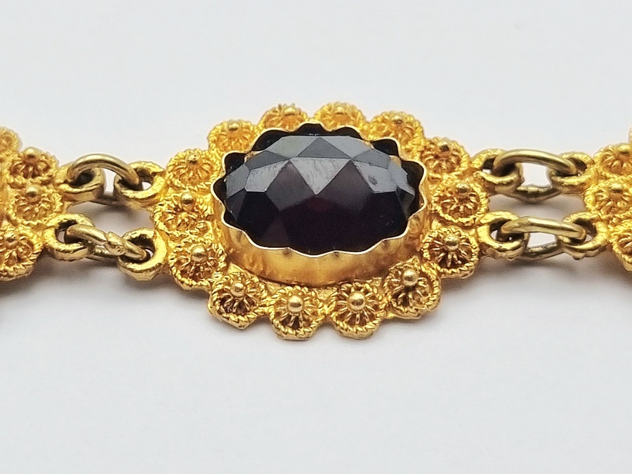 Gouden 14 karaats armband met granaten, 20e eeuw