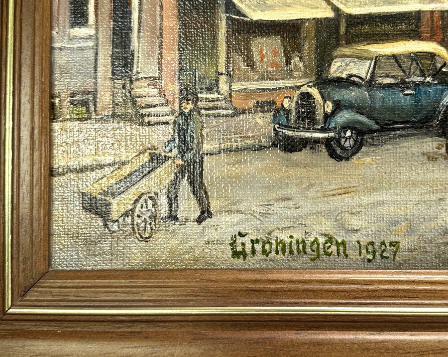 Olieverfschilderij, T. Timmer - "Groningen 1927", midden 20e eeuw