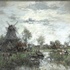 Olieverfschilderij, T. van Oorschot - polderlandschap met molen, 20e eeuw