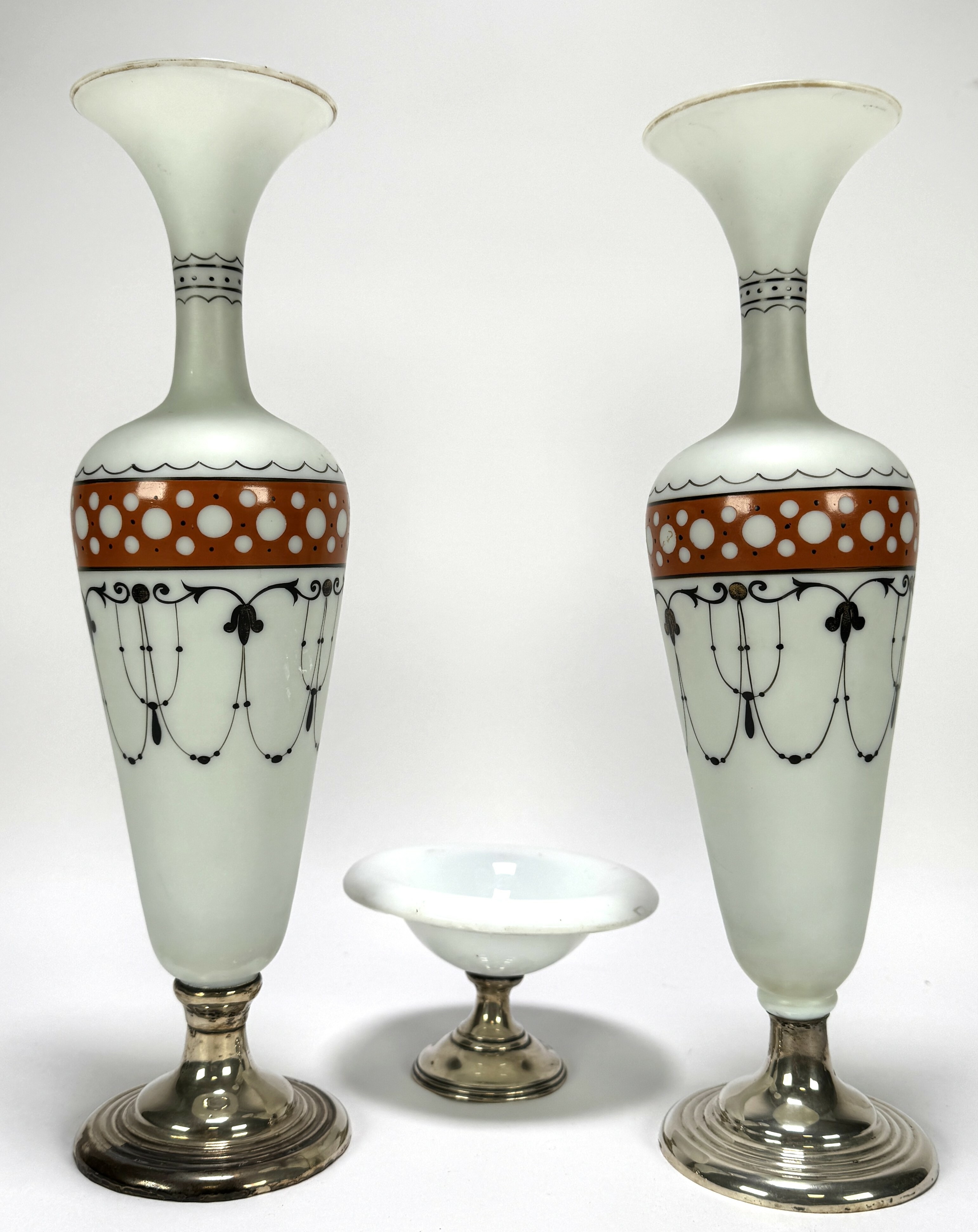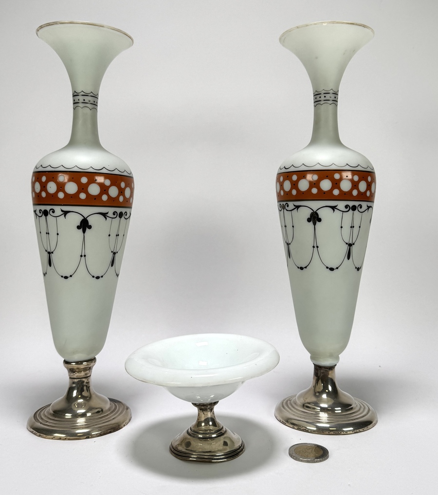 | Kavelnummer en naam | 614. Art Deco opaline vazen en schaaltje, eerste helft 20e eeuw | |