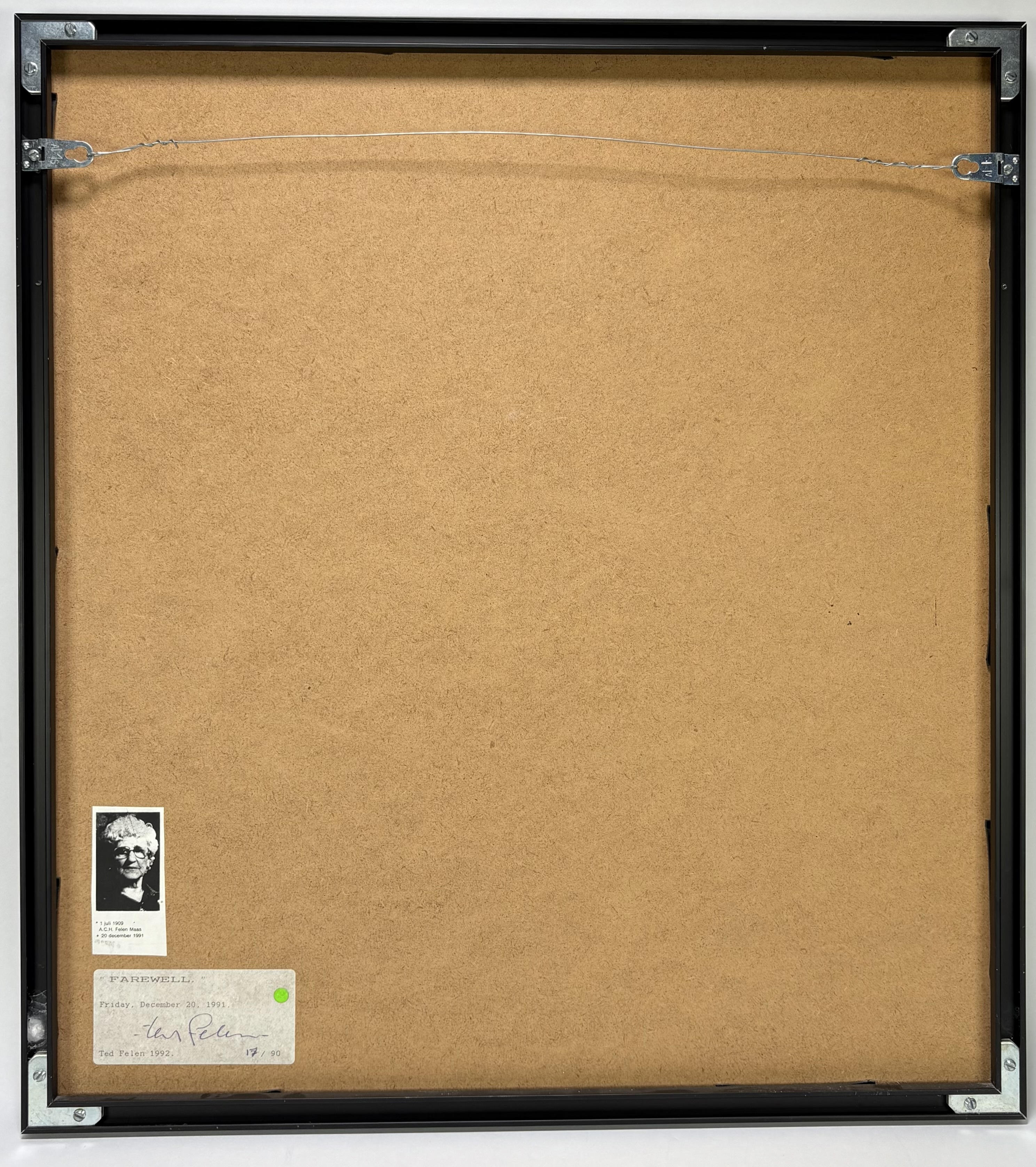 | Kavelnummer en naam | 854. Zeefdruk, Ted Felen – abstracte compositie, "Farewell", 1992 | |