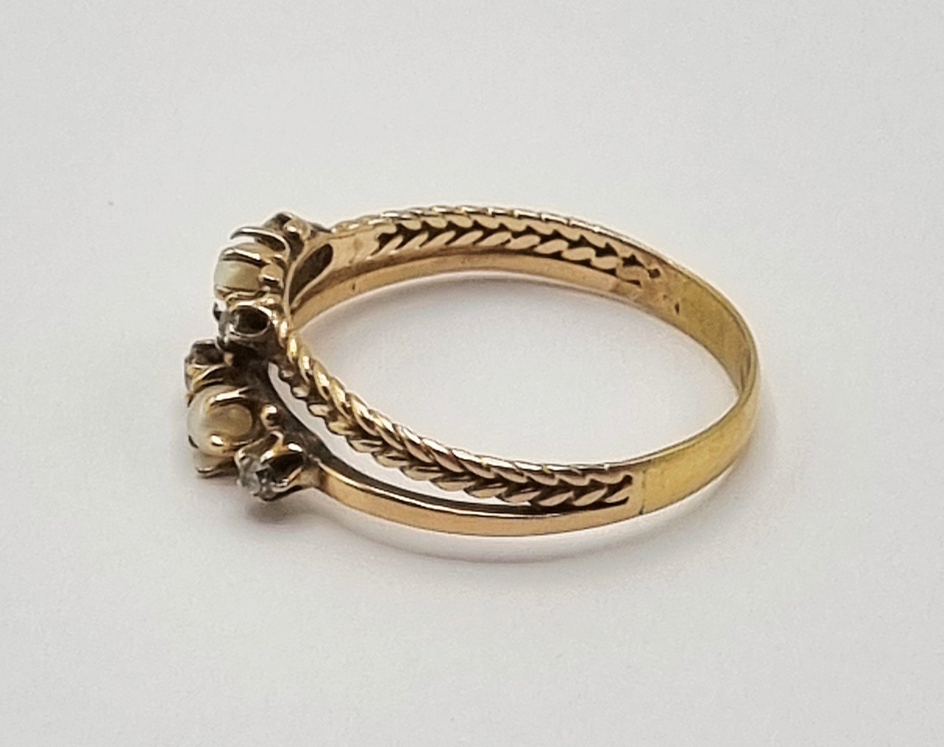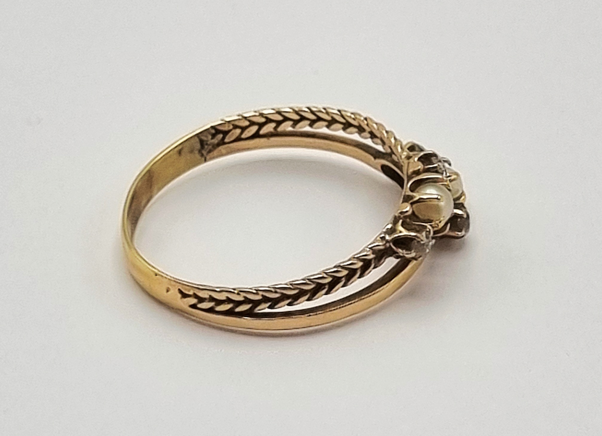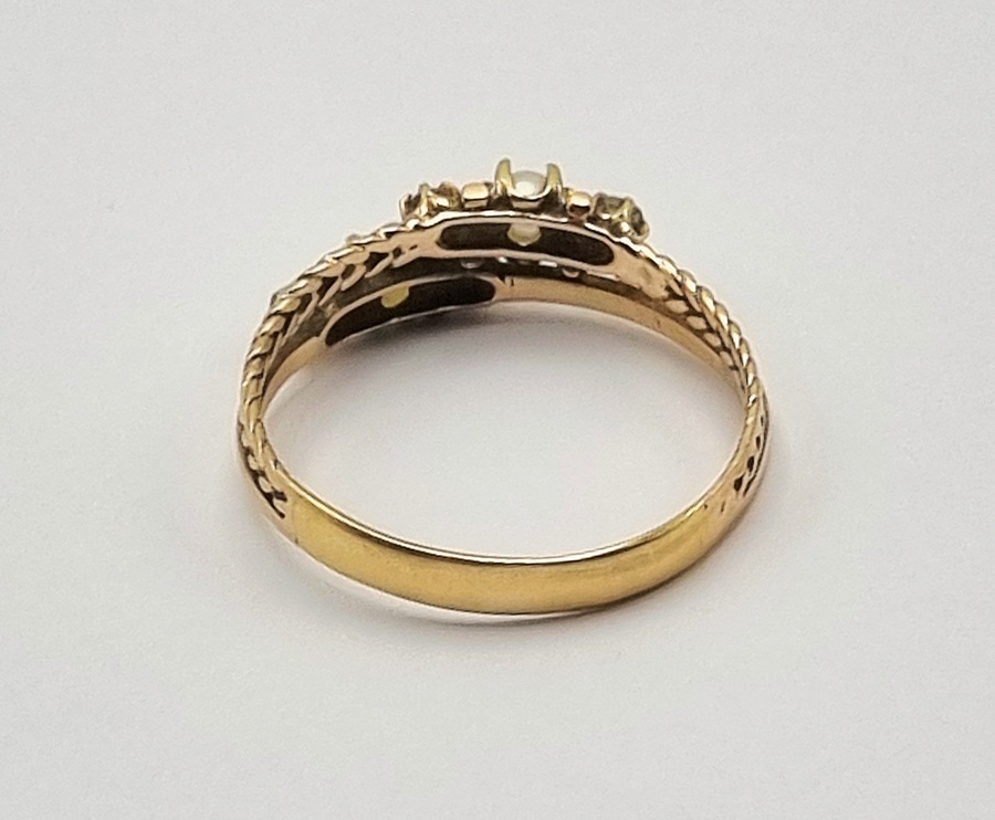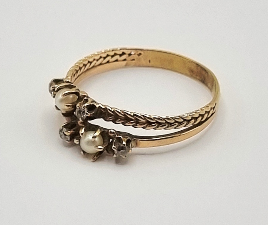 Gouden ring met parels en diamanten, begin 20e eeuw