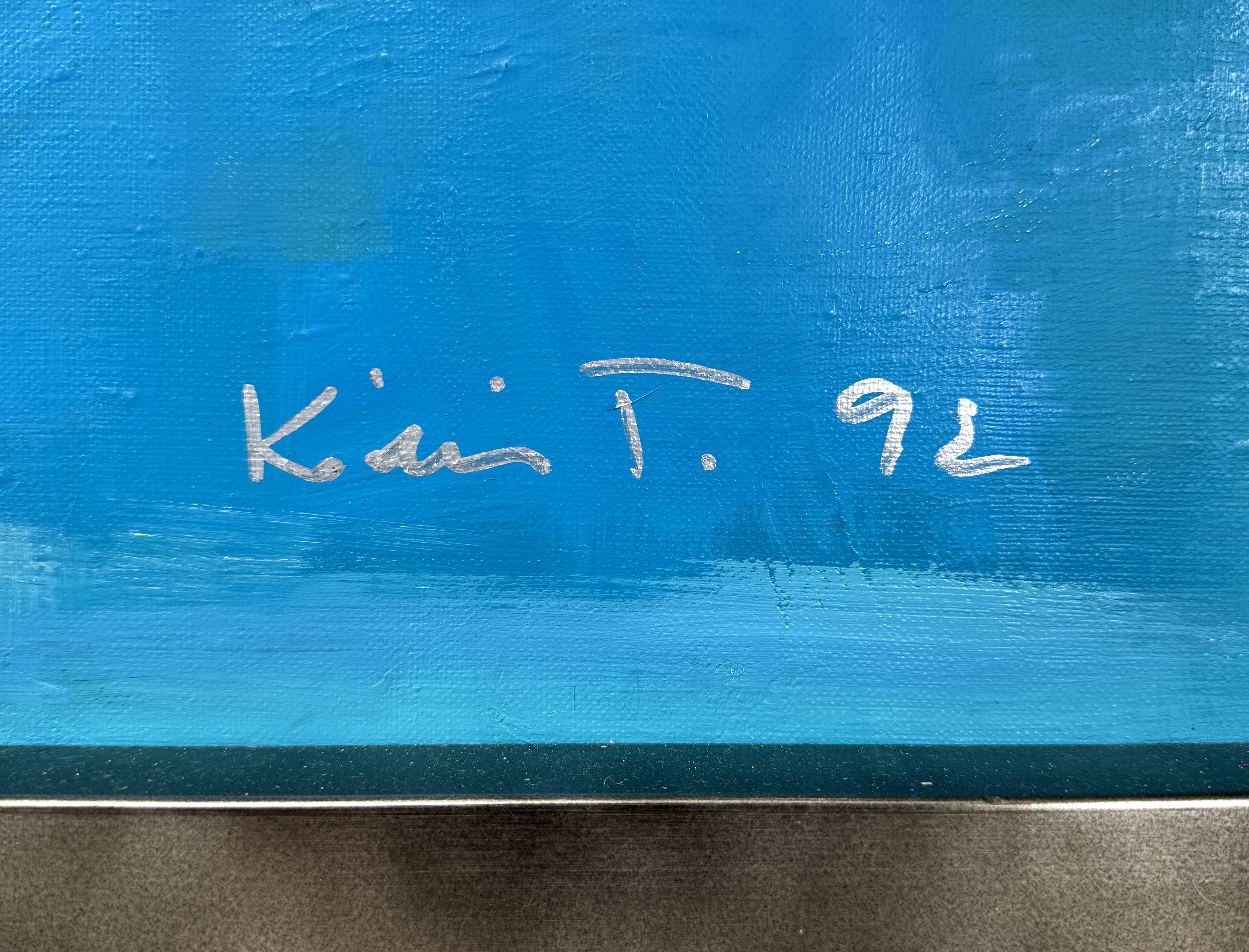 Schilderij door Tibor Kádár (1946–2021), uitgevoerd in olieverf op doek, in abstract-expressionistische stijl. Rechtsonder gesigneerd en gedateerd Kádár T. 92. Het werk toont een gelaagde compositie met blauw als dominante kleur, gecombineerd met textuur en contrasterende accenten. Gemonteerd in moderne lijst. Uitgevoerd in 1992, Roemenië. Zeker zijn van deelname? Plaats vanaf 3 april een schriftelijk bod online! |