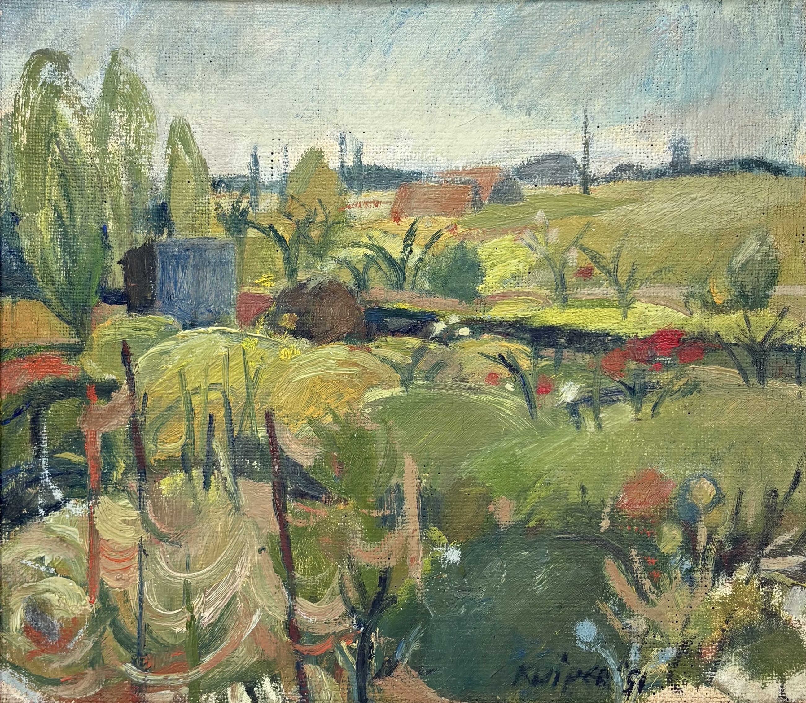 Olieverfschilderij, Kuiper – landschap met schuur, 1951