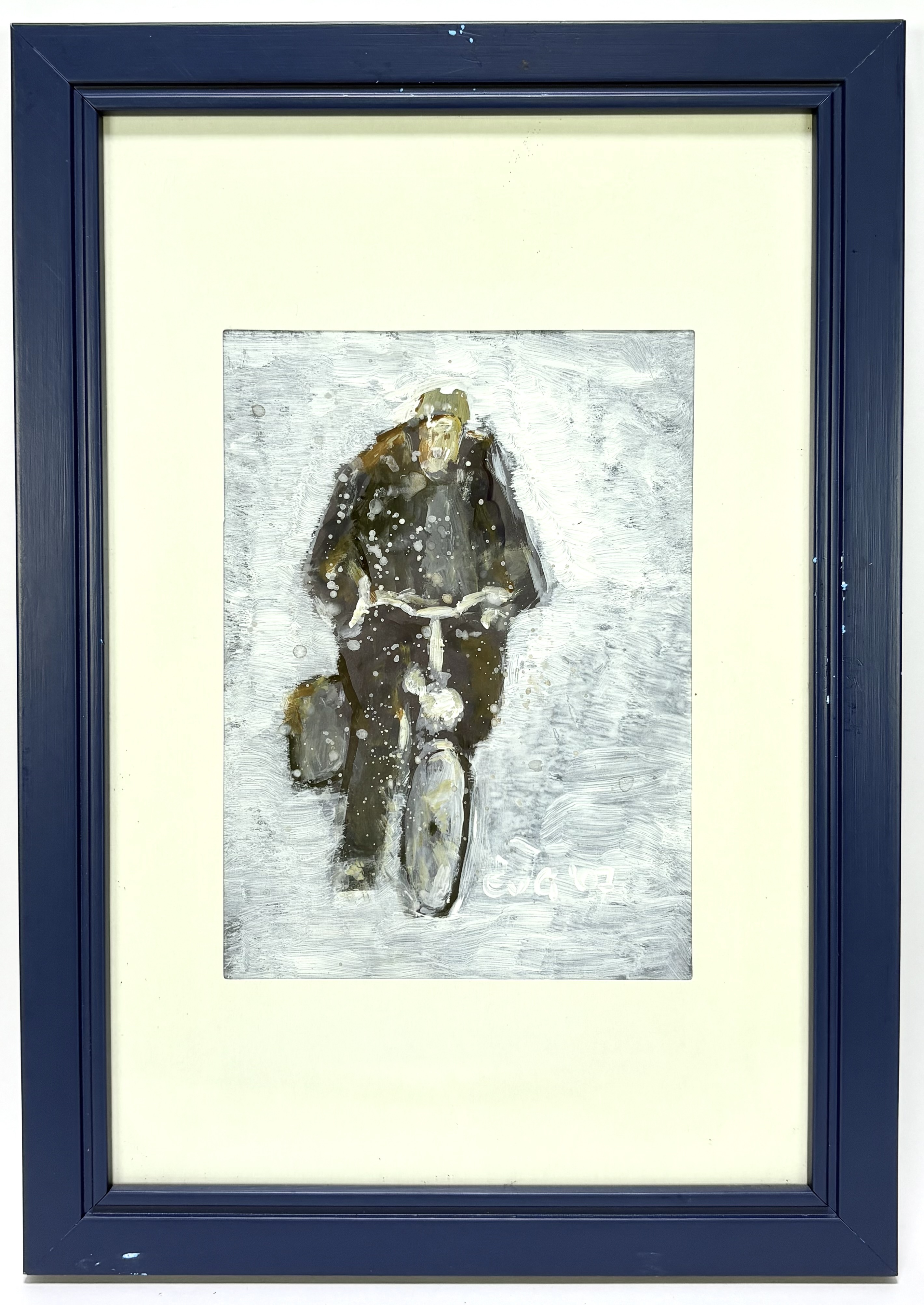 Olieverfschilderij, Els van Gelderen – fietser in de sneeuw, 2007