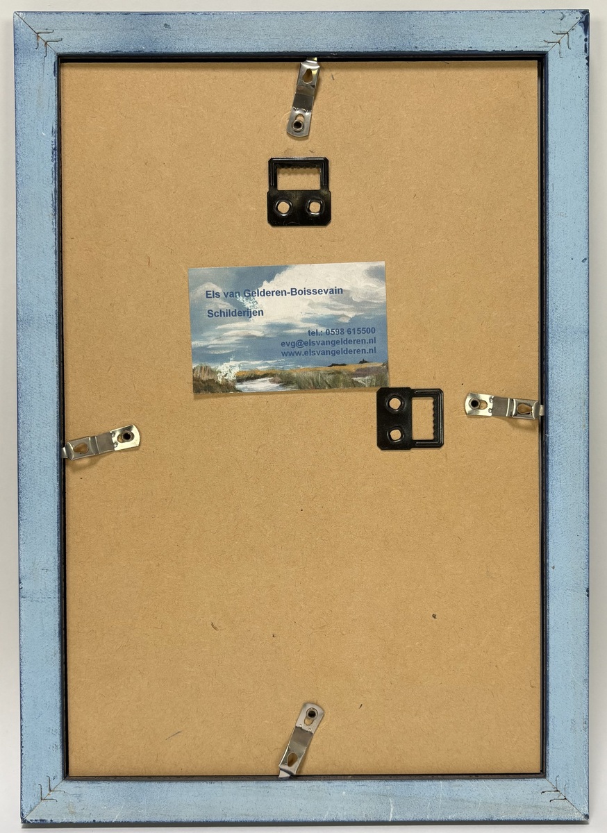 Schilderij door Els van Gelderen-Boissevain (1948), uitgevoerd in olieverf op paneel, toont een fietser in een besneeuwd straatbeeld. Gesigneerd en gedateerd '07 rechtsonder. Verso gedocumenteerd, Nederlandse herkomst. In een blauwe lijst. Dit schilderij zelf beoordelen? Je bent welkom op onze kijkdagen op 10, 11 en 12 april! |