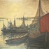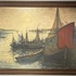 Olieverfschilderij – vissersboten bij zonsondergang, begin 20e eeuw