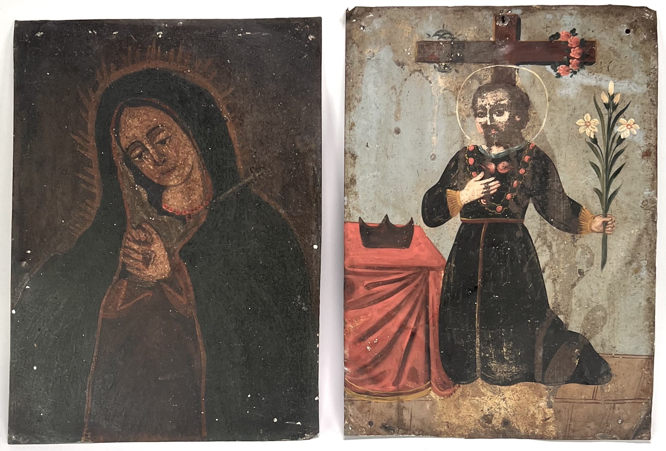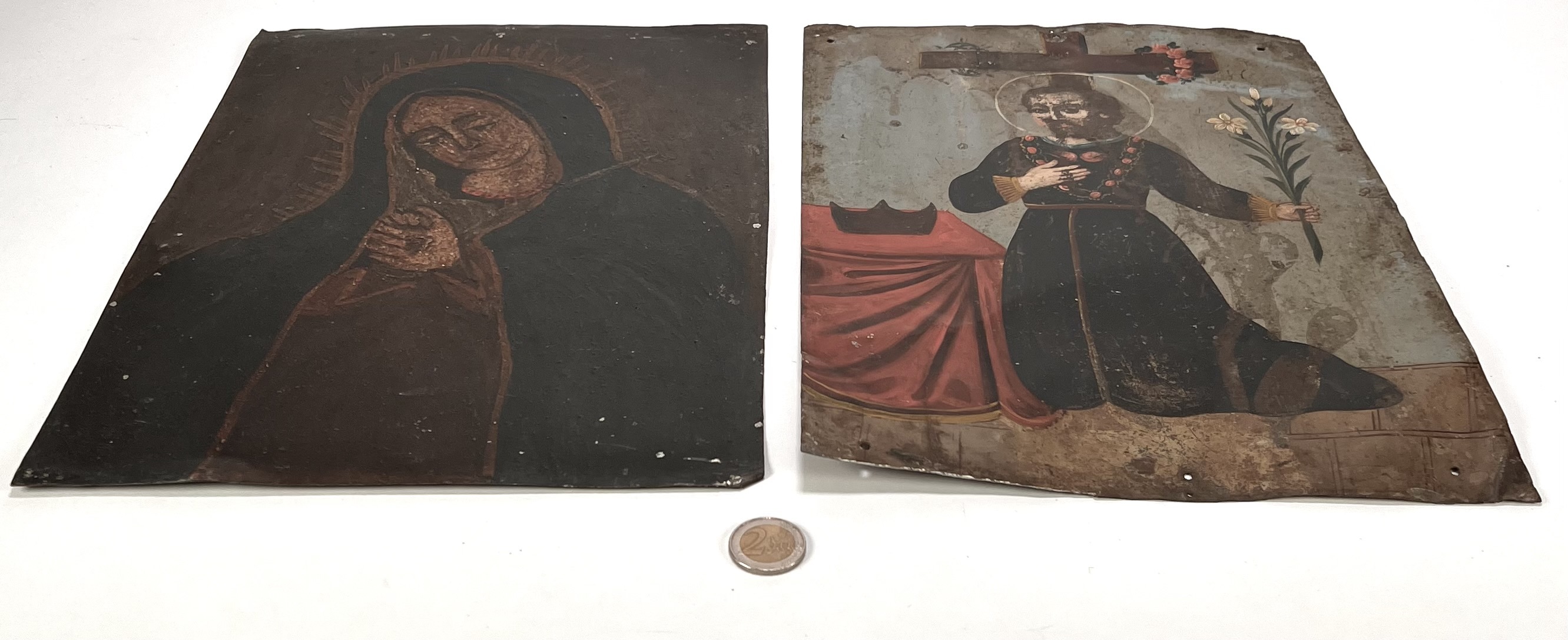 Religieuze retablo's - olieverfschilderijen op tin, Mexico, circa 1880