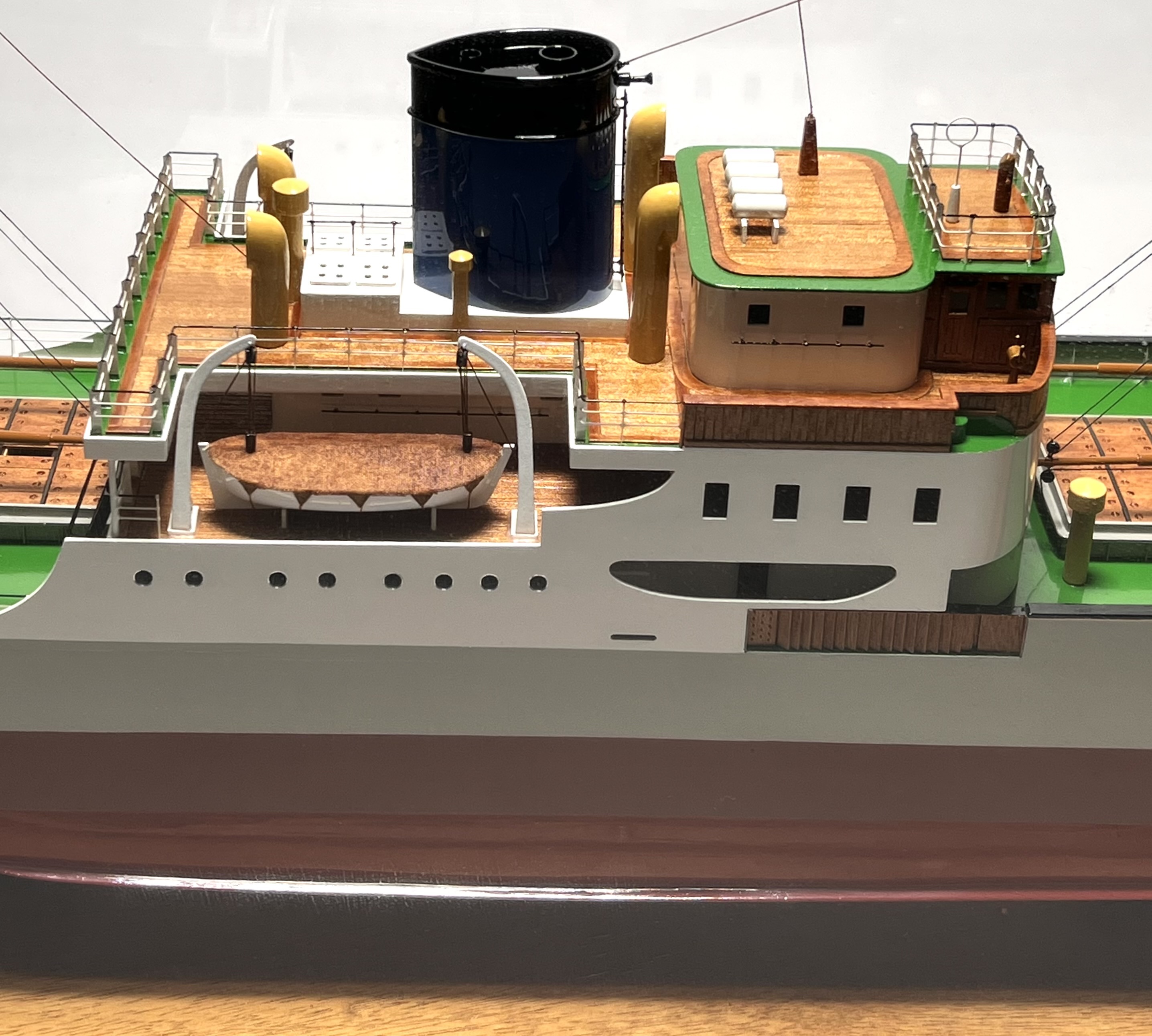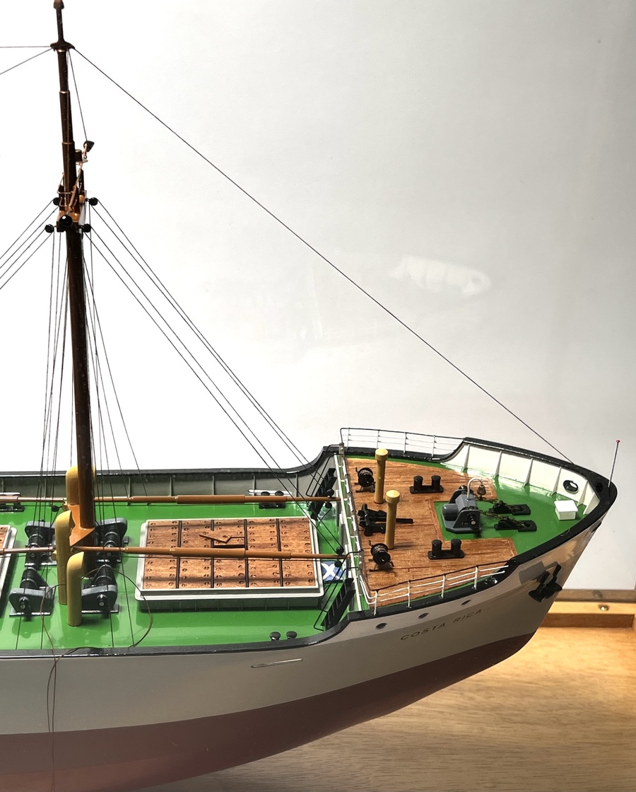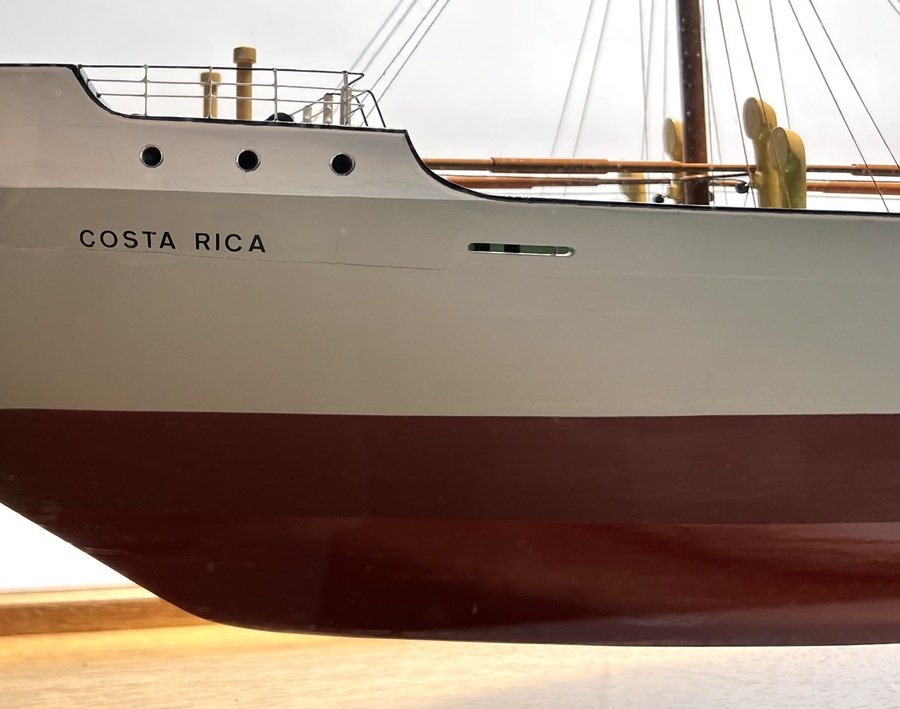 Houten scheepsmodel Costa Rica in vitrinekast – tweede helft 20e eeuw