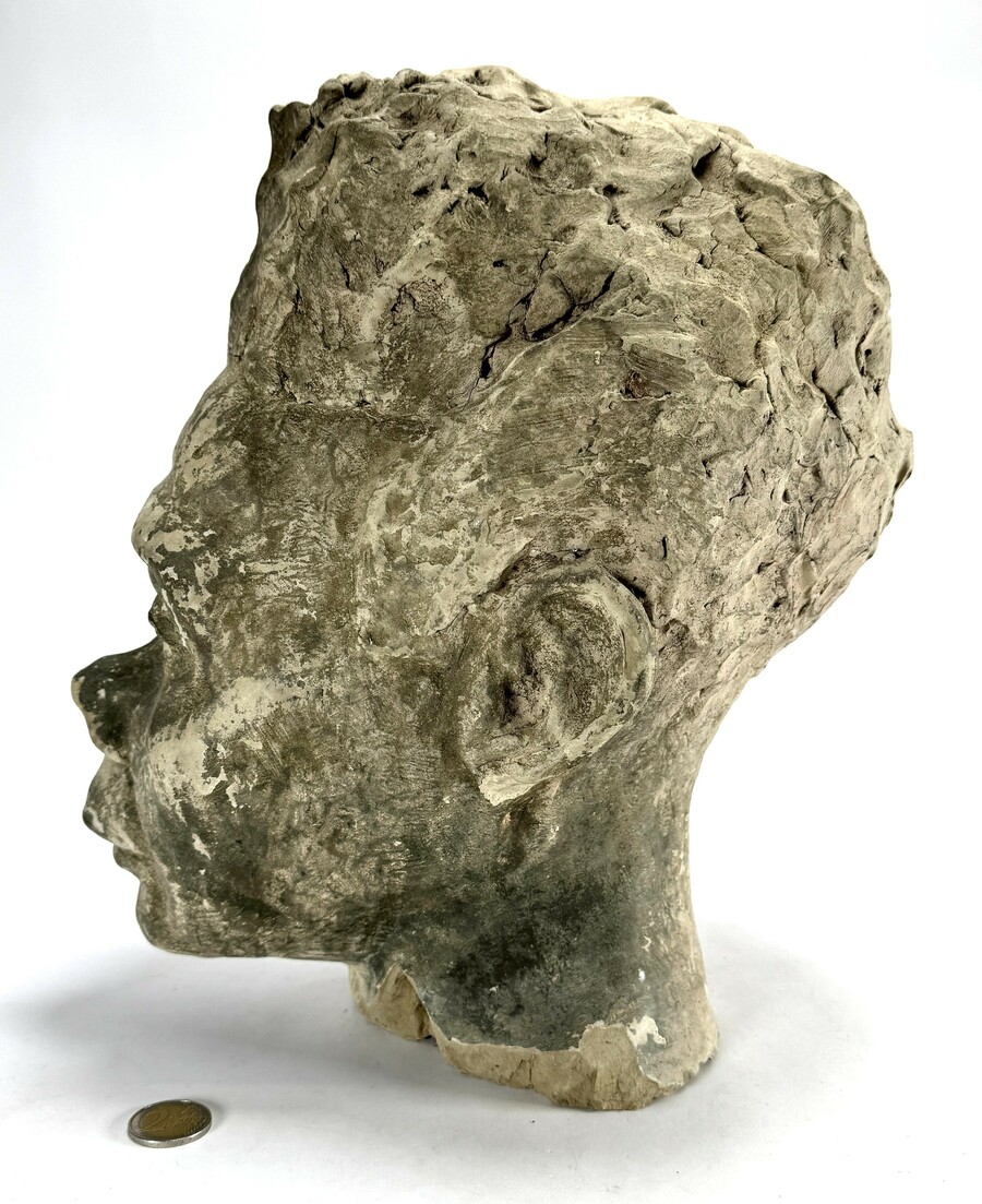 Beeld in expressionistische stijl, vervaardigd uit klei met een ruwe geboetseerde afwerking. Het beeld van een mannelijk hoofd toont een krachtige modellering met diepliggende oogkassen, de textuur van het kapsel is met grove streken opgezet. Het beeld heeft een holle basis, dateert uit het midden van de 20e eeuw en heeft West-Europese herkomst. Geïnteresseerd? Bezoek onze kijkdagen op 10, 11 en 12 april van 11:00 tot 17:00 uur! |