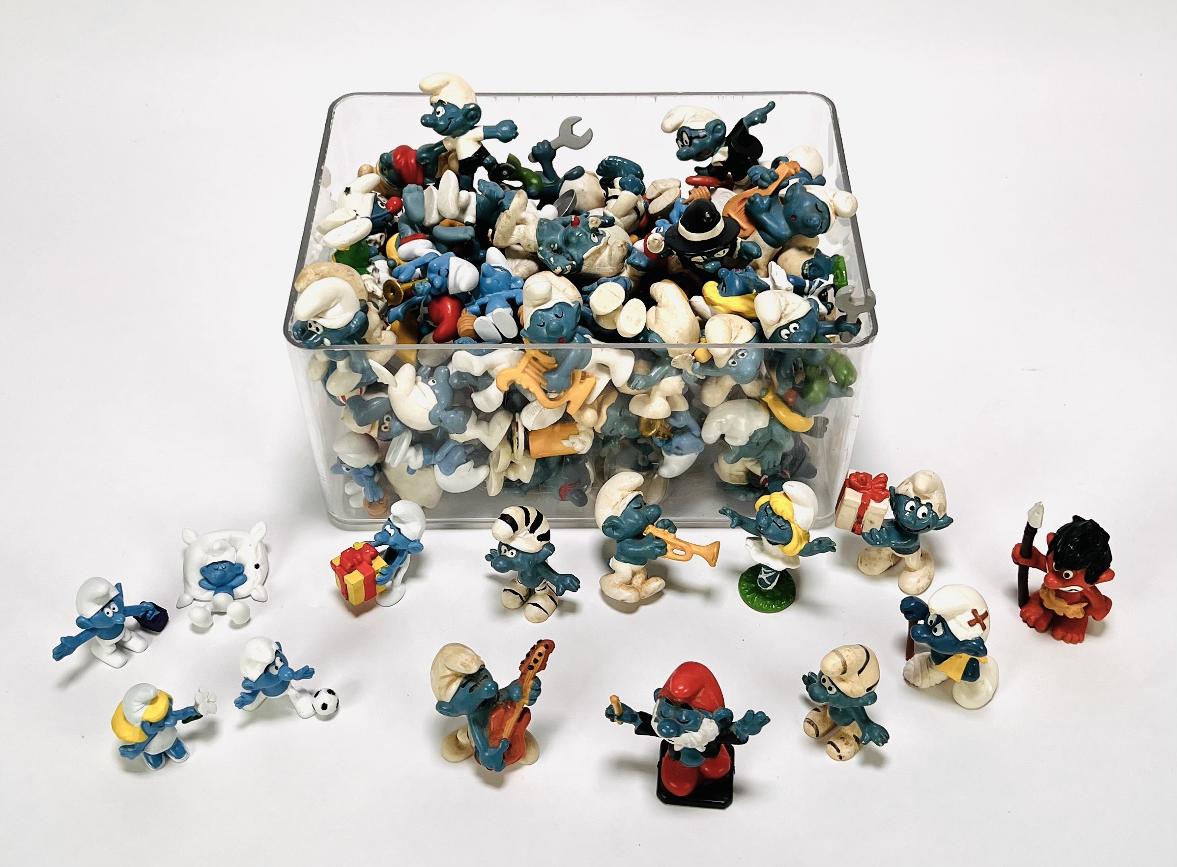 Smurfen van Schleich vervaardigd uit handbeschilderd kunststof. De verzameling bevat diverse figuren zoals Grote Smurf, Smurfin en de antagonist Gargamel met zijn kat Azraël. De gedetailleerde figuurtjes tonen uiteenlopende thema's waaronder sport, muziek en folklore. De smurfen dateren uit circa 1980 en hebben een Belgische herkomst. Wil je direct deelnemen? Plaats vanaf 3 april alvast een schriftelijk bod via onze website! |