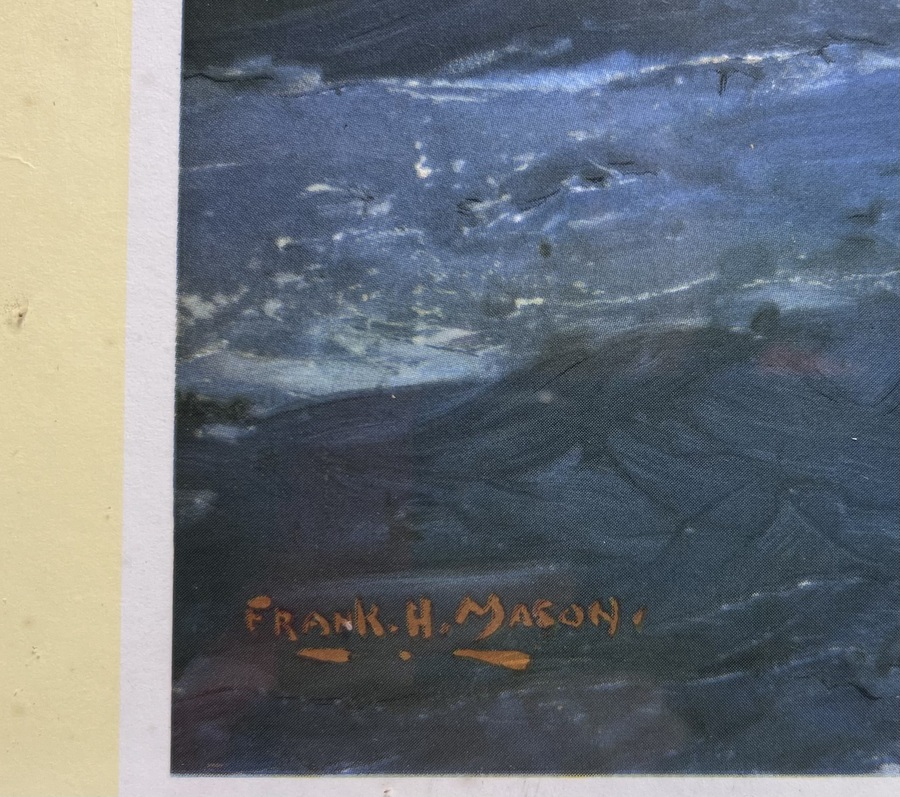 Affiche van Frank Henry Mason (1875–1965) uitgevoerd als kleurdruk op papier. De maritieme voorstelling toont het passagiersschip S.S. Nieuw Amsterdam van de Holland-Amerika Lijn op volle zee, met wolkenpartijen en golfslag. Het affiche dateert circa 1955–1956 en behoort tot de maritieme reclamegrafiek van de trans-Atlantische passagiersvaart. Registreer nu en bied eenvoudig online mee op deze prent! |