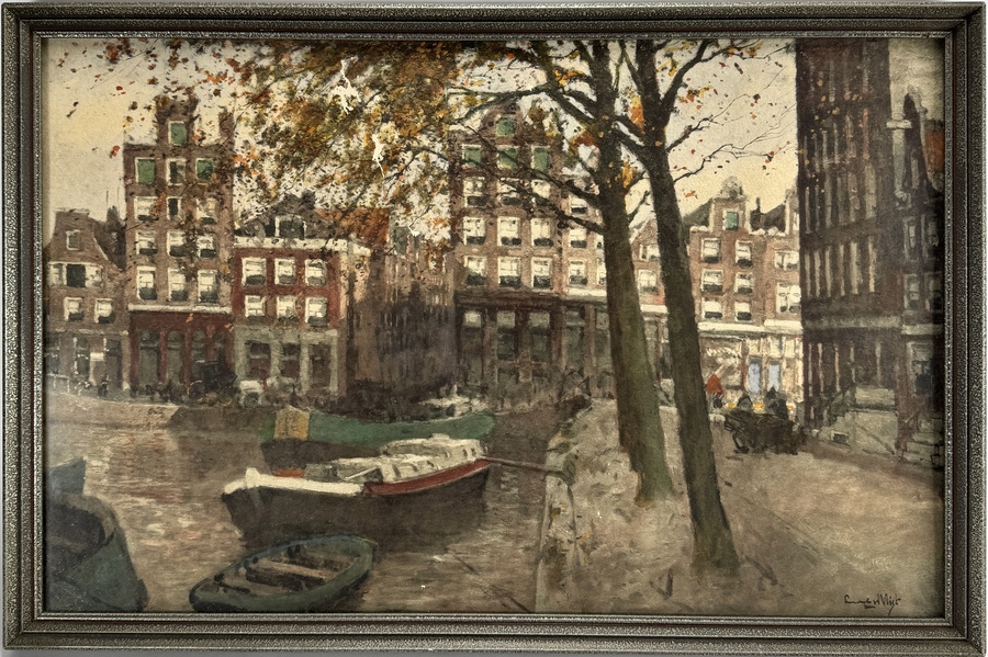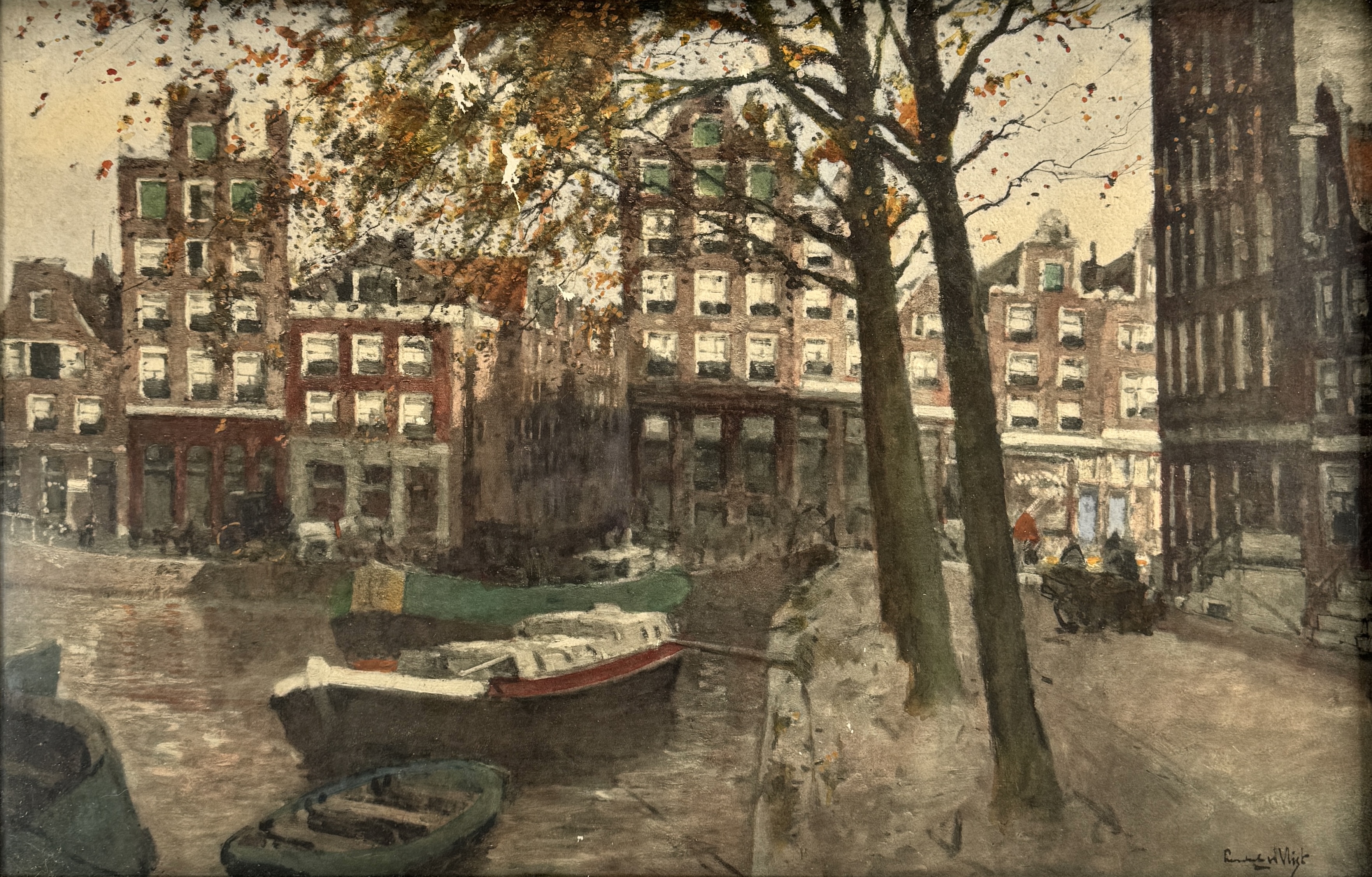 Gouache, L. van der Vlist – Amsterdams stadsgezicht, ca. 1930