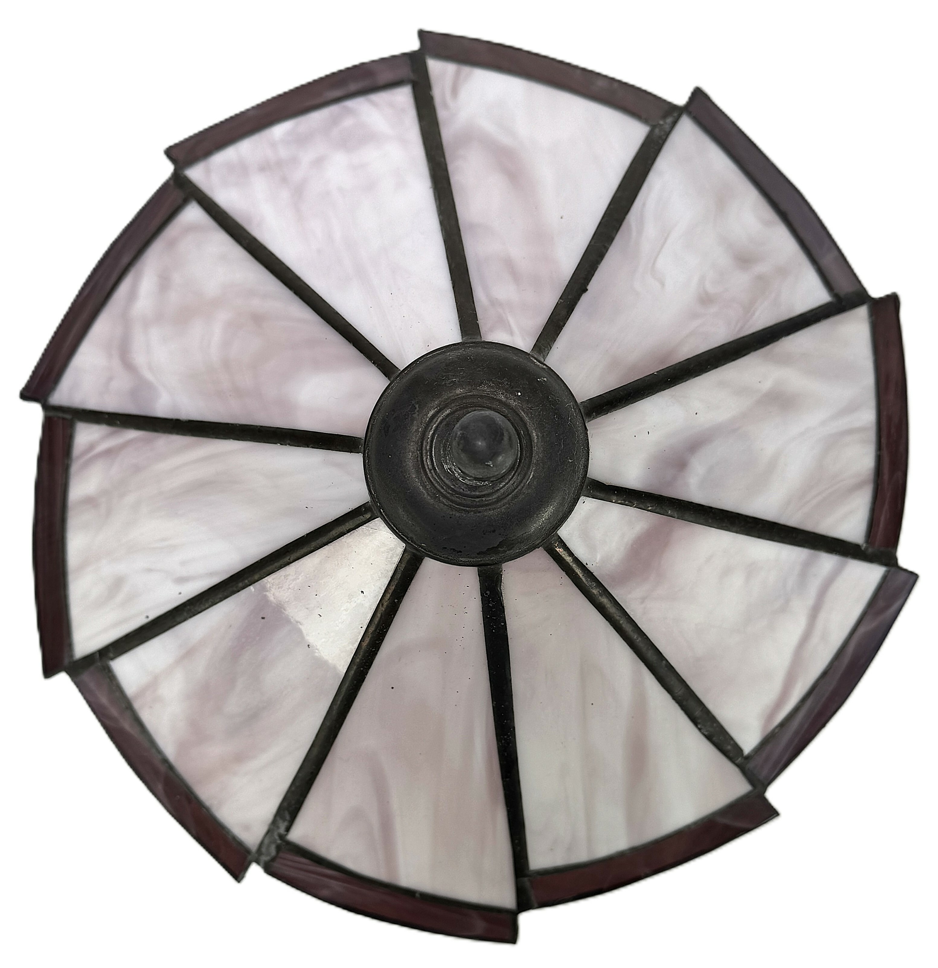 Glazen lamp, Tiffany-stijl – paars geometrisch decor, laatste kwart 20e eeuw