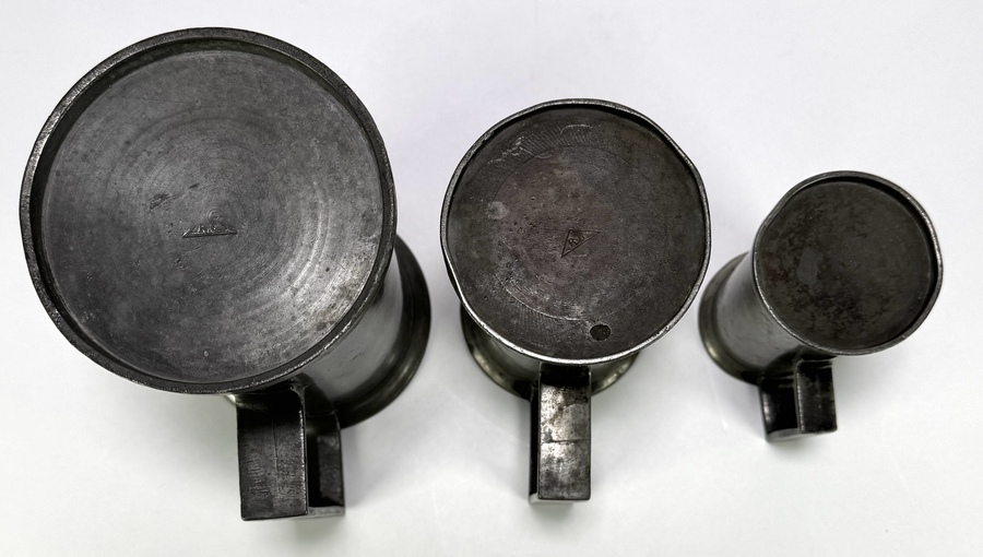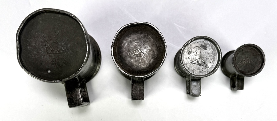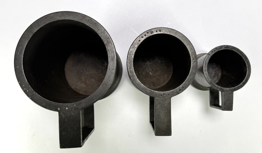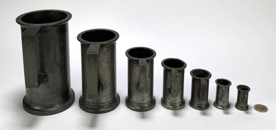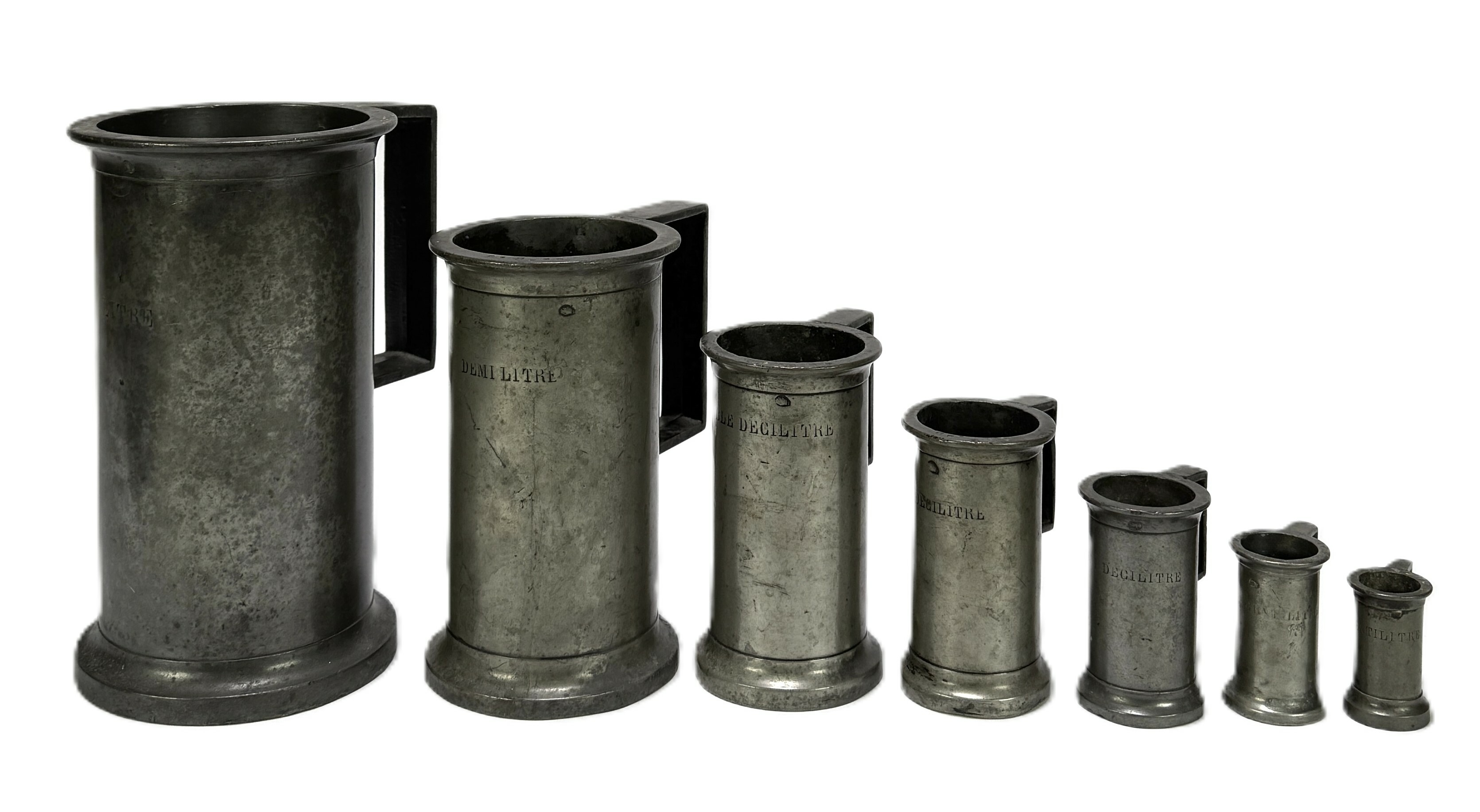Biedermeier tinnen maatbekers - Frankrijk, omstreeks 1880