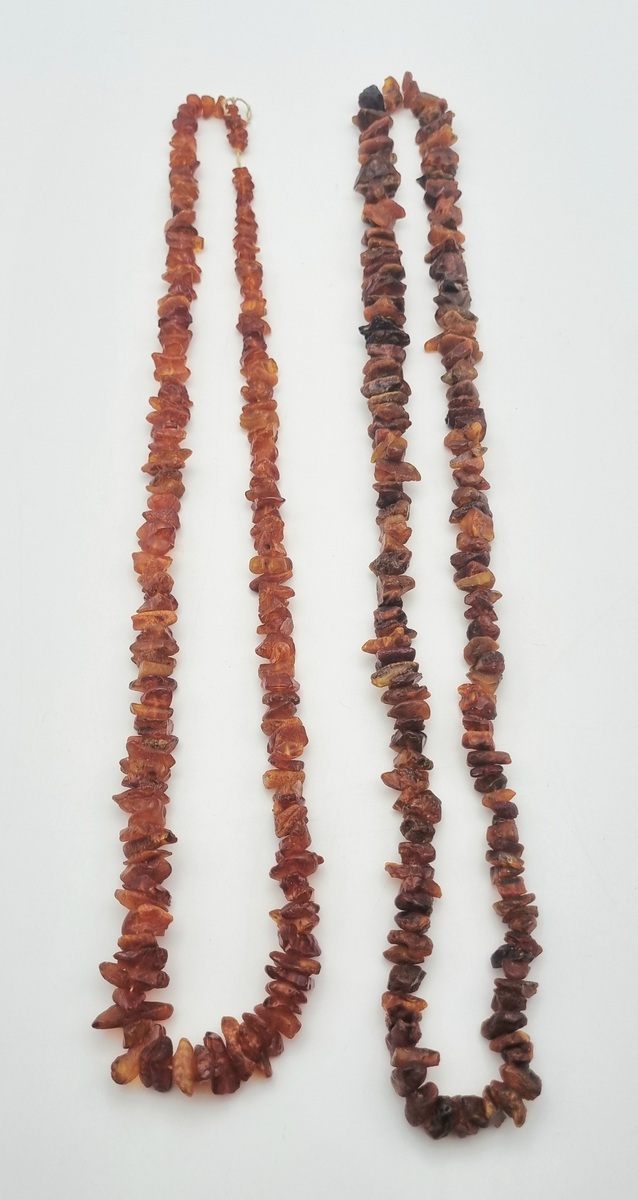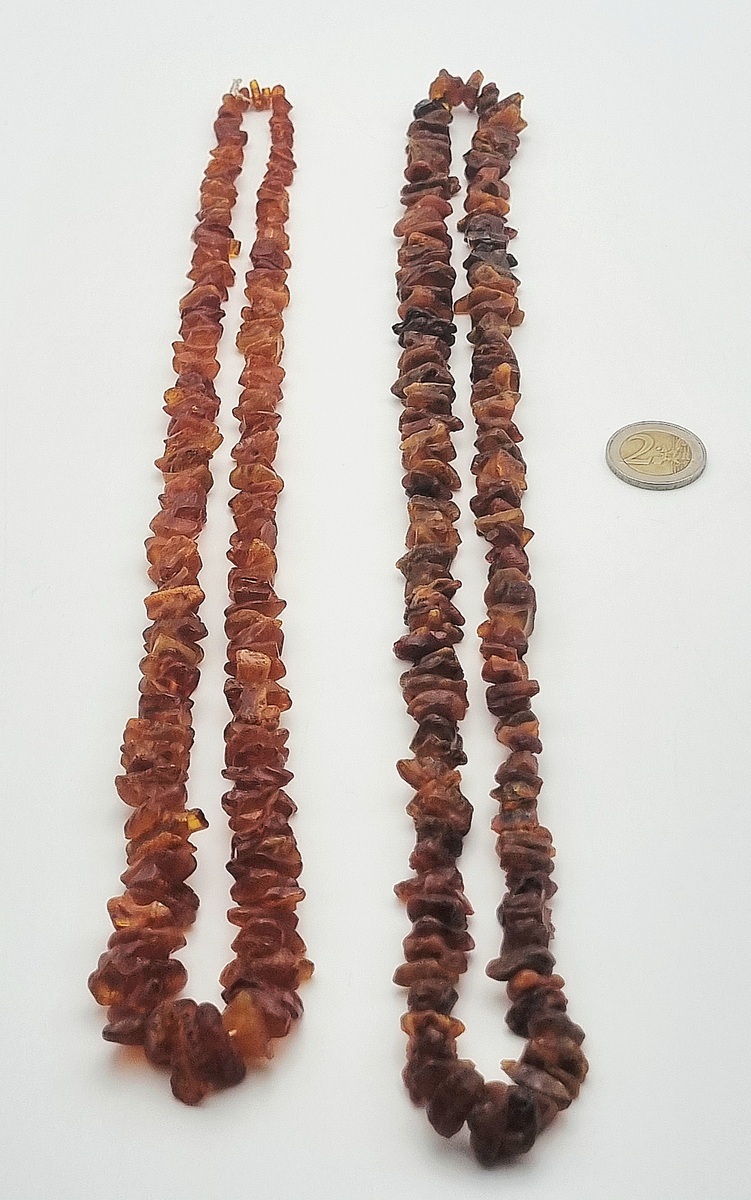 Kettingen van Baltische barnsteen, vervaardigd uit ongepolijste en gepolijste splitstenen in diverse natuurlijke vormen. De halskettingen tonen een rijk kleurenpalet van warm honinggeel tot diep cognacbruin. De kettingen dateren uit de tweede helft van de 20e eeuw en hebben een herkomst in Noord-Europa. Registreer nu en bied eenvoudig online mee op deze kettingen! |