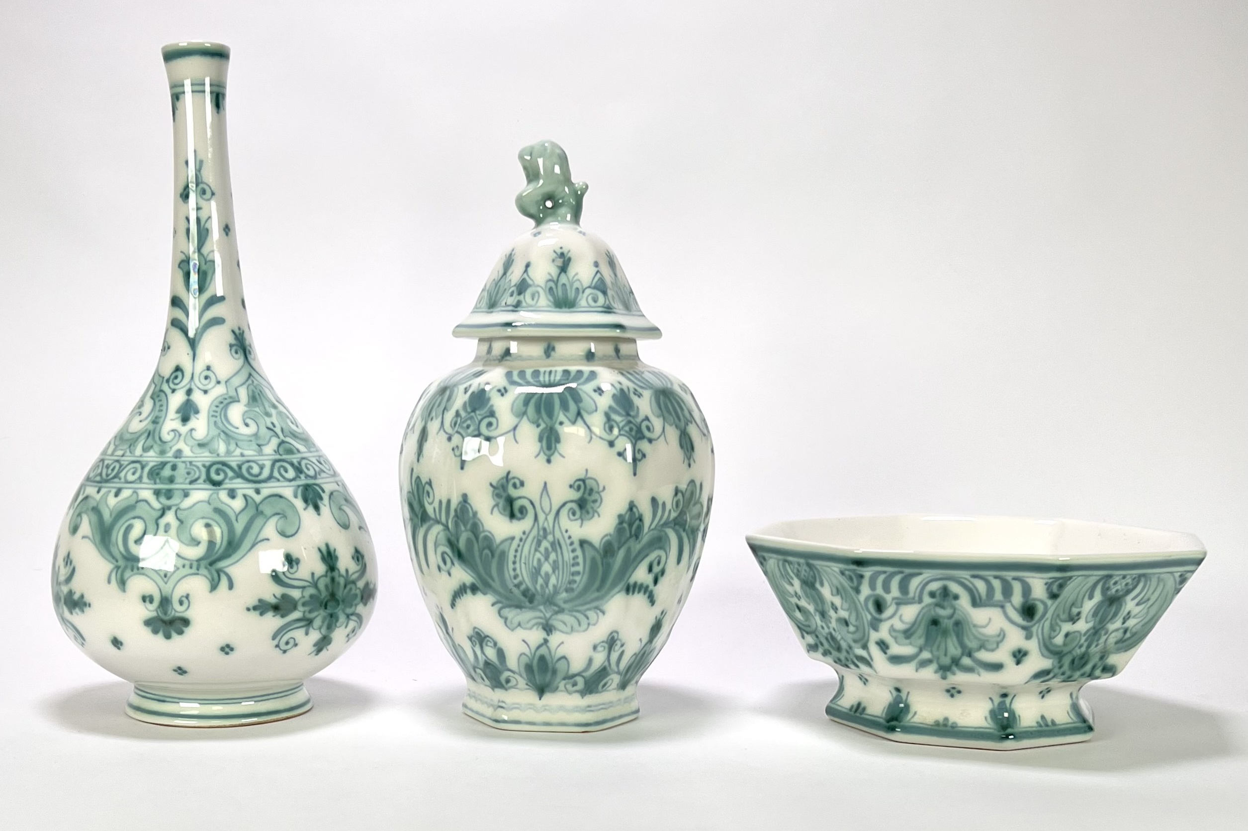 Vaas, dekselpot en kom, De Porceleyne Fles - Delvert decor, 1969–1974
