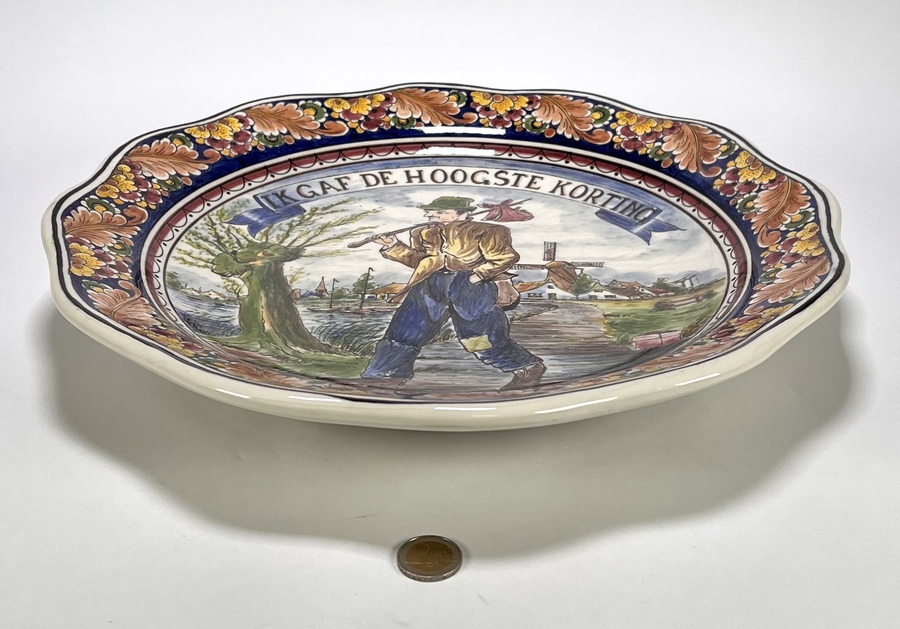Wandbord, ’t Delftsche Huys - "Ik gaf de hoogste korting", eerste helft 20e eeuw