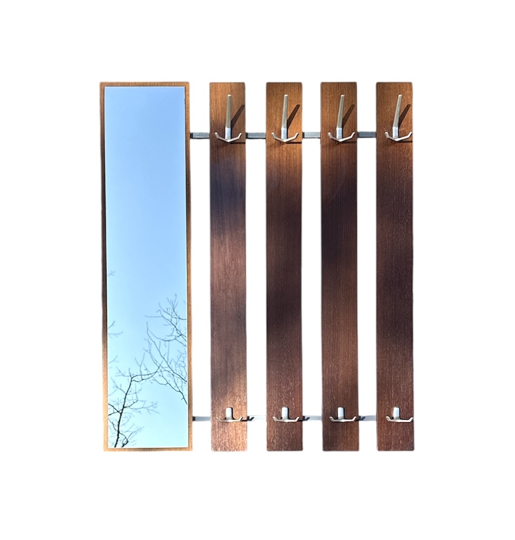 Houten wandkapstok met spiegel, midden 20e eeuw