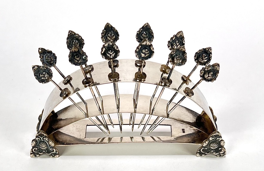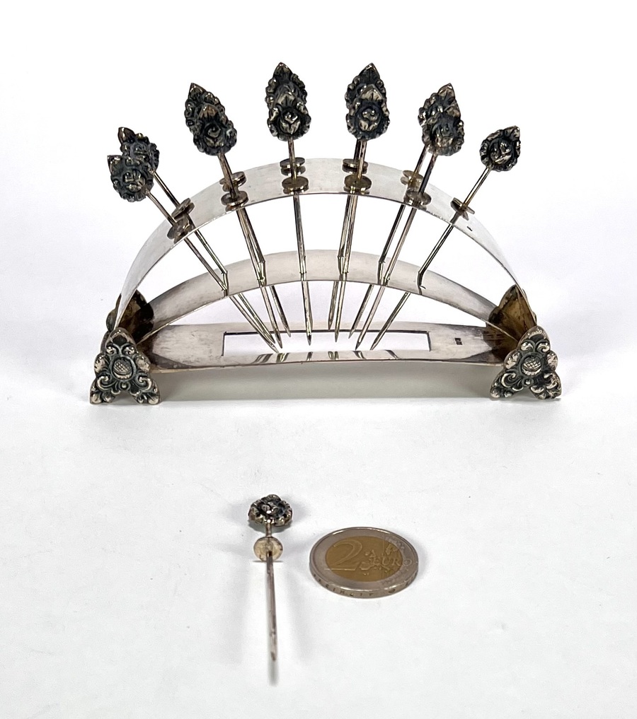 | Kavelnummer en naam | 925. Zilveren cocktailprikkers – Hildesheimer Rose, Duitsland, ca. 1950 | |