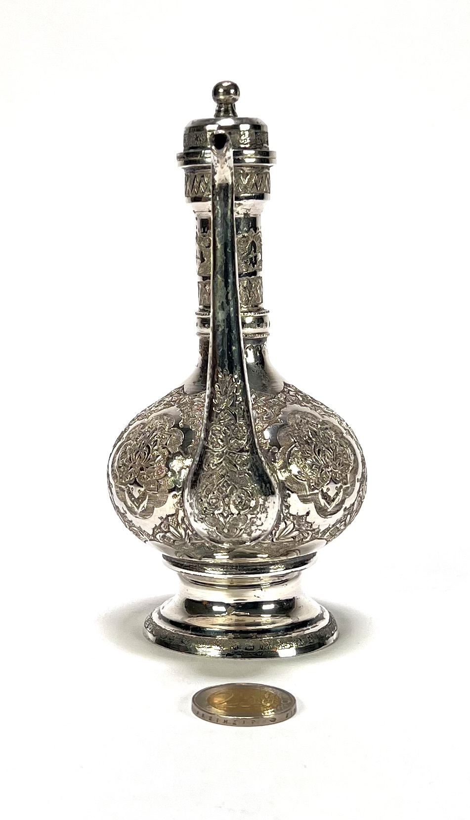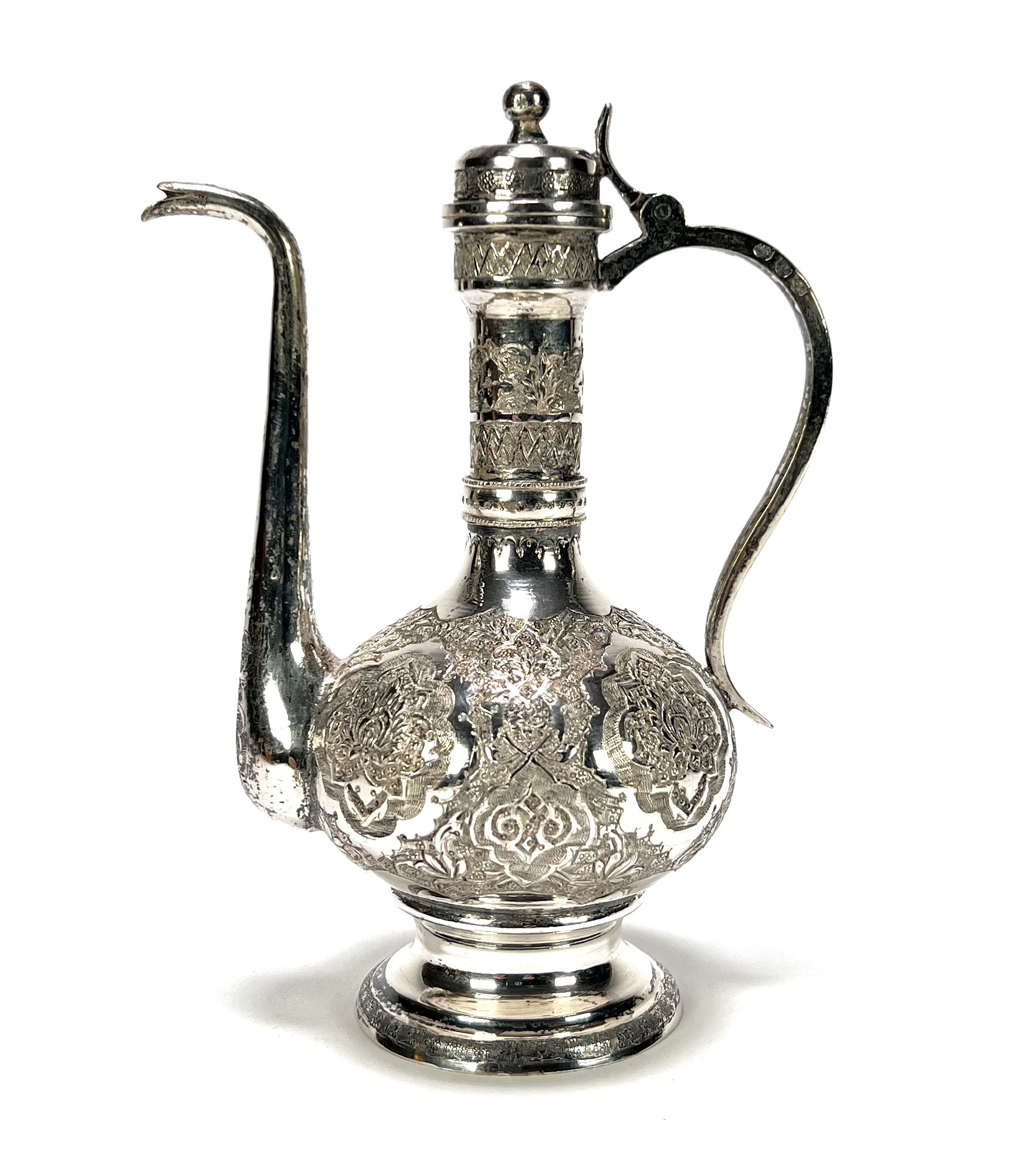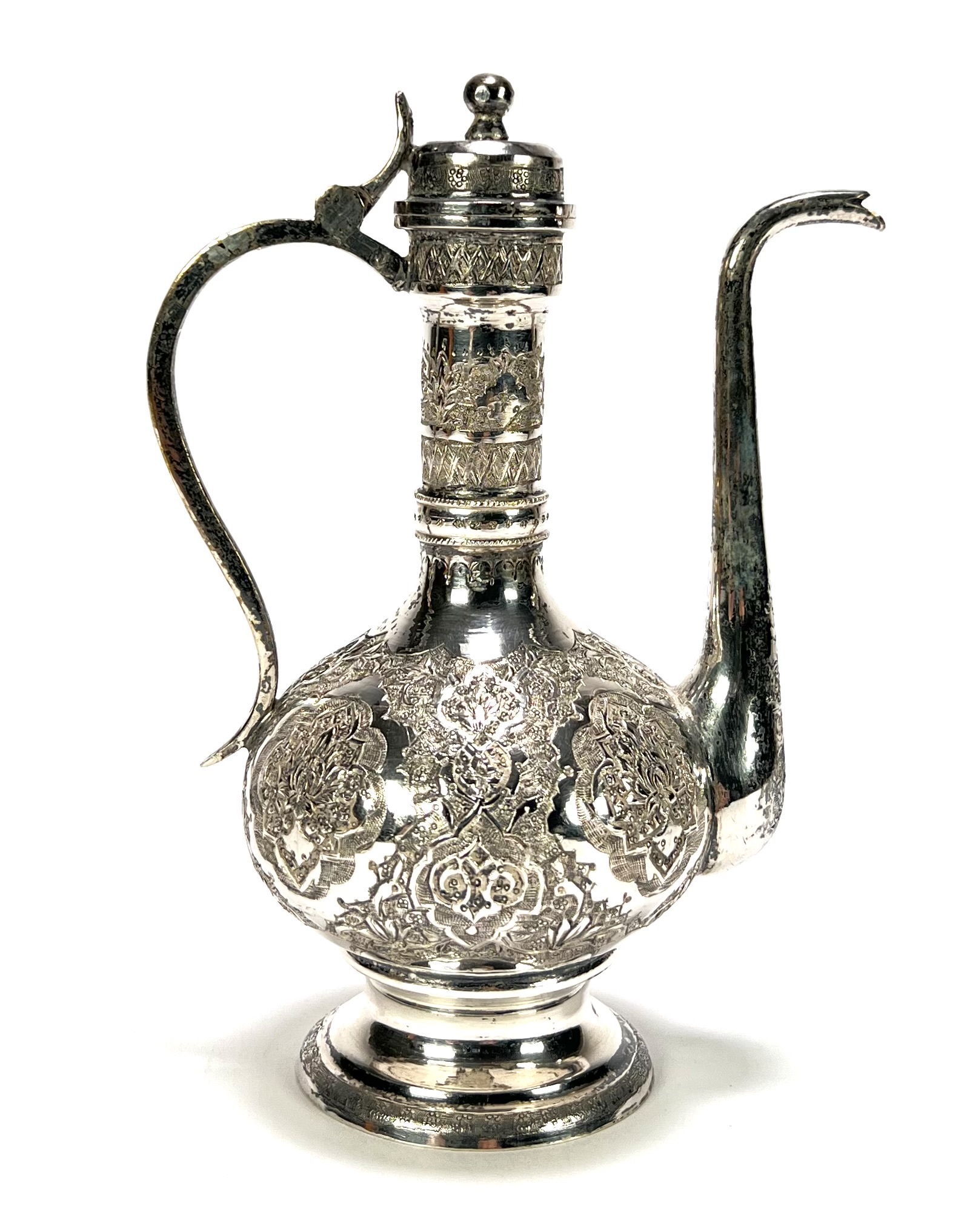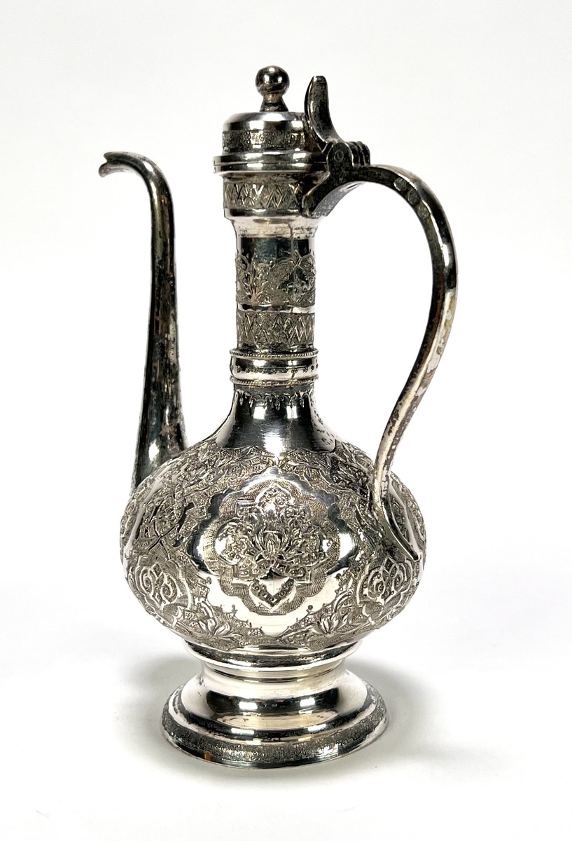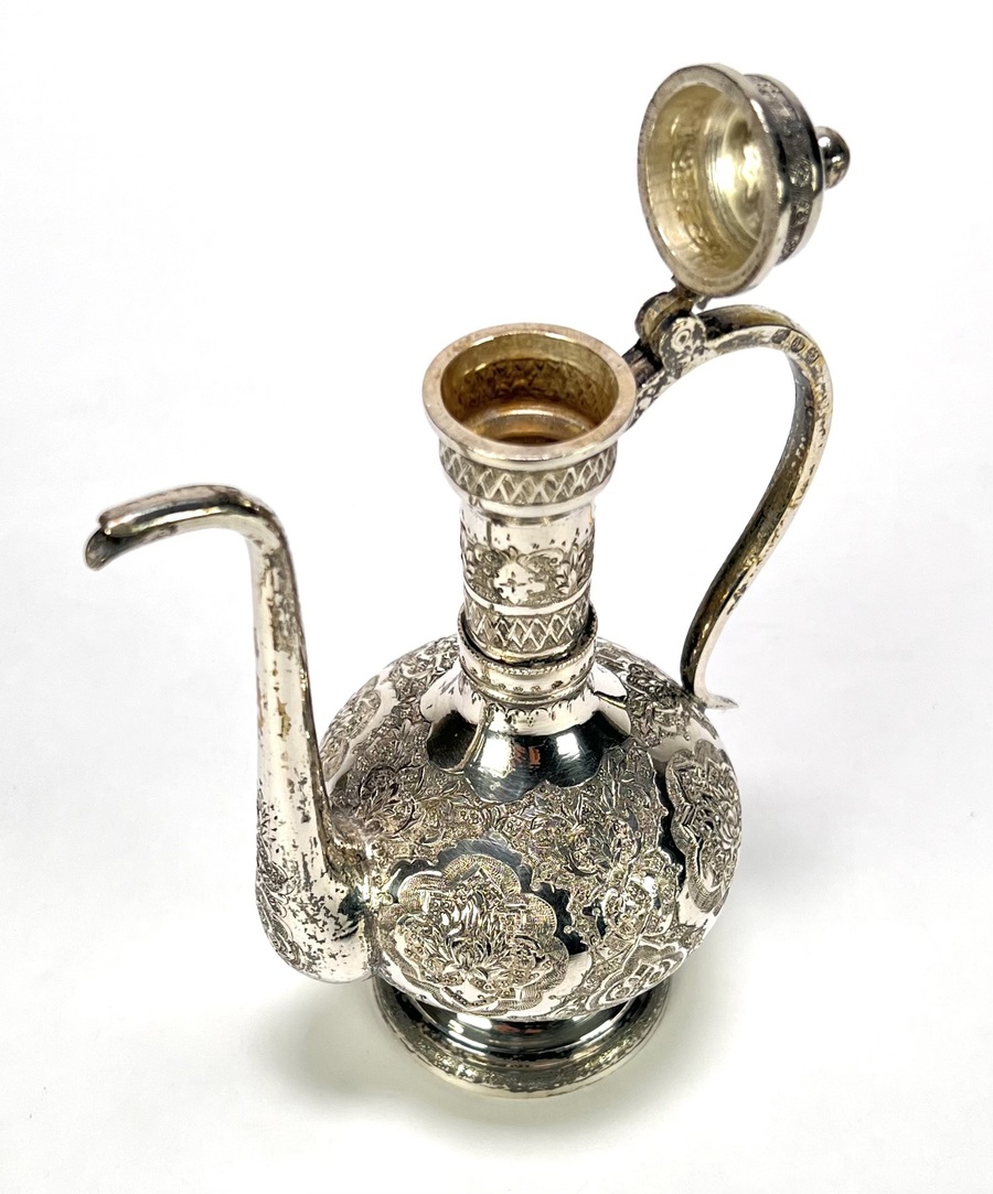 Zilveren theekan met floraal decor - Perzië, eerste helft 20e eeuw