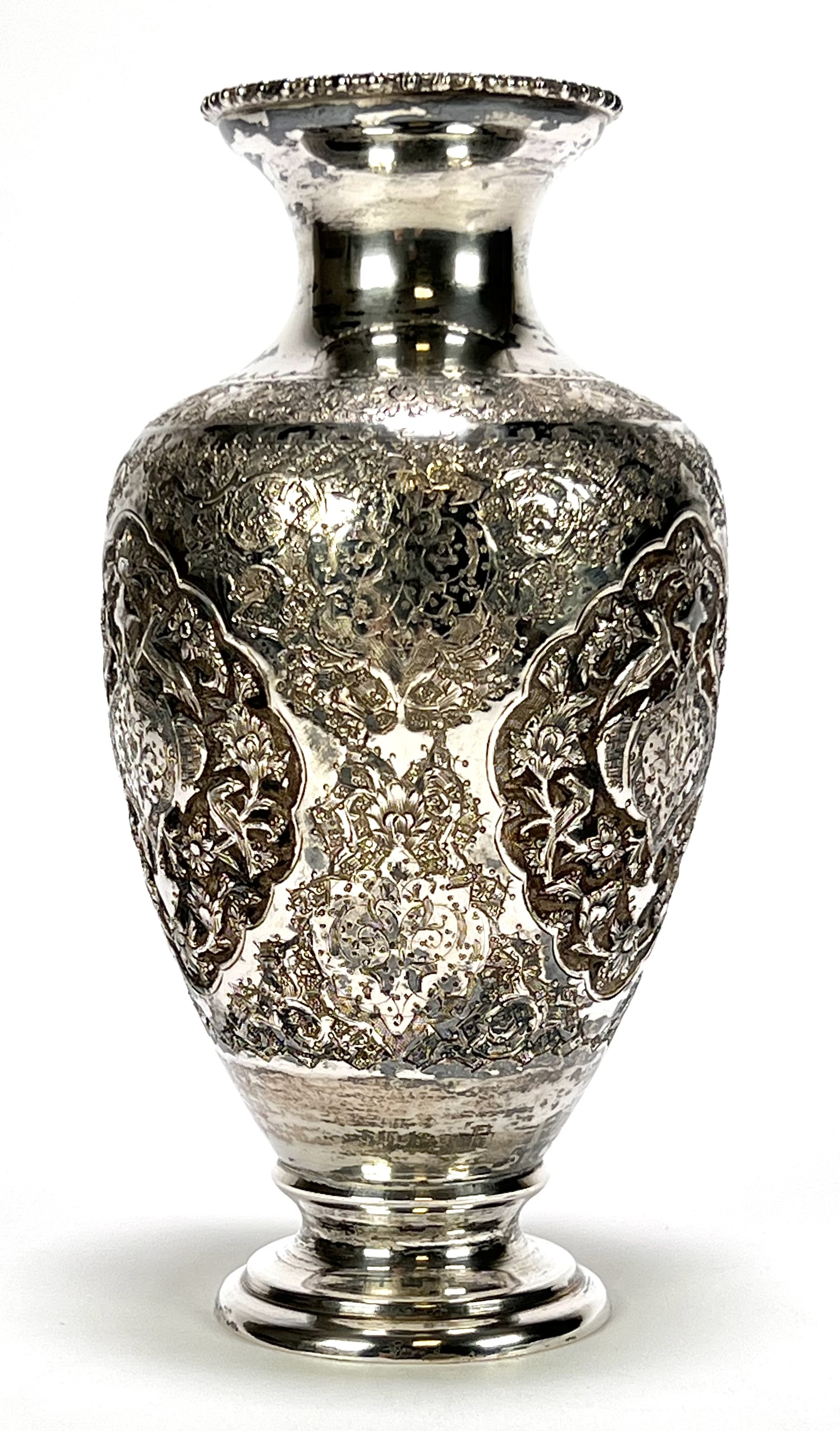 Zilveren vaas met Ghalam-zani decor - Isfahan traditie, Iran, ca. 1950